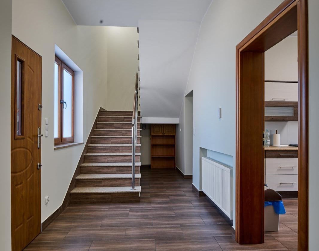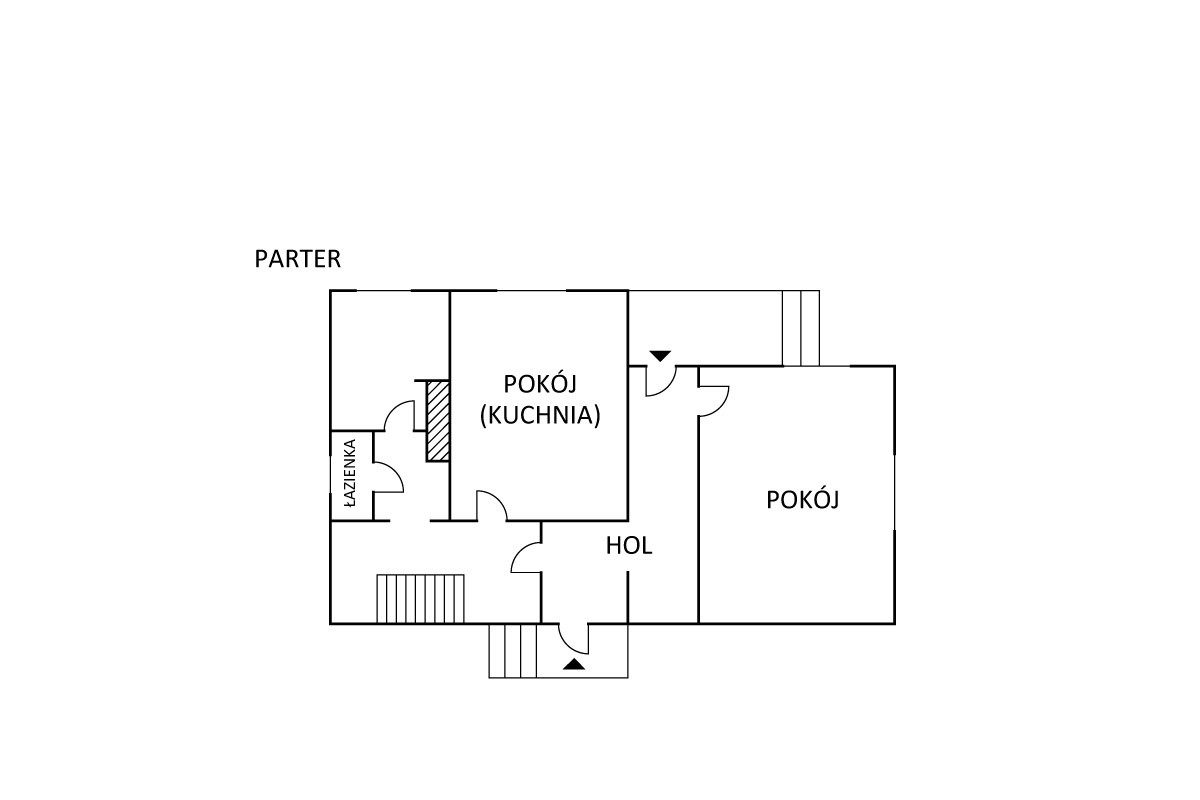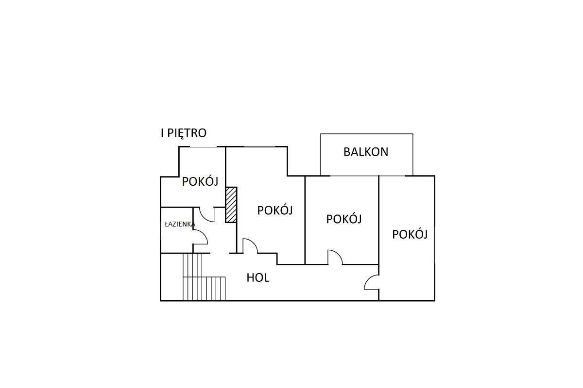poziom pierwszy wysokość pomieszczeń 3,14 m: przestronny hol, obszerny pokój, pokój socjalny- kuchnia, łazienka, kotłownia;