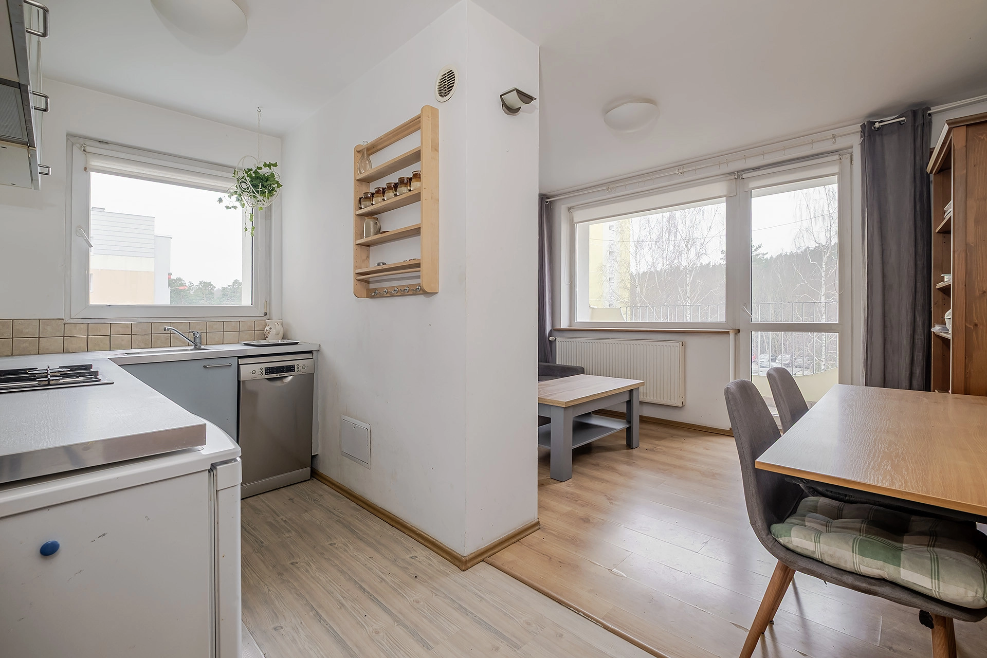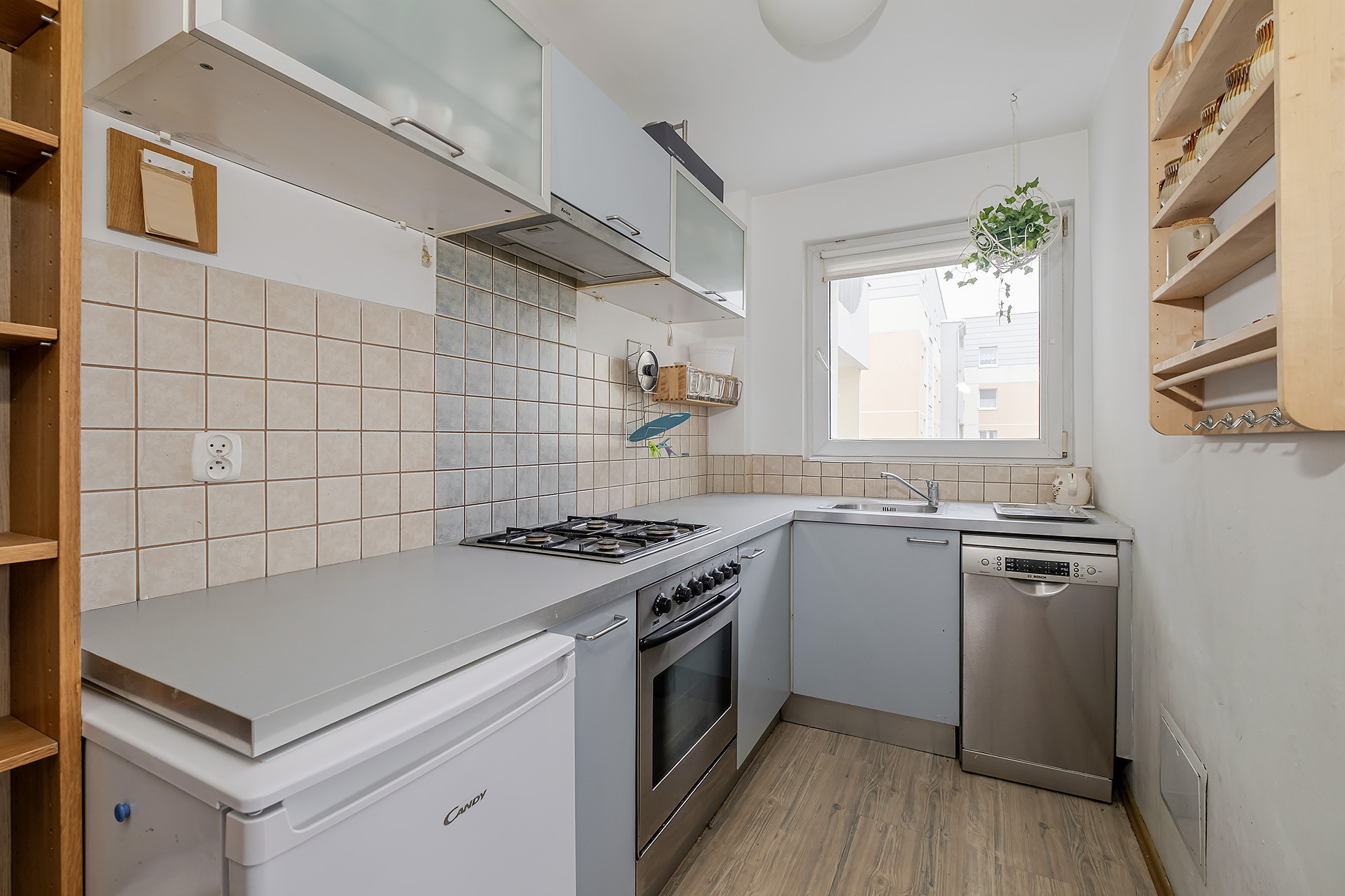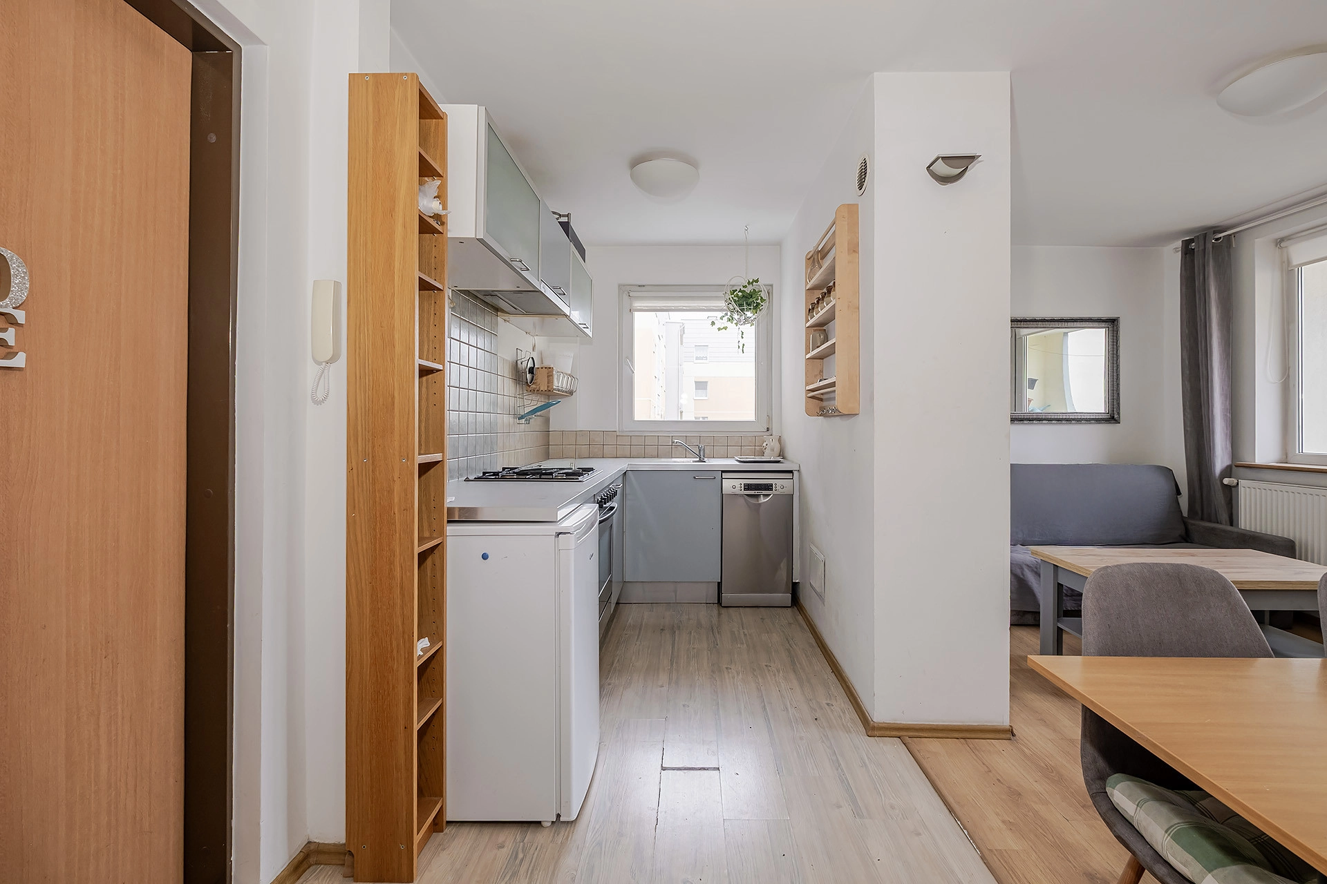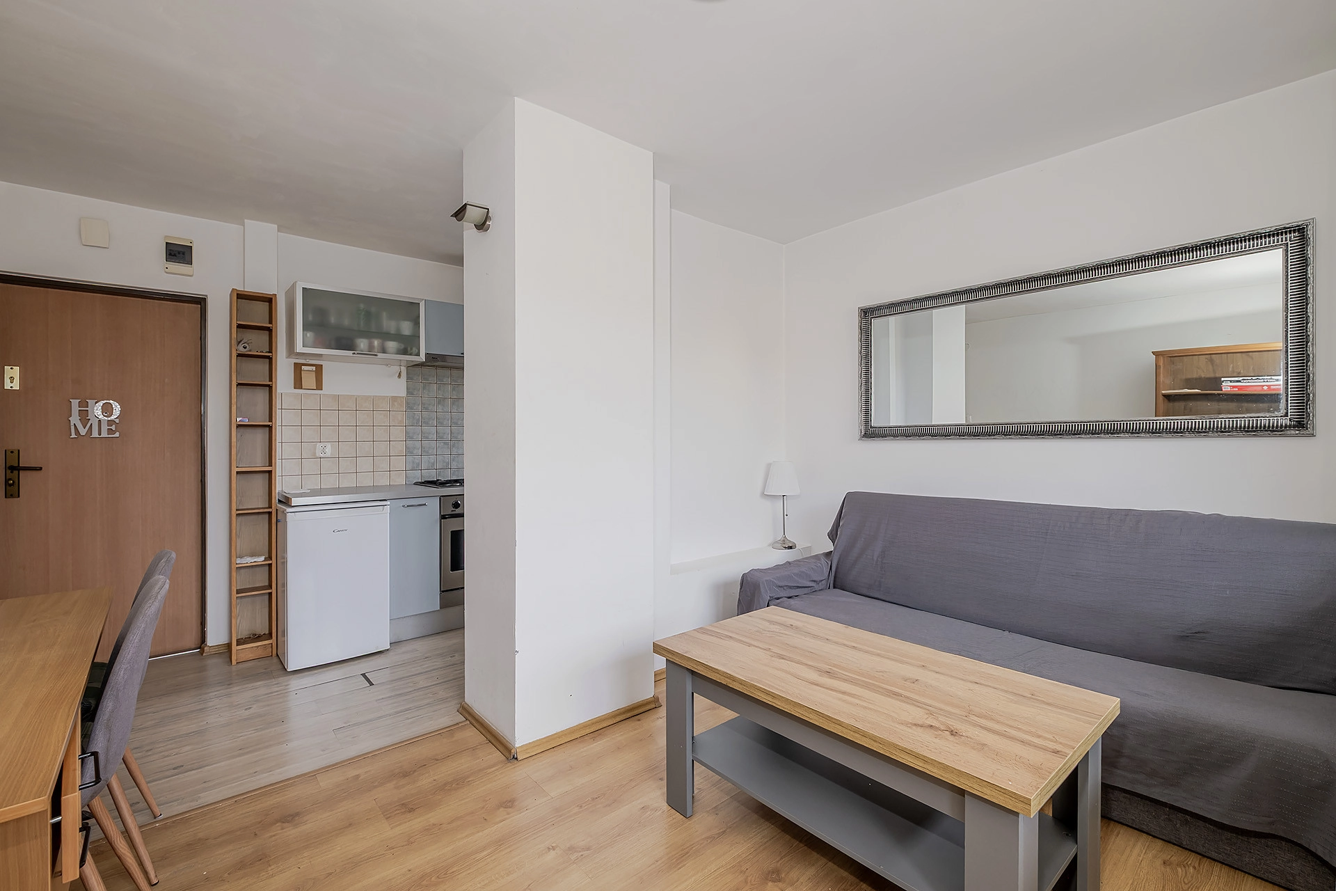 – Jasny salon z ekspozycją zachodnią i w pełni wyposażonym aneksem kuchennym