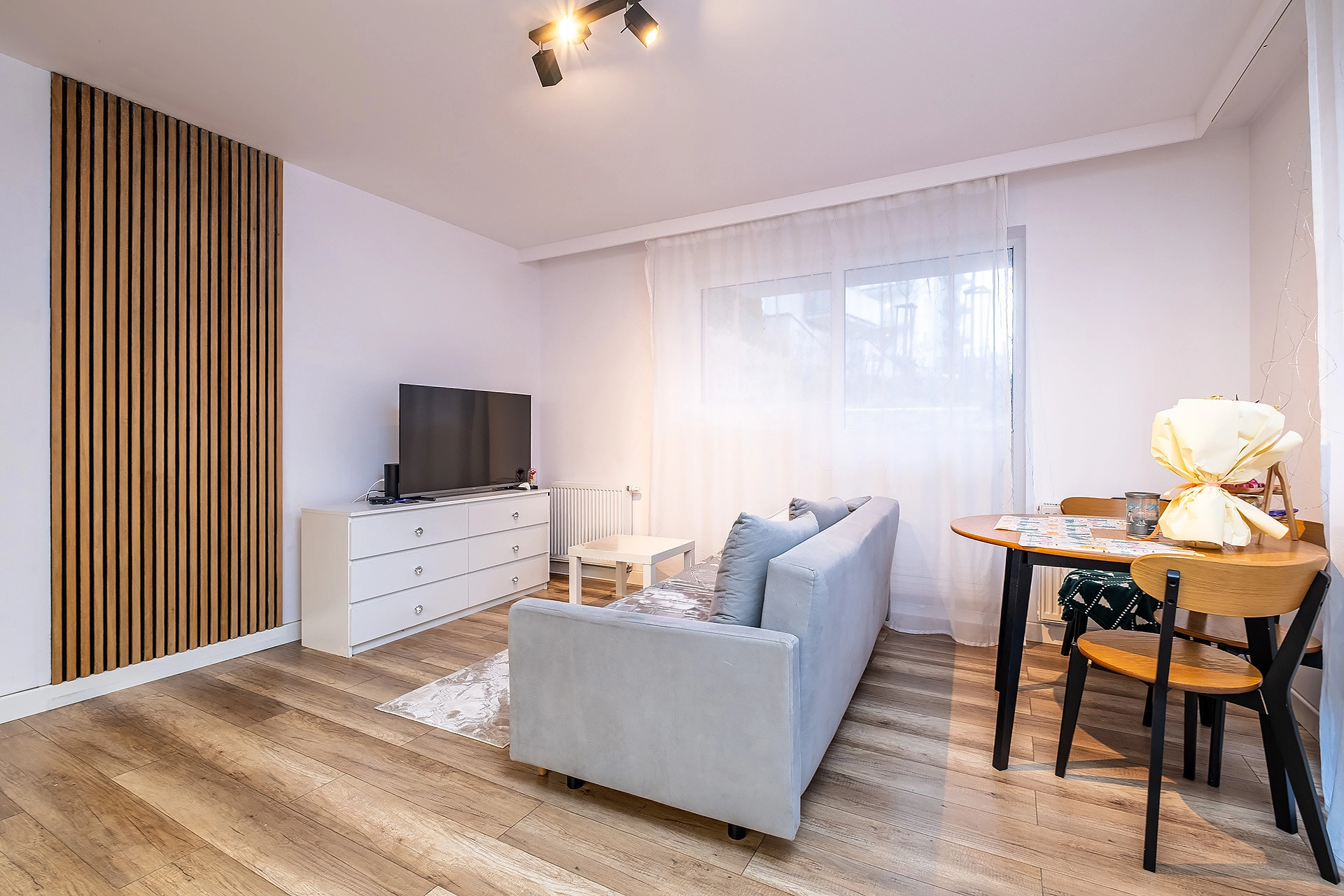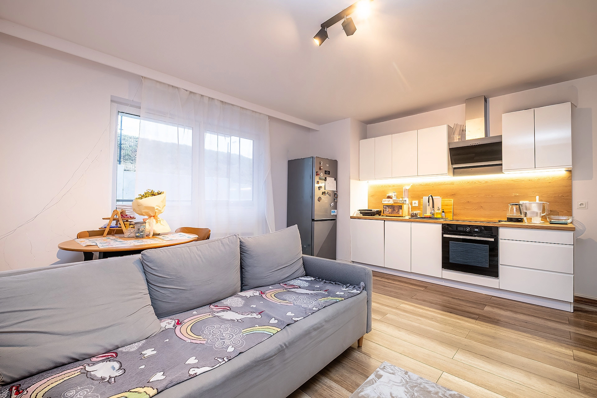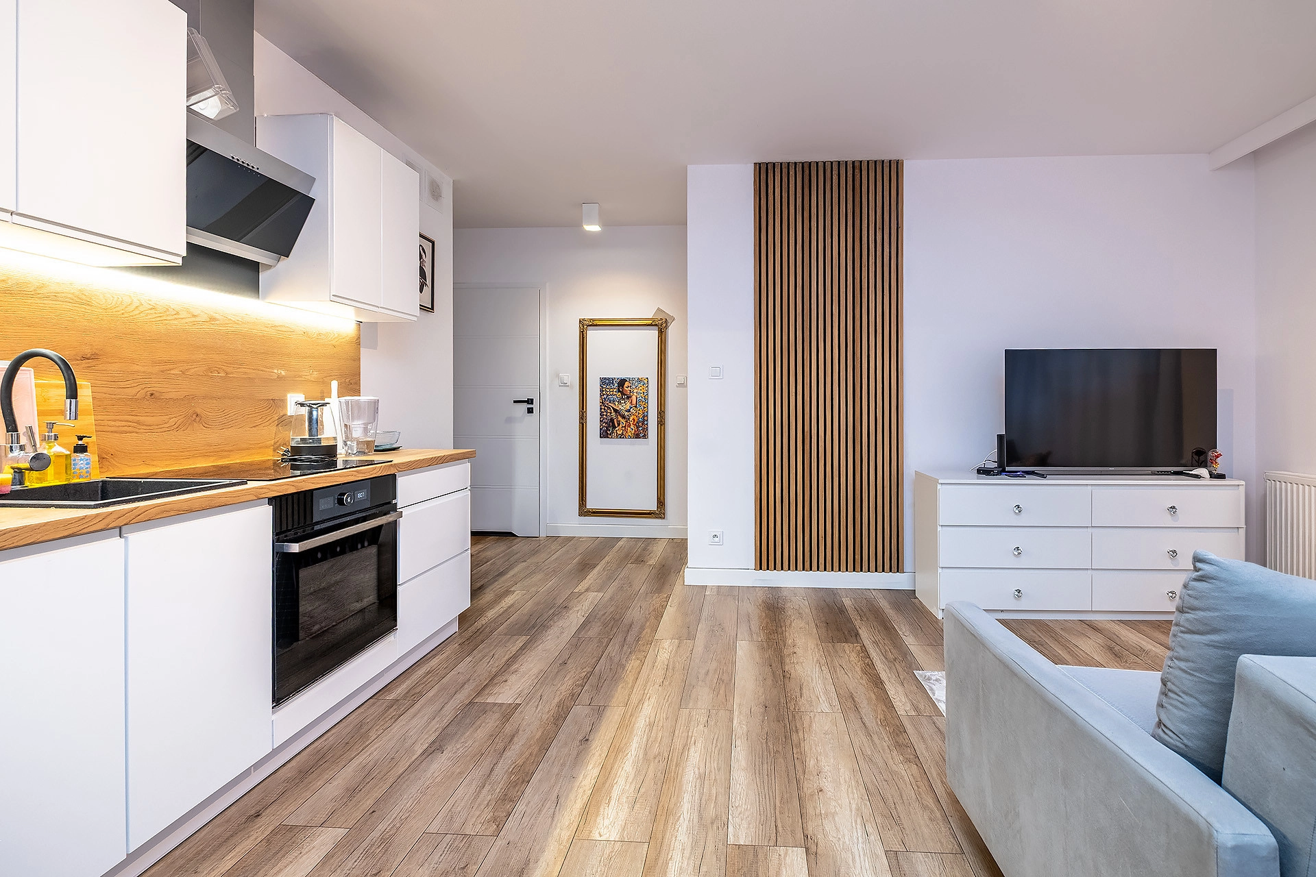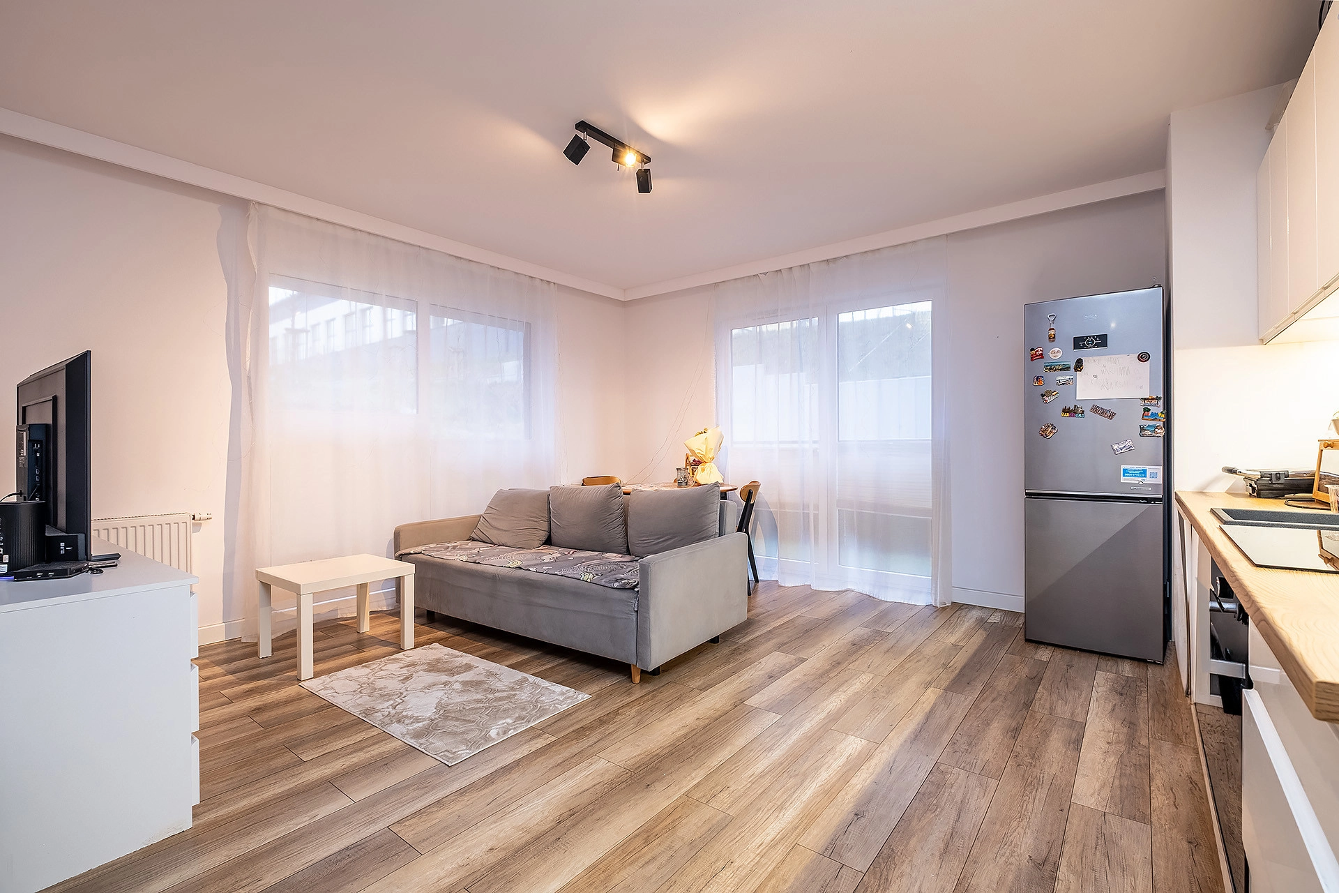 Nieruchomość jest gotowa do wprowadzenia bez większych nakładów finansowych – wykończona w jasnym, nowoczesnym stylu z elementami drewna. Mieszkanie jest przytulne, ciche oraz bardzo dobrze doświetlone, co zapewnia komfort codziennego życia.
