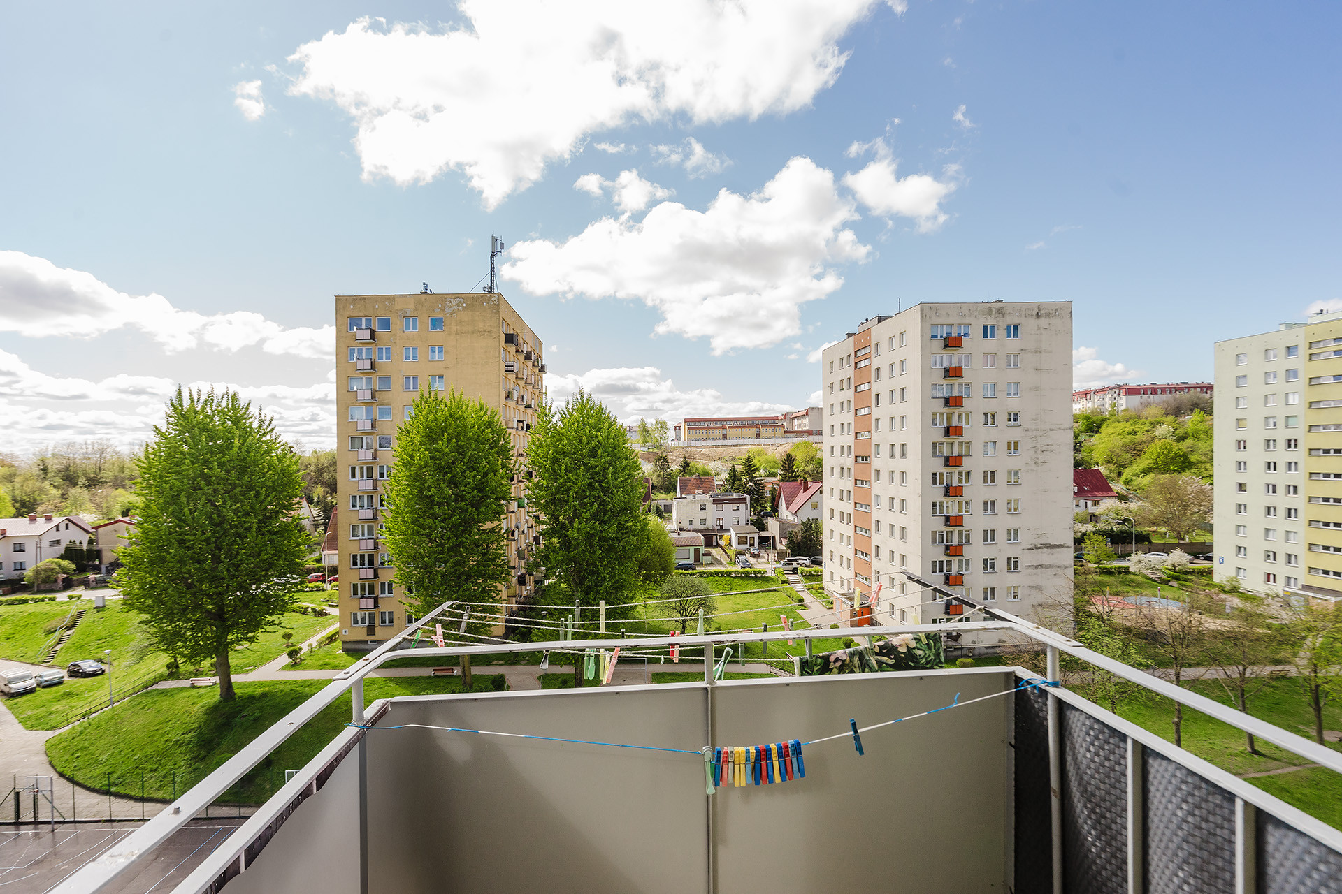 Położone na 9 piętrze dzięki czemu z okien roztaczają się rozległe, bardzo ładne widoki. Ekspozycja okien wschód i południe, dobrze nasłonecznione. Powierzchnia mieszkania wynosi 52 m2, na którą składają się: