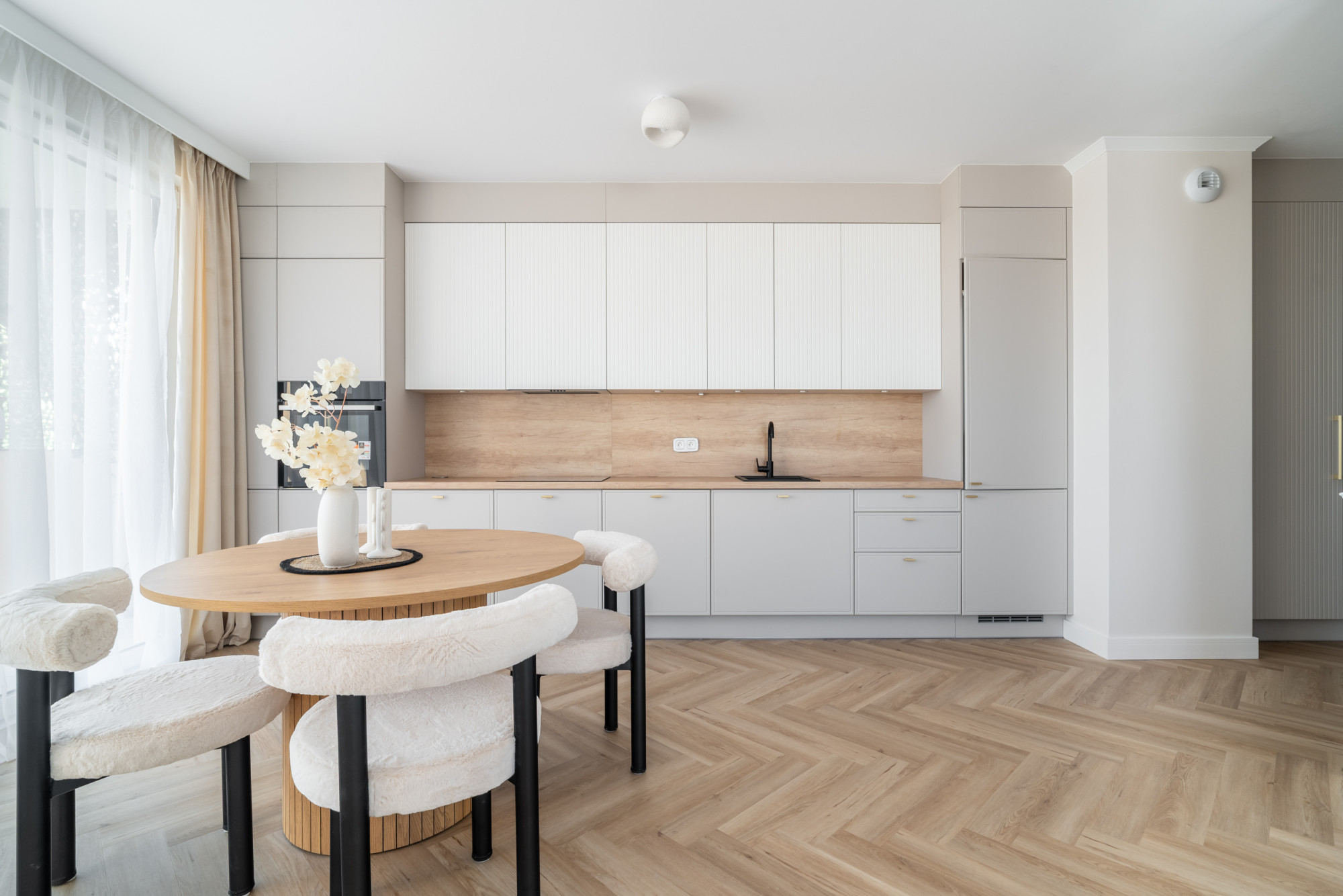 Apartament został wykończony z dbałością o każdy detal, z użyciem najwyższej klasy materiałów oraz pod okiem doświadczonego architekta wnętrz.