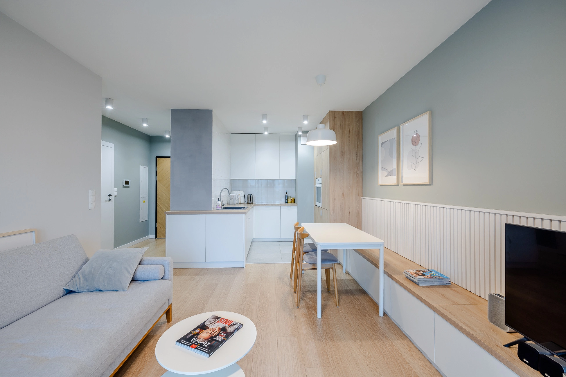 BUDYNEK: mieszkanie znajduje się na 4. piętrze w 12-piętrowym apartamentowcu będącym częścią inwestycji kryjącej się pod nazwą Tarasy Bałtyku, której autorem jest deweloper Allcon. Budynek wzniesiono w 2022 roku przy użyciu różnych materiałów mieszanych. Ogólny stan całej nieruchomości jest idealny. Obiekt jest strzeżony oraz monitorowany. Wejście do klatki schodowej zabezpieczone jest videodomofonem. Klatka czysta, zadbana, szeroka, utrzymana w nowoczesnym stylu. Na poszczególne kondygnacje dostaniemy się też dzięki dwóm cichobieżnym i szybkim windom. W pobliżu samej nieruchomości znajdziemy ogólnodostępne miejsca postojowe. Dodatkowo do wyłącznego użytku mieszkańców: strefa SPA & Wellness z sauną, sala klubowa z bilardem, siłownia, strefa relaksu oraz patio z miejscami do wypoczynku, które jest pięknie zagospodarowane zielenią.