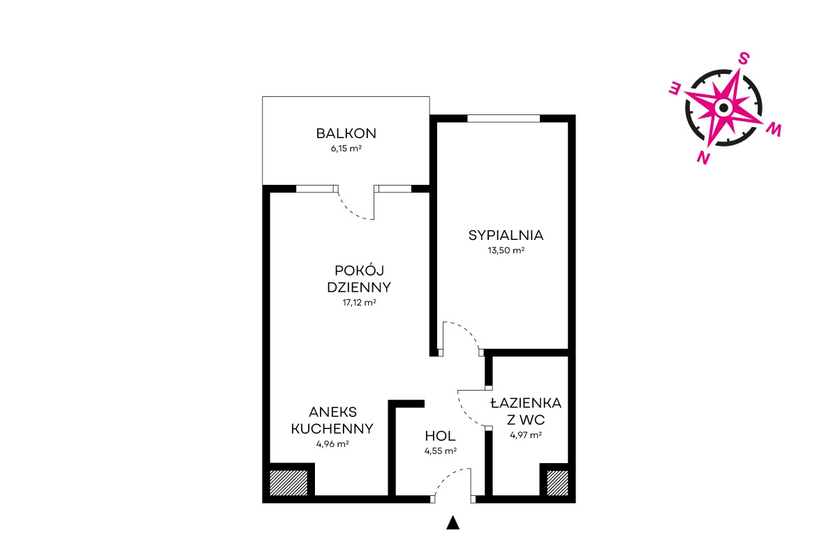 – pokój dzienny (17,12 m2) z wyjściem na balkon (6,15 m2),