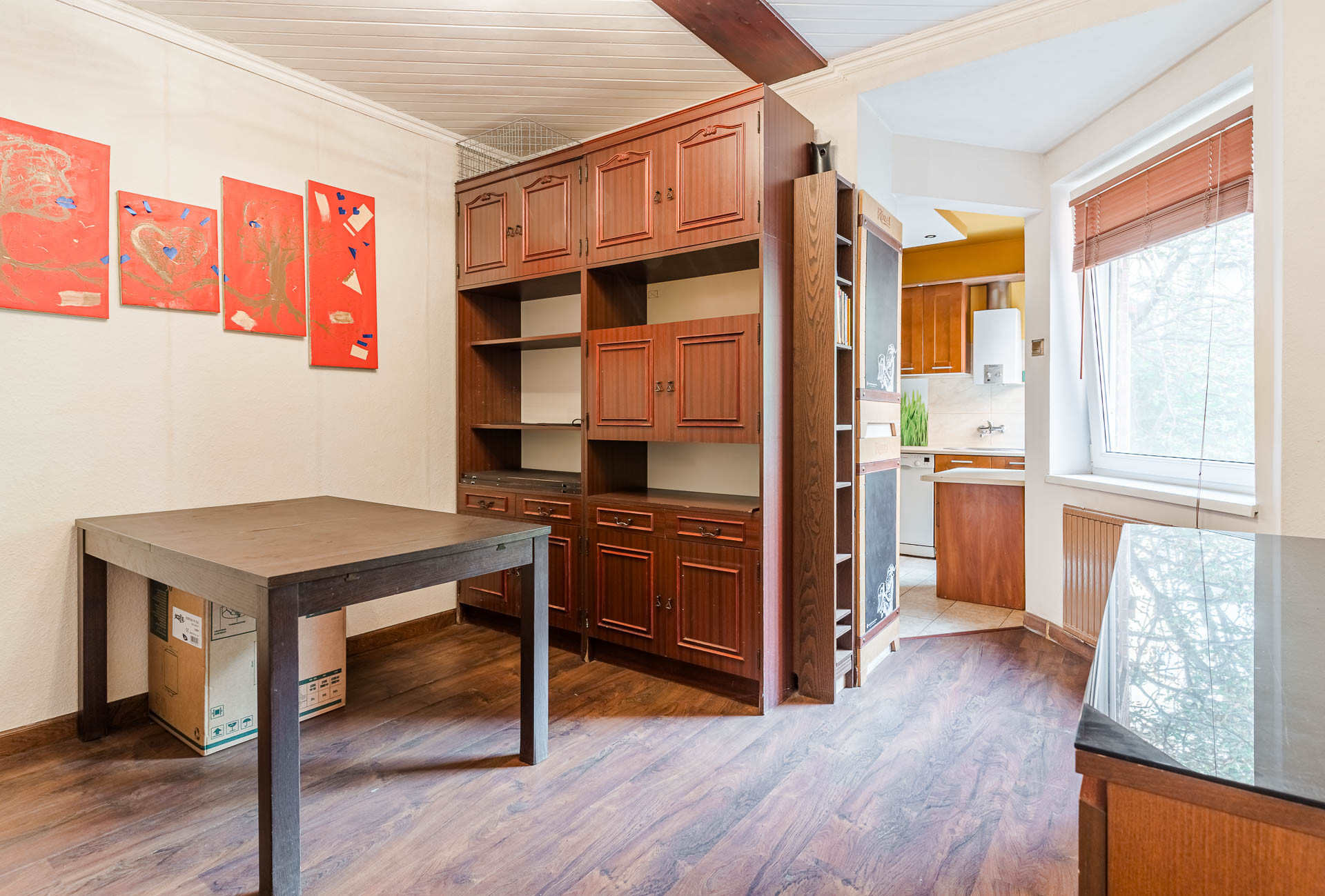 Trzy pokojowe mieszkanie o powierzchni 68m2 mieszczące się na 1-piętrze w jednopiętrowej kamienicy. Jest usytuowane od południa, dzięki czemu w salonie oraz sypialni jest bardzo jasno. Kuchnia ma wystawę północną i jest skierowana w stronę zalesionego podwórka. Z okna widać miejsce parkingowe, które znajduję się za bramą i dostęp do tego terenu jest tylko dla osób posiadających uprawnienie. Ponadto w skład własności wchodzi pomieszczenie gospodarcze pod schodami oraz bardzo duży składzik.