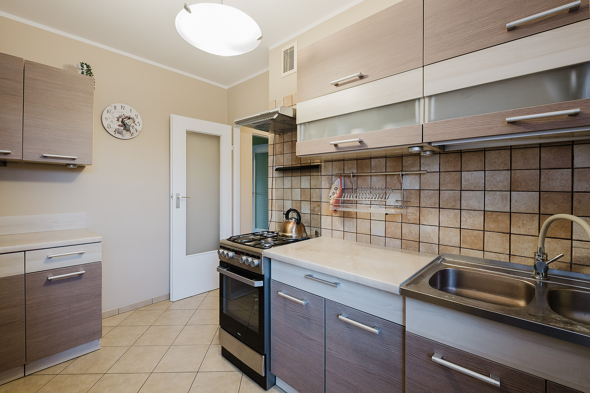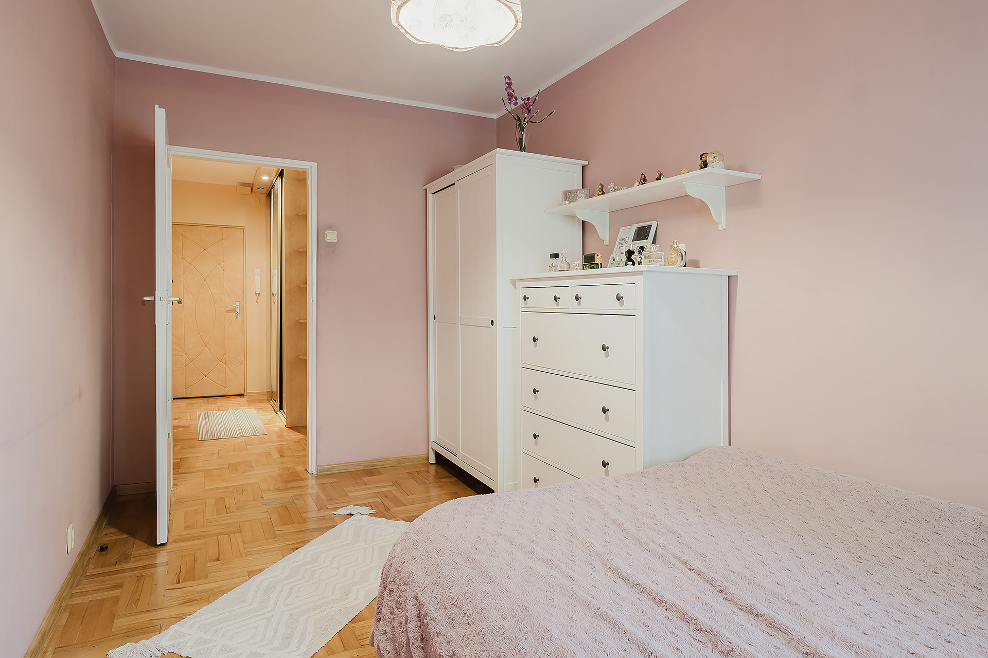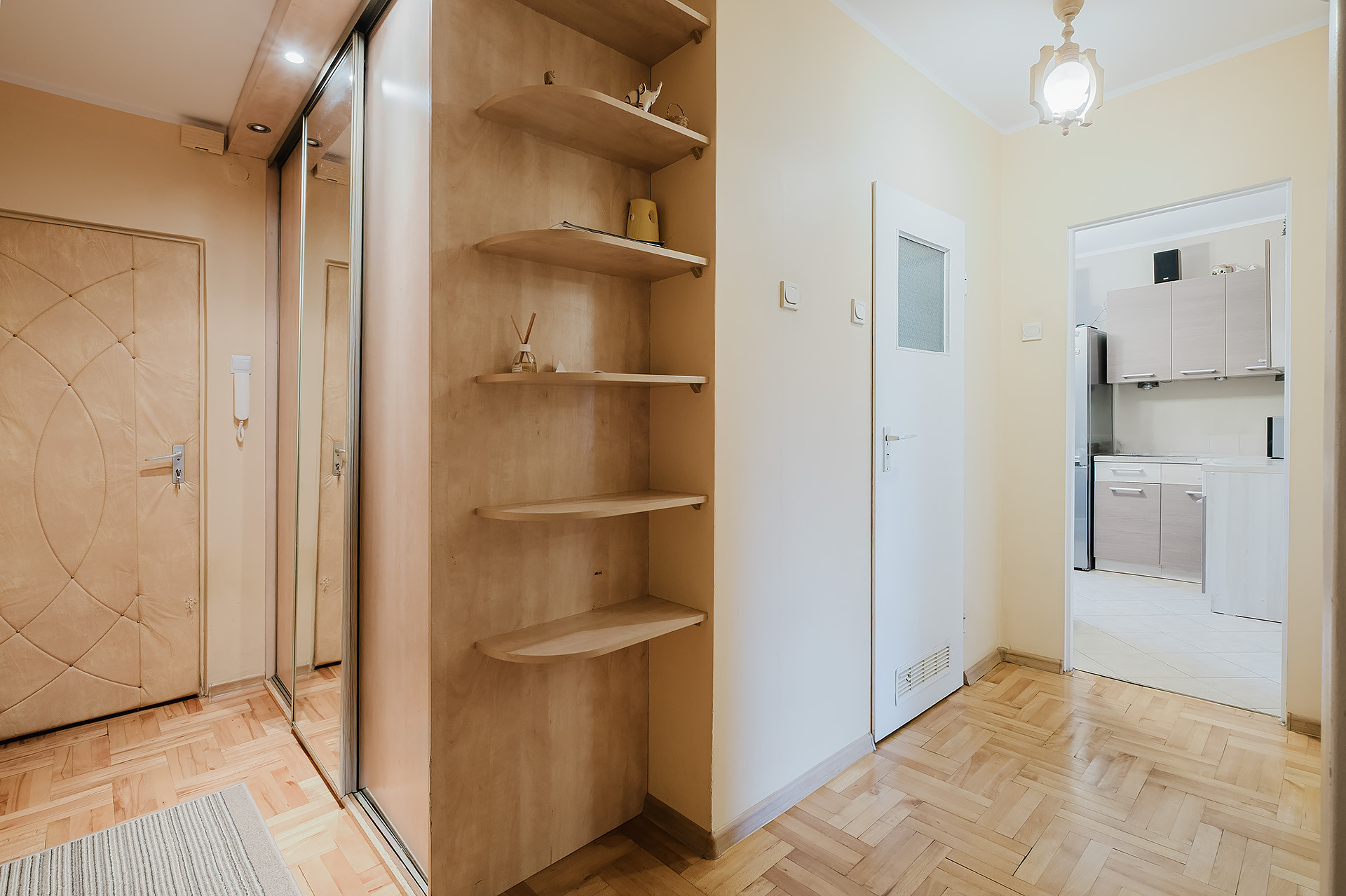 – przestronnego korytarza z szafą w zabudowie;