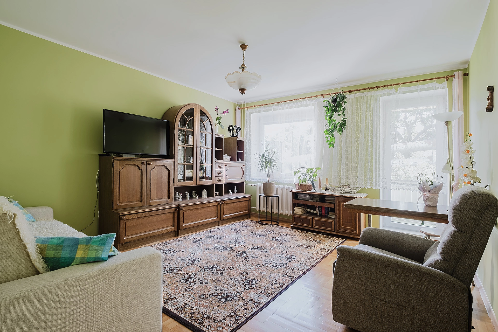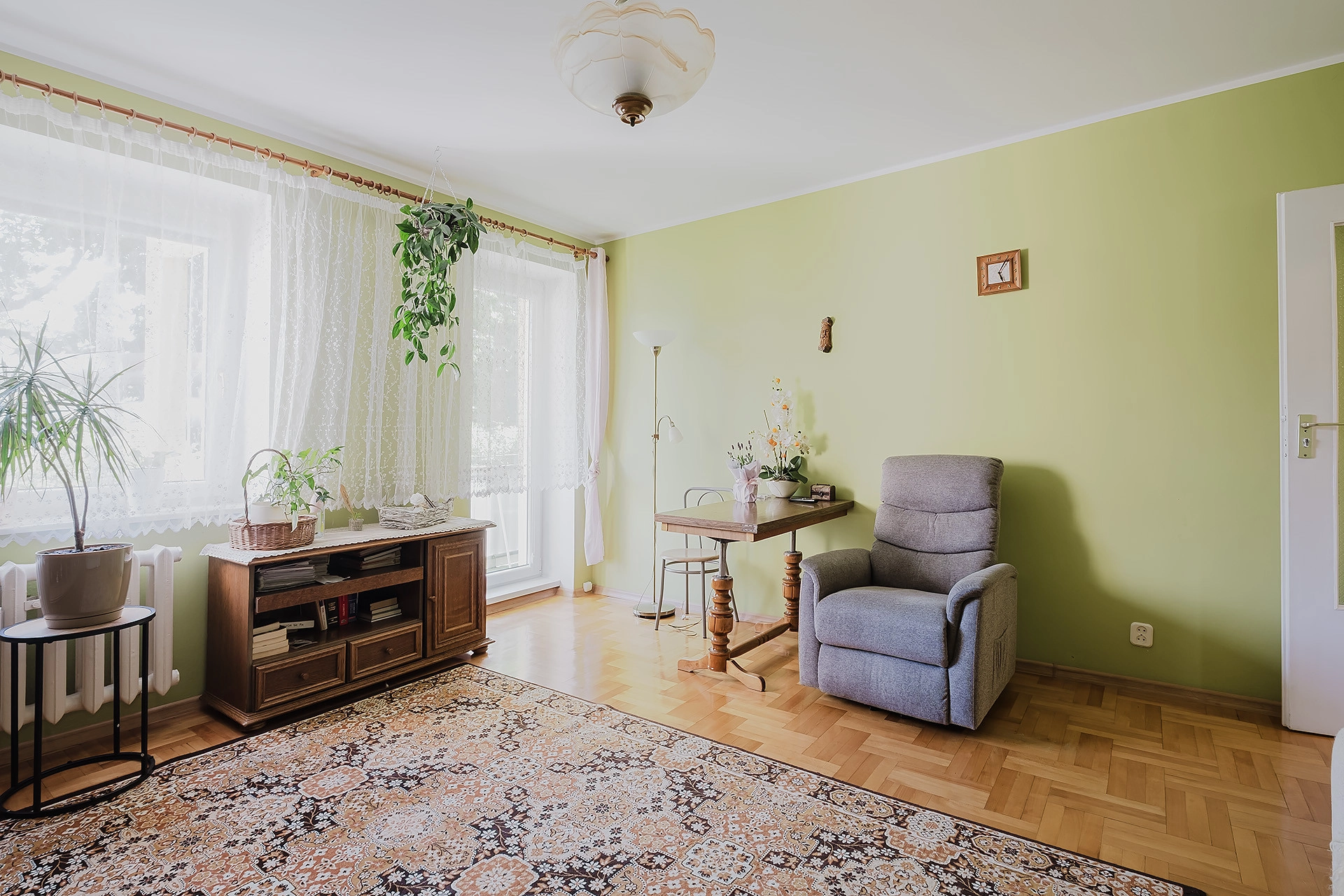 Mieszkanie gotowe do wprowadzenia, na podłogach parkiet i terakota. Istnieje możliwość pozostawienia wyposażenia.