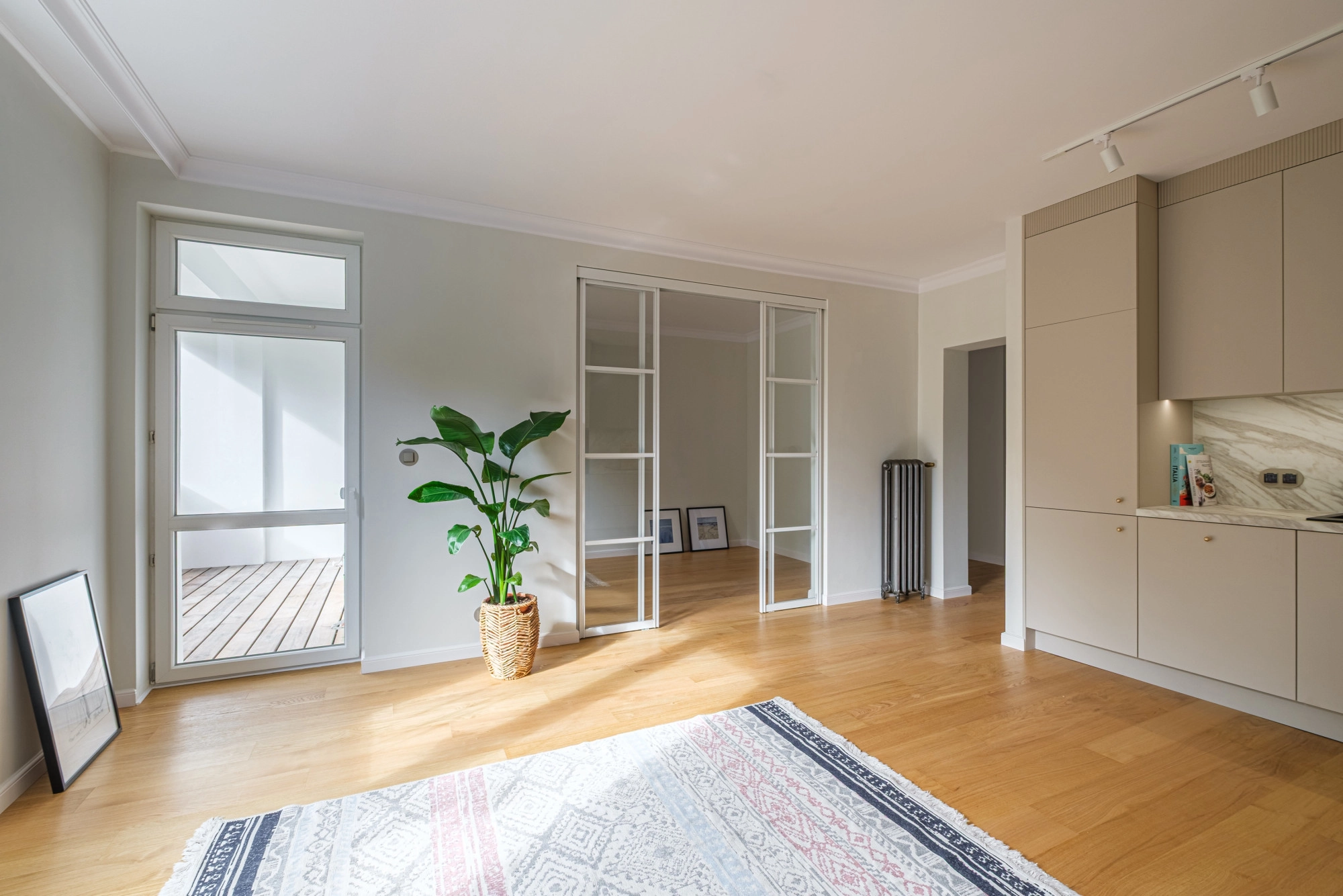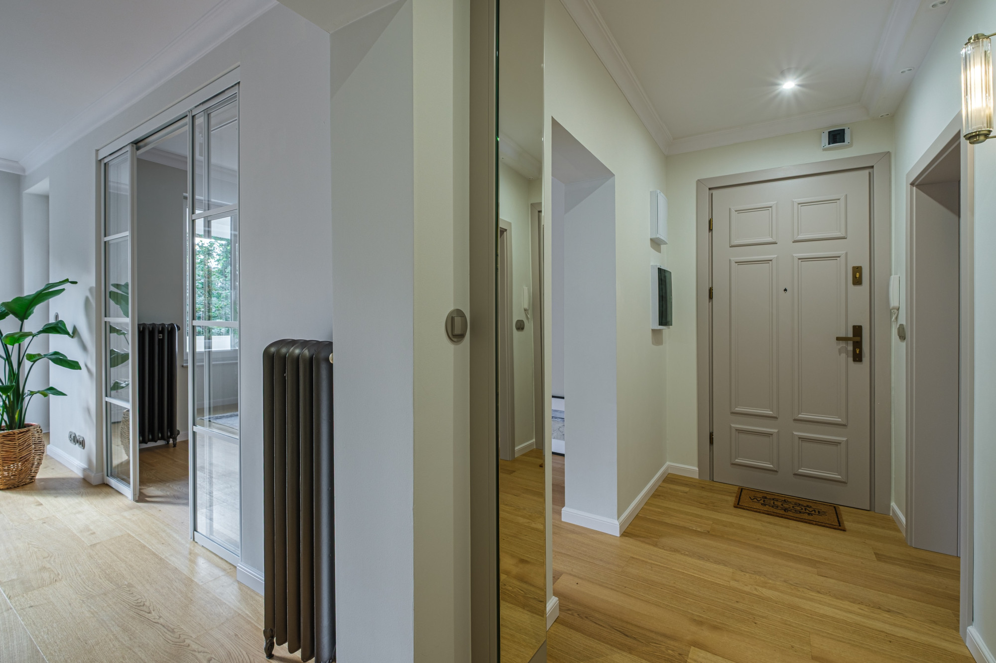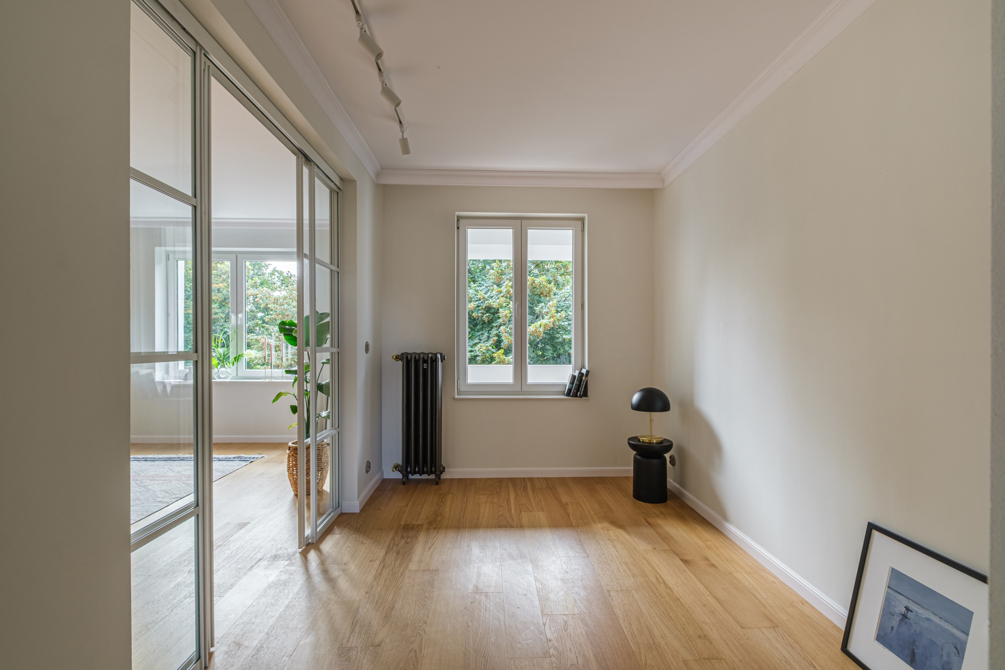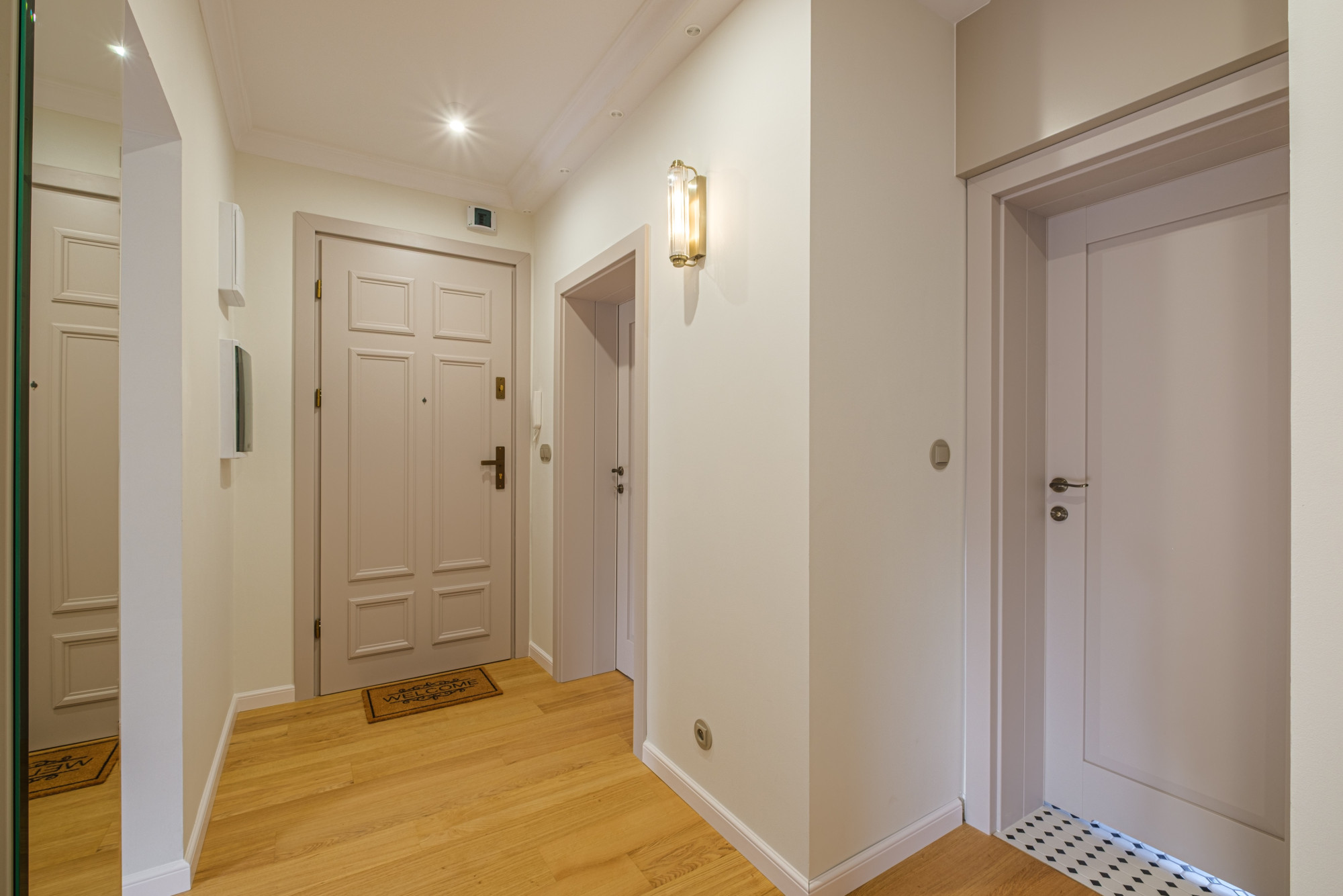 Mieszkanie przeszło gruntowny remont, zostało wykończone w wysokim standardzie z dbałością o każdy detal. Wykonane zostały nowe zabudowy stolarskie na wymiar, kuchnia oraz łazienka w nowoczesnym stylu. Wymienione drzwi (zewnętrzne i wewnętrzne marki Barański), podłogi z paneli fornirowanych drewnem, profesjonalnie odnowione żeliwne grzejniki.