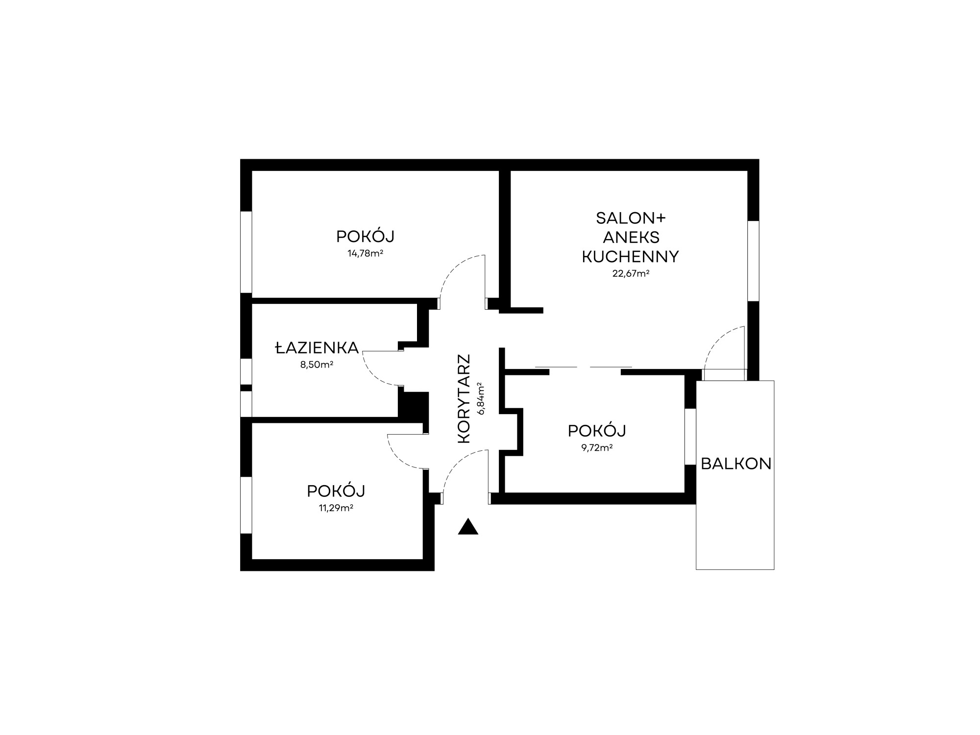 – Pokój 1 (sypialnia) –  ok.14,8 m², z miejscem na dużą szafę lub garderobę,