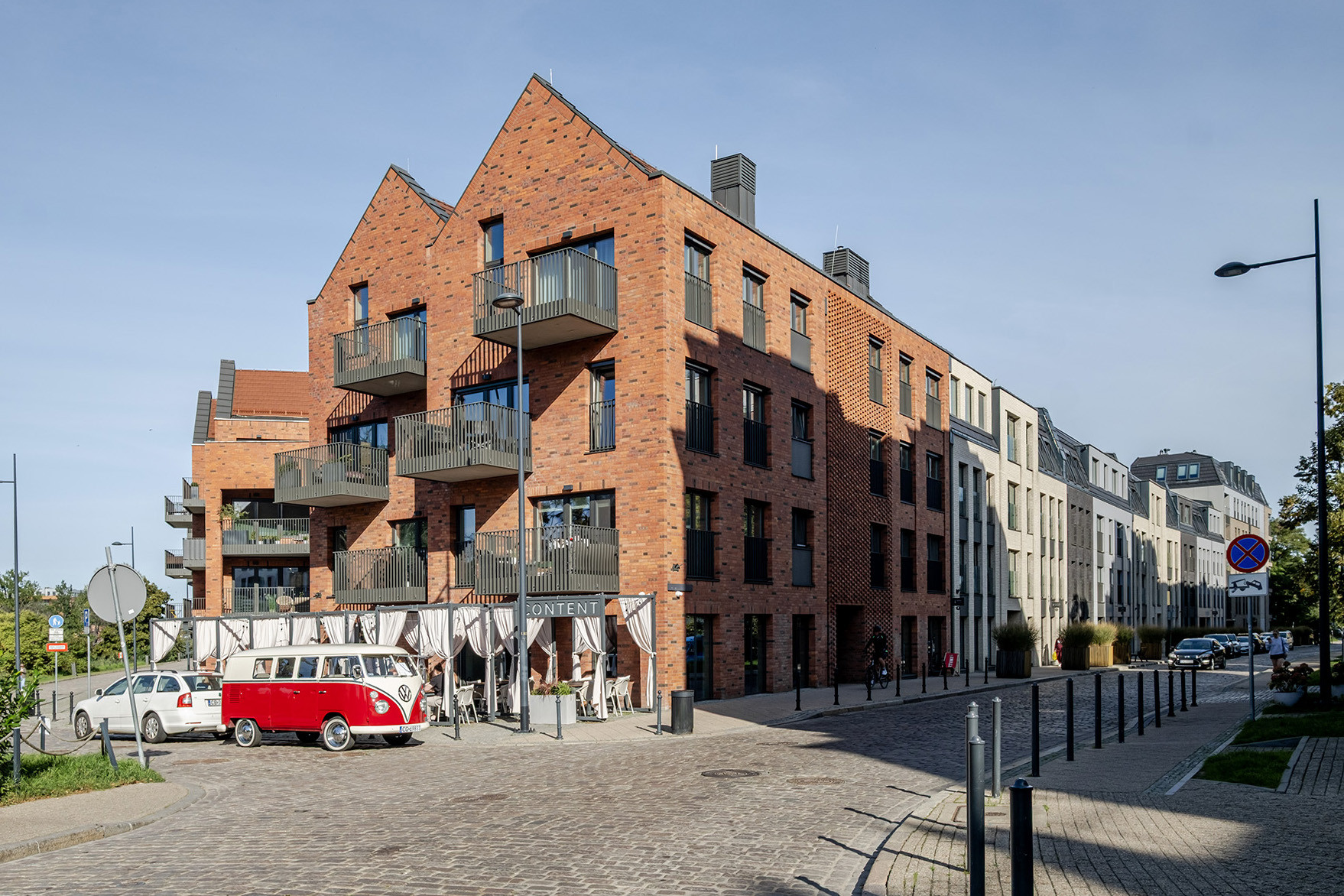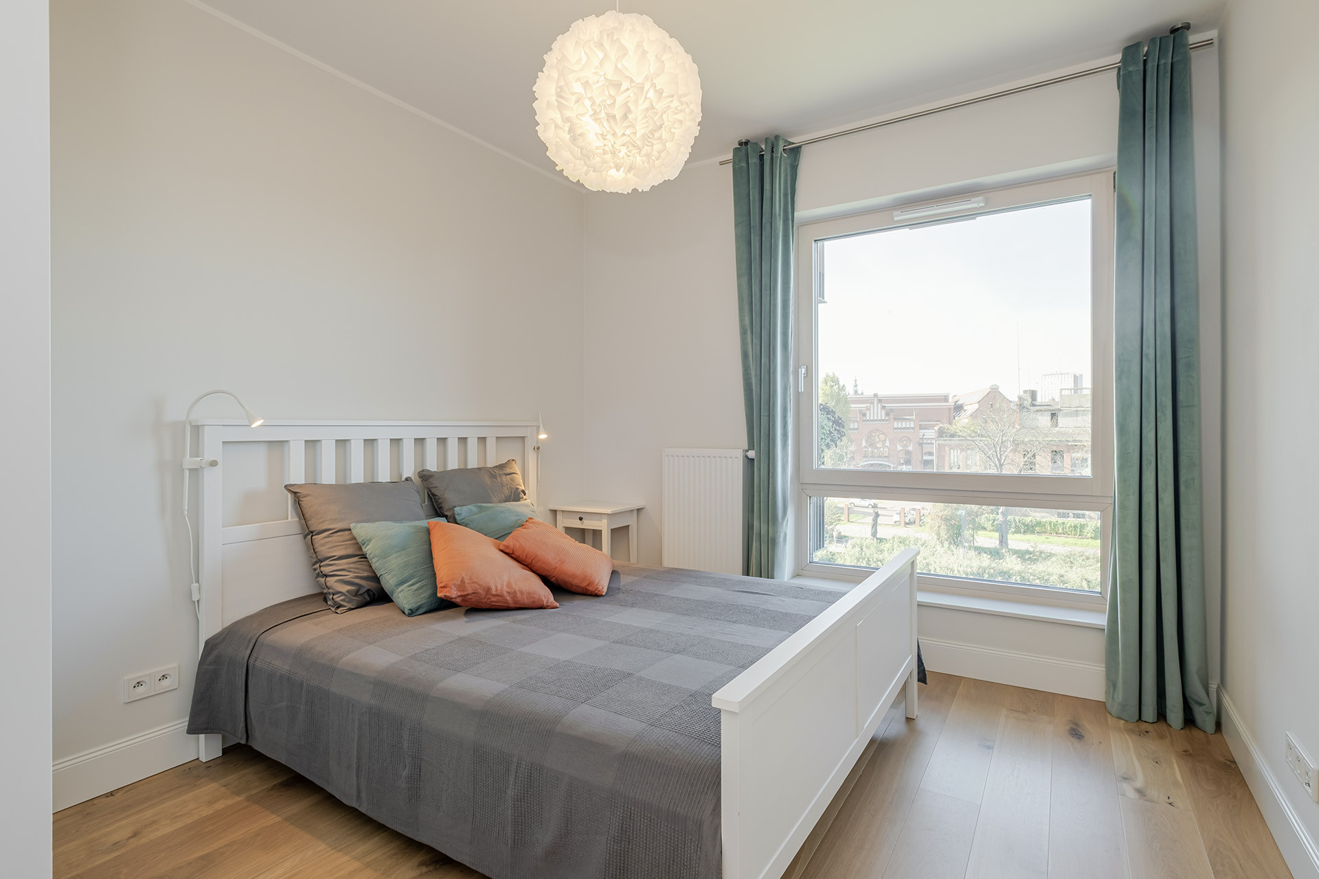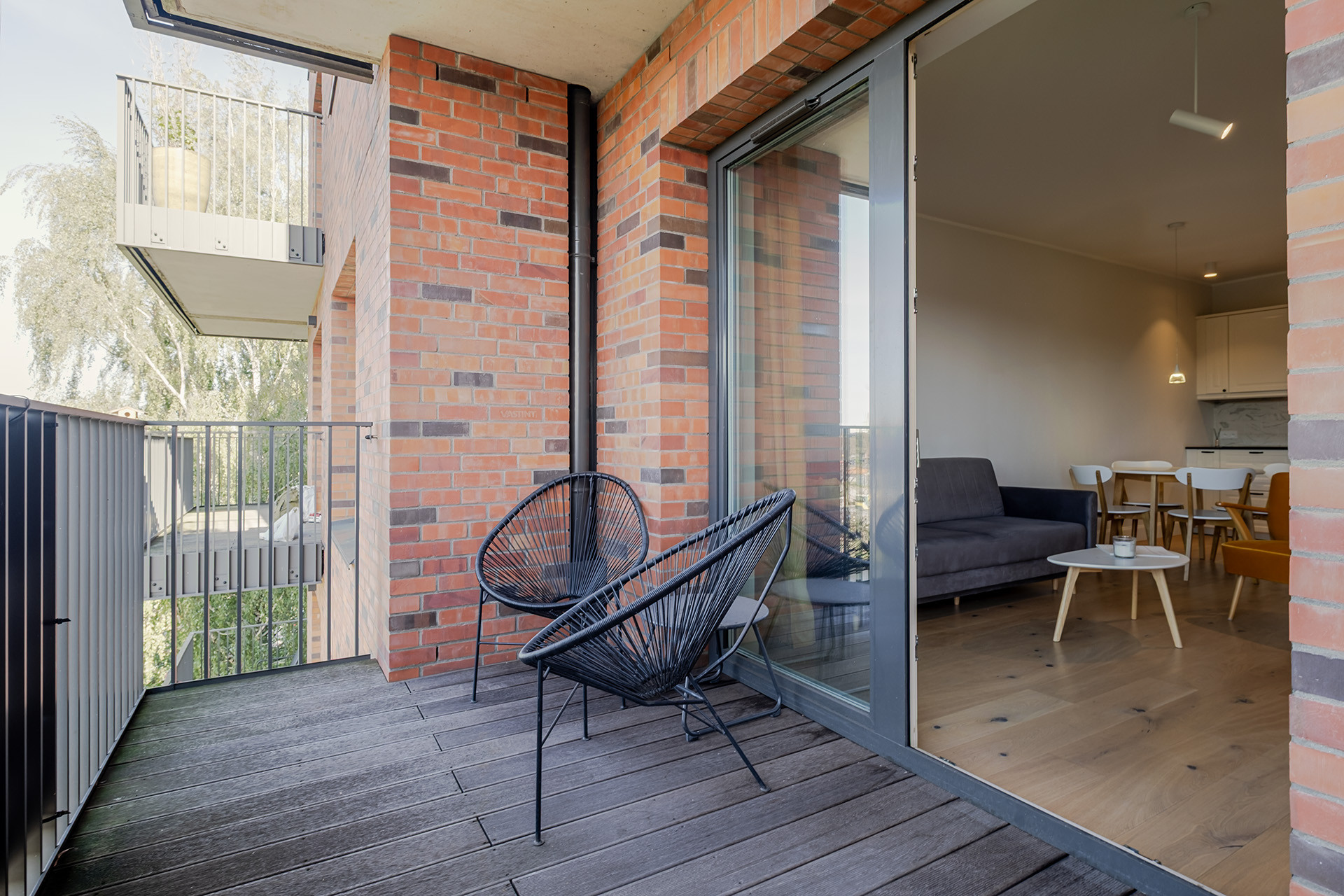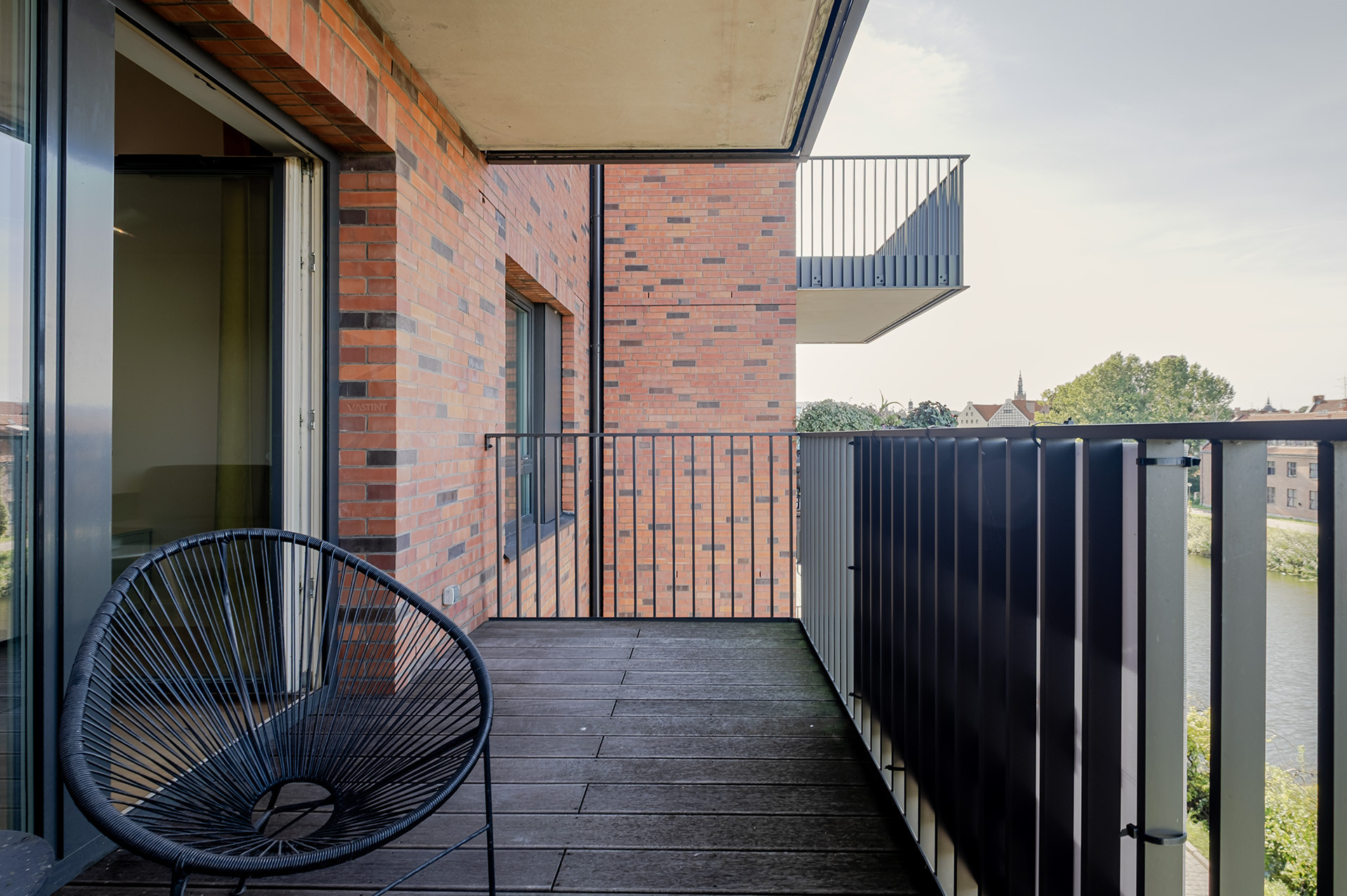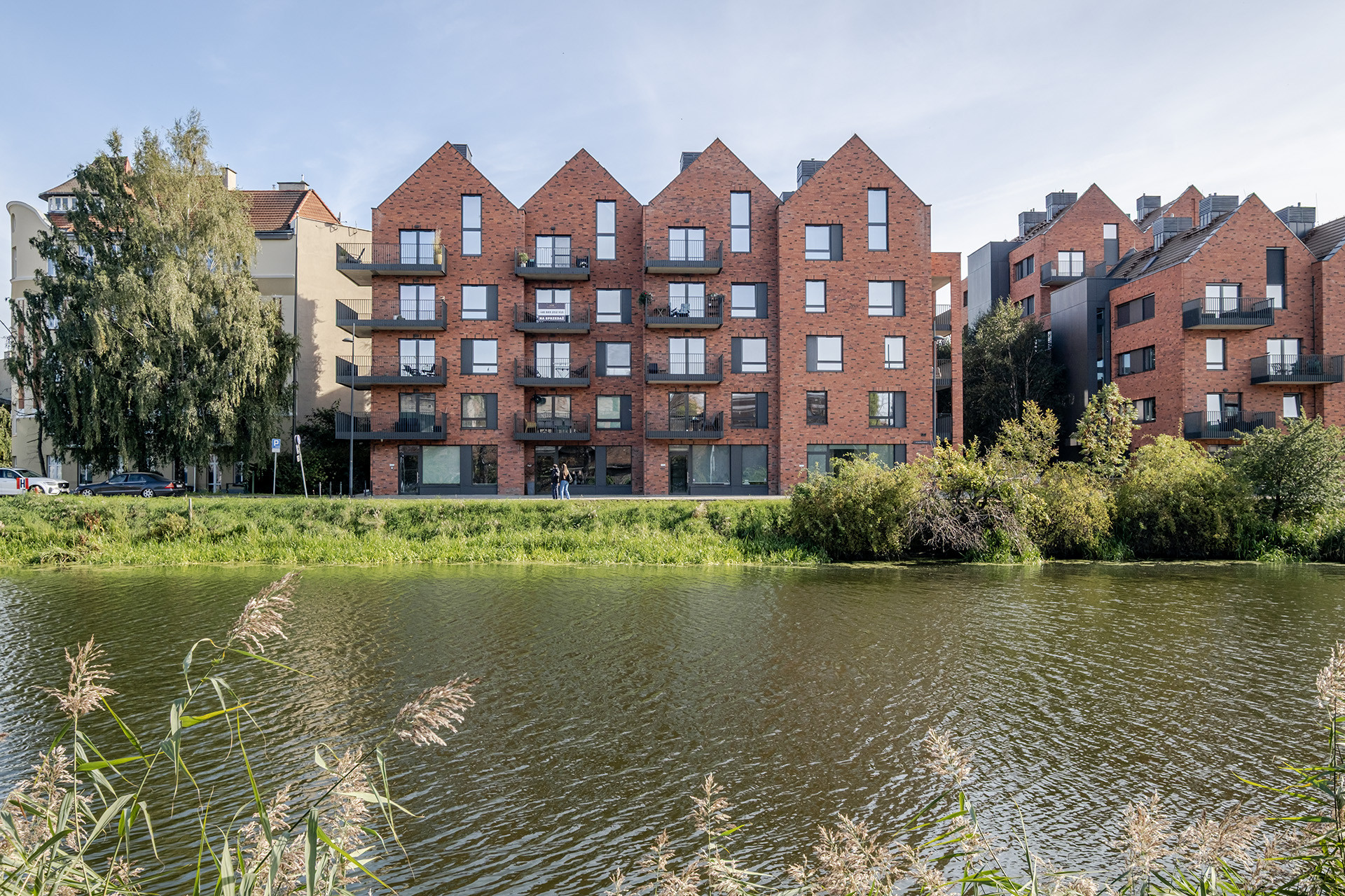 Apartament znajduje się w eleganckim, siedmiopiętrowym budynku z windą, należącym do prestiżowej inwestycji Riverview. Kameralny charakter kompleksu podkreśla ceglana architektura nawiązująca do historycznej zabudowy, budynek wyposażony w stylowe części wspólne. Nad bezpieczeństwem mieszkańców czuwa całodobowa ochrona i monitoring.