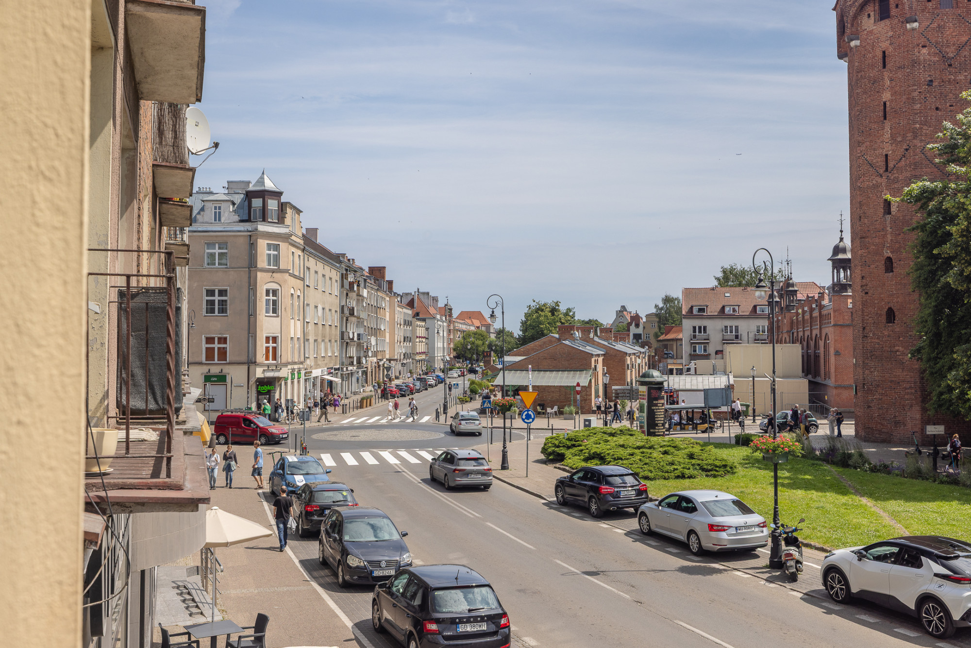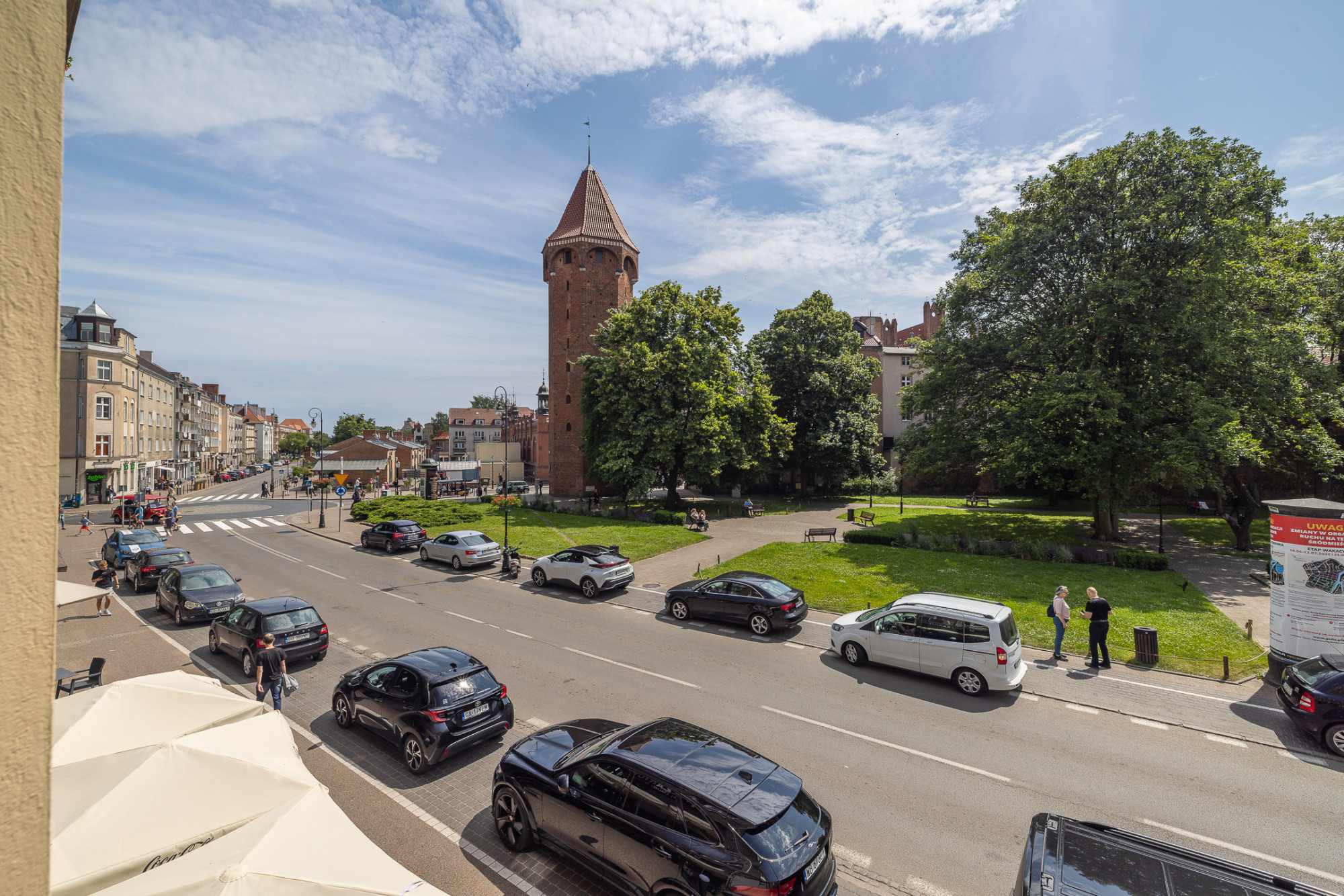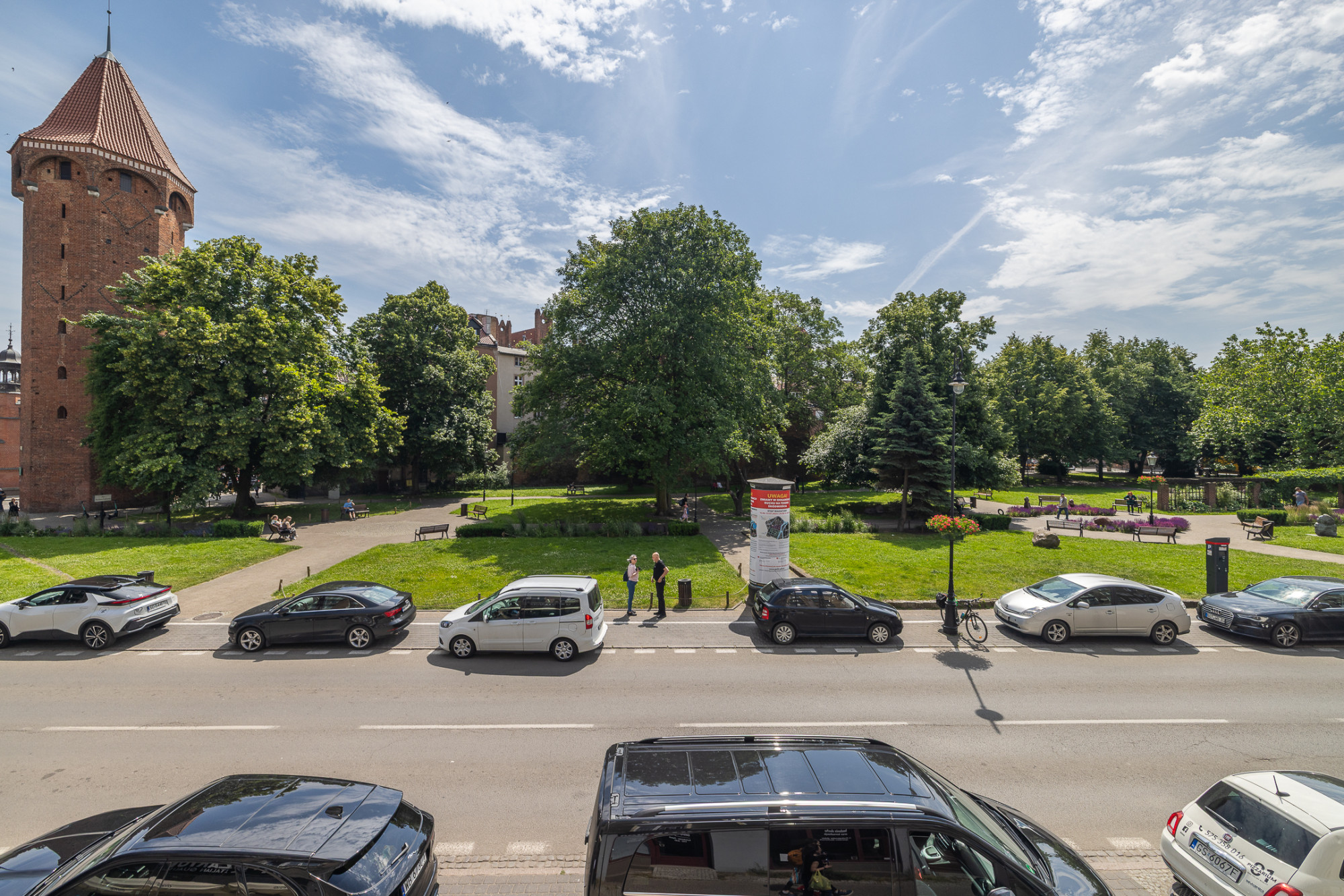 Mieszkanie zanjduje się w kameralnym budynku na pierwszym piętrze. Z balkonu i okien widok na Bazylikę Mariacką i basztę św. Jacka, a także park (plac) Kobzdeja. W 5 minut pieszo dojdziemy do Dworca PKP Gdańsk Główny oraz węzła komunikacyjnego z przystankiem tramwajowym, autobusowym i Szybką Koleją Miejską. Tyle samo zajmuje spacer do Forum Gdańsk i Galerii Madison.