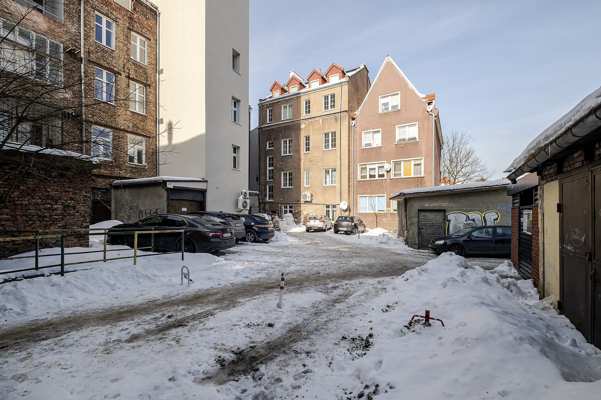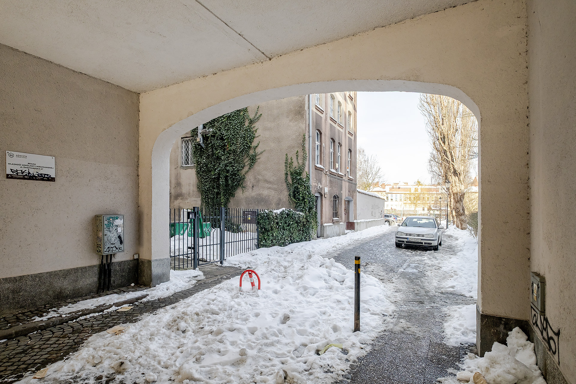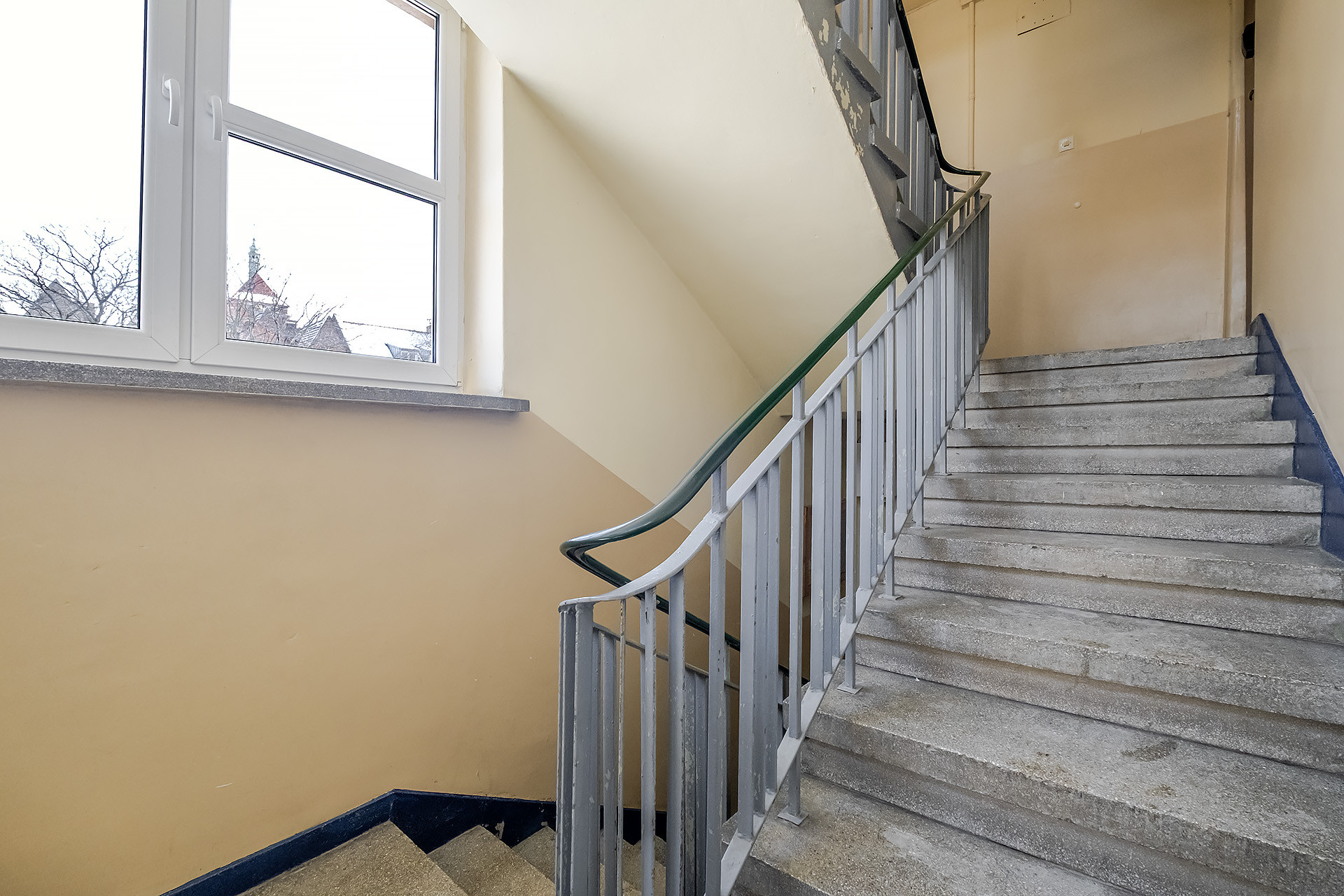 BUDYNEK: mieszkanie mieści się na 1. piętrze w 2-piętrowej kamienicy z lat 60. XX  w., którą wykonano z cegły, a dach pokryto dachówką ceramiczną (generalny remont dachu miał miejsce w 2024 r.). Ogólny stan całej nieruchomości należy uznać za dobry. Wejście właściwe do klatki schodowej zabezpieczone jest domofonem. Klatka zadbana, czysta. Teren posesji jest częściowo ogrodzony.