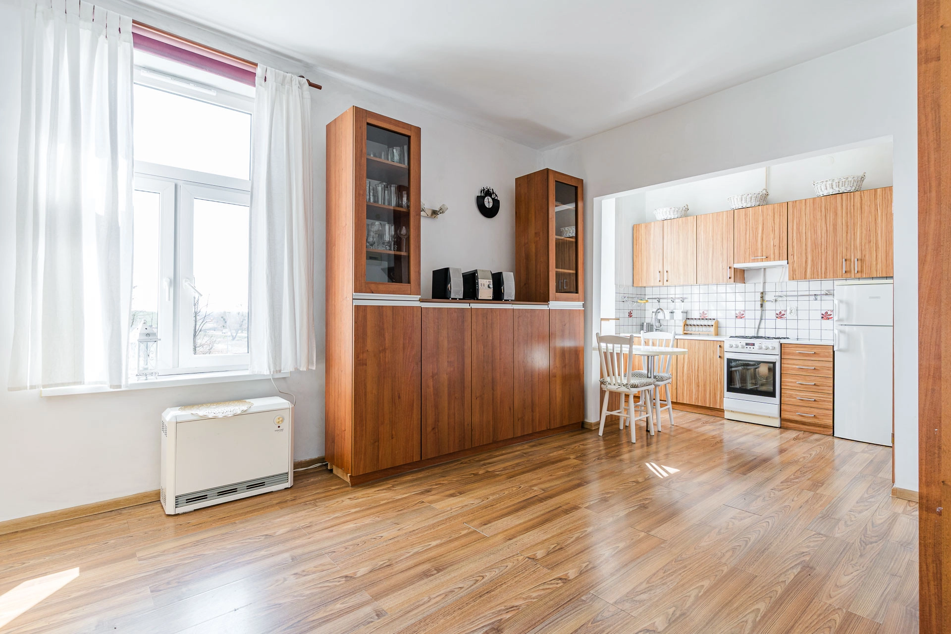 Woda użytkowa jest podgrzewana za pomocą bojlera natomiast za ogrzewanie odpowiadają grzejniki na prąd.