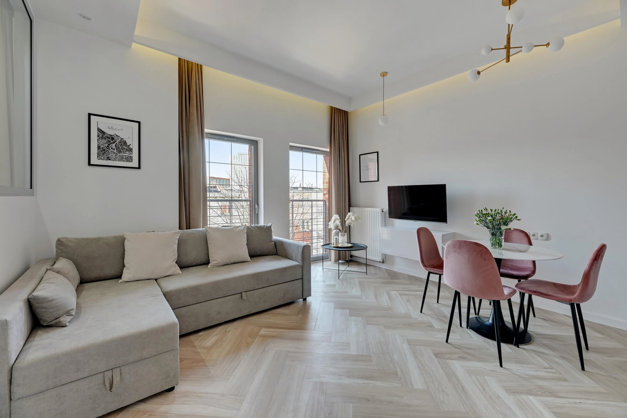 Apartament położony jest w prestiżowej części historycznego Śródmieścia Gdańska, w bezpośrednim sąsiedztwie Poczty Polskiej, rzeki Motławy oraz kultowych ulic: Długiej i Mariackiej. Do najbardziej znanych zabytków gdańskiej starówki dotrzesz w zaledwie kilka minut spacerem.