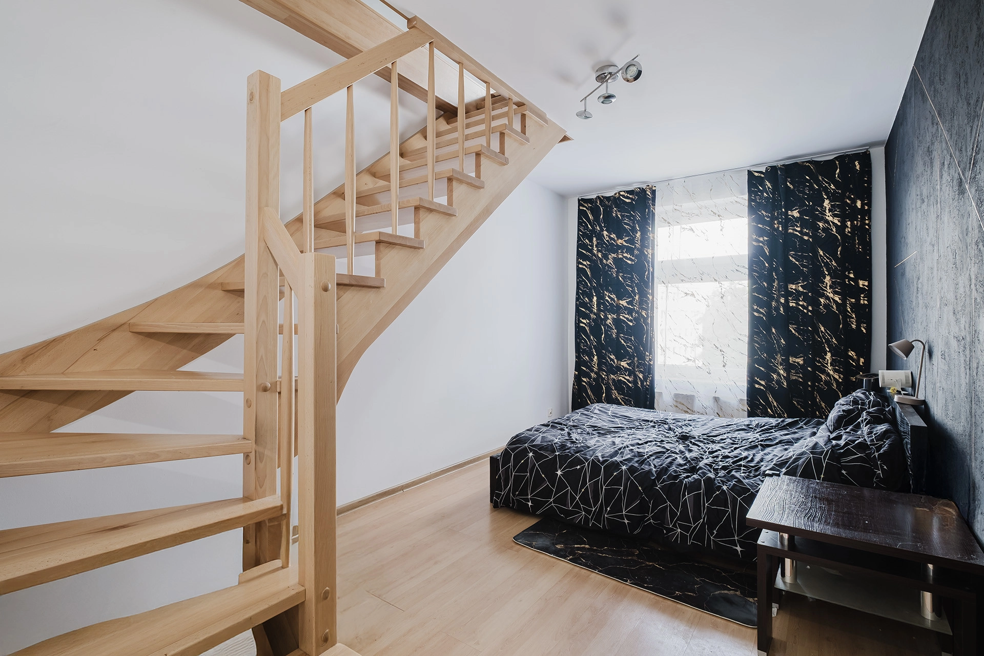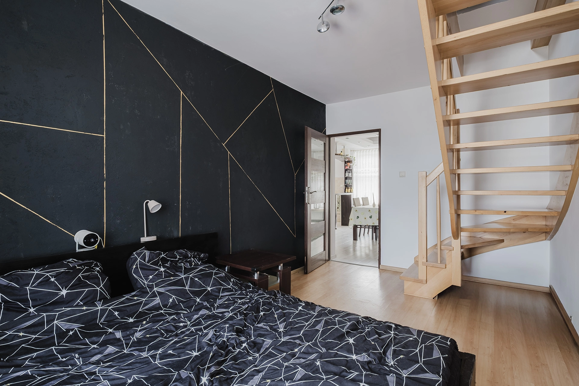 -Sypialni (13,50m2) ze schodami prowadzącymi do zaadoptowanej części