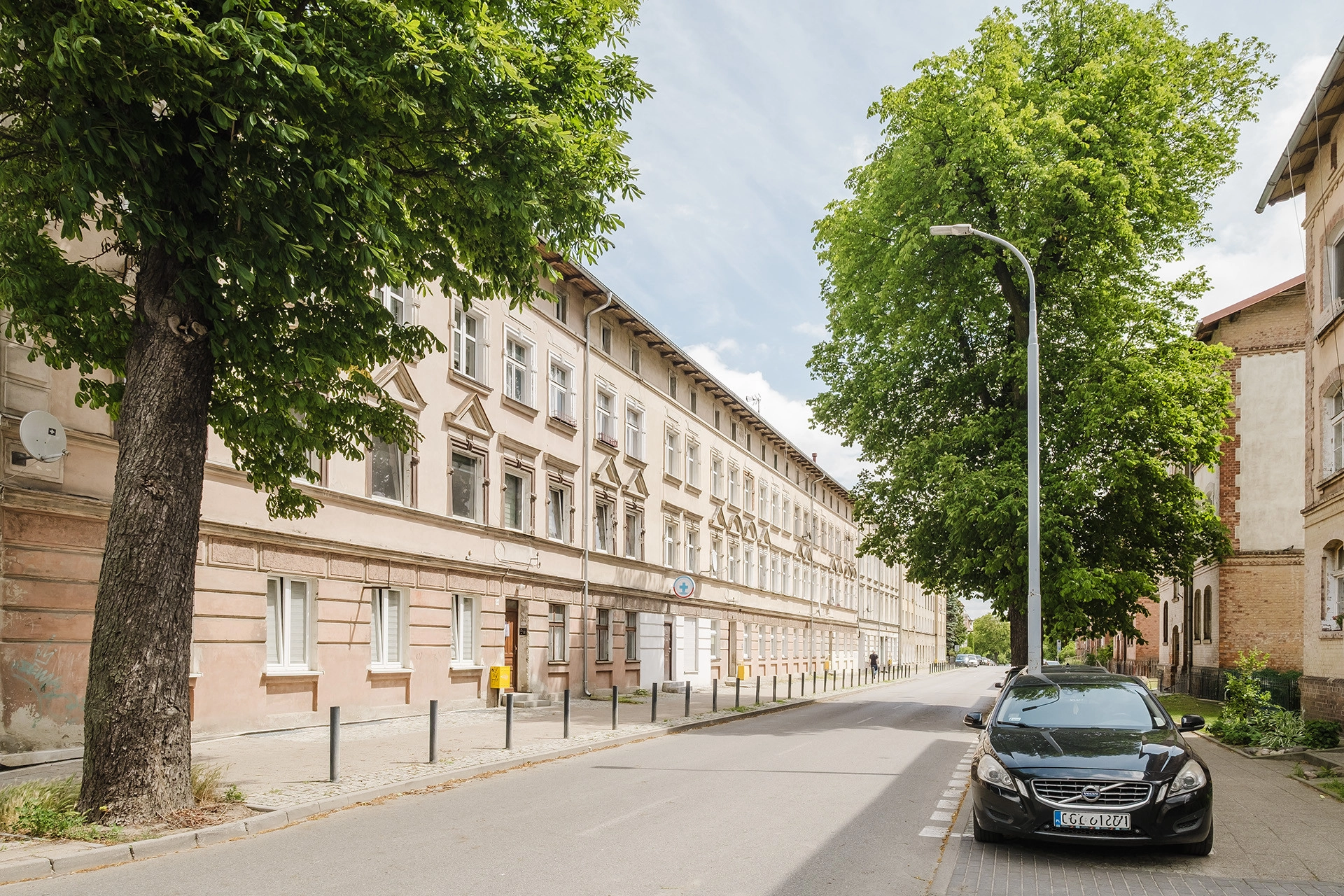 Mieszkanie znajduje się w 2-piętrowej kamienicy z 1900 roku. W ostatnim czasie Wspólnota mieszkaniowa wymieniła w całym budynku rury wody ciepłej, zimnej oraz elektrykę w częściach wspólnych a do budynku zostało podłączone ogrzewanie miejskie. Wejście do klatki schodowej zabezpieczone domofonem. Pod budynkiem ogólnodostępne miejsca parkingowe- teren płatny, dla mieszkańców możliwość wykupienia abonamentu- 120 zł/rok. W budynku znajduje się ogólnodostępny strych.