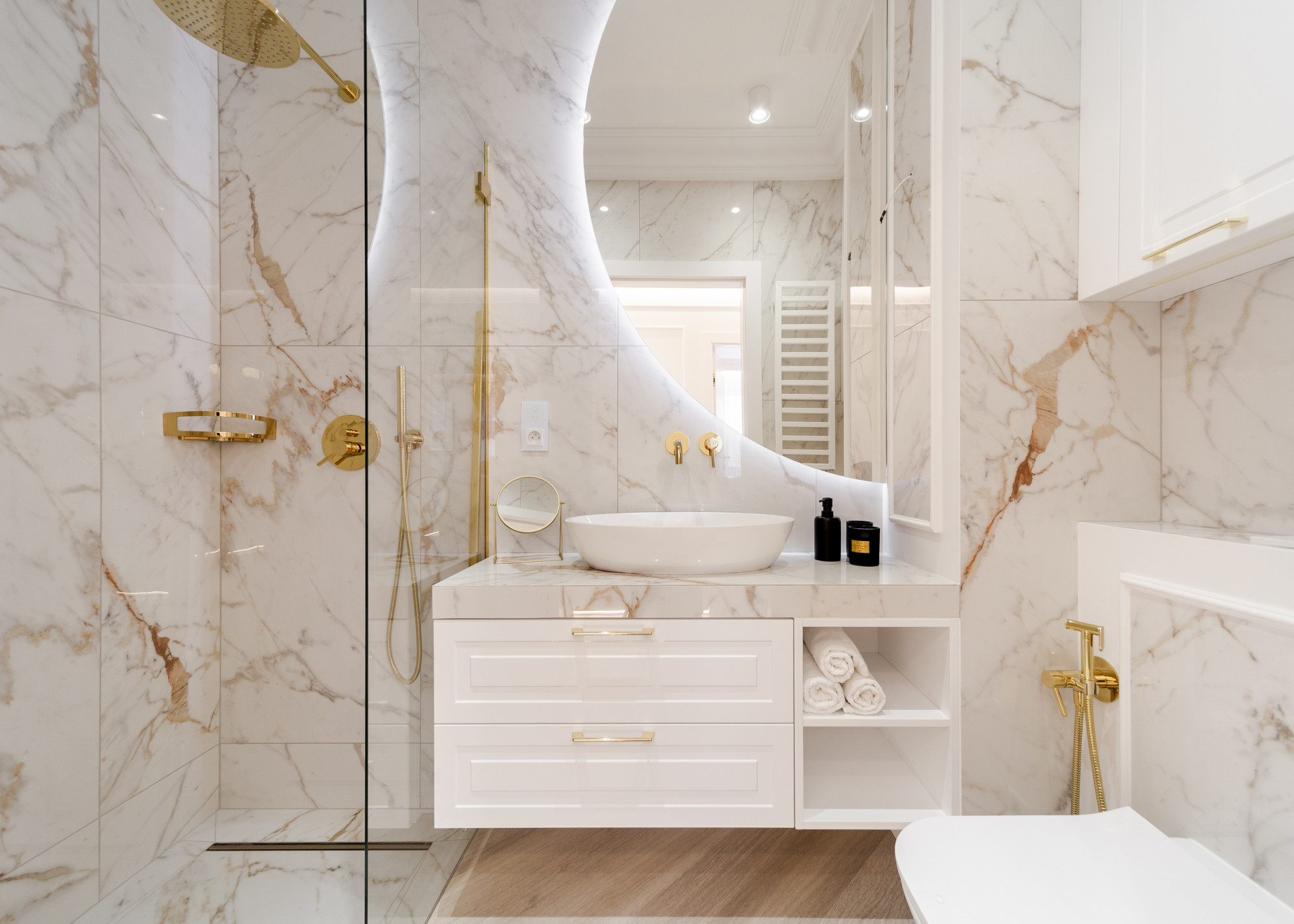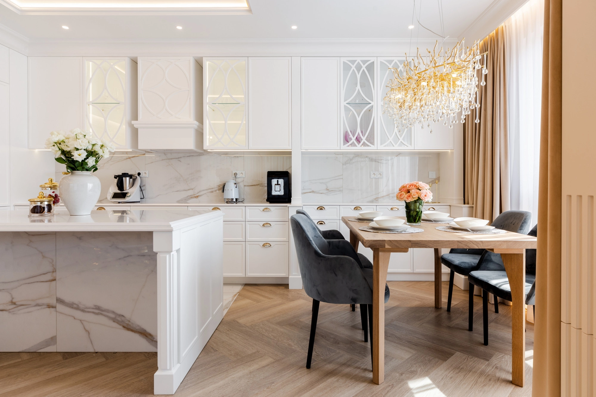 W zabudowach kuchennych oraz łazienkowych zastosowano sprzęt renomowanych marek – Miele oraz Smeg