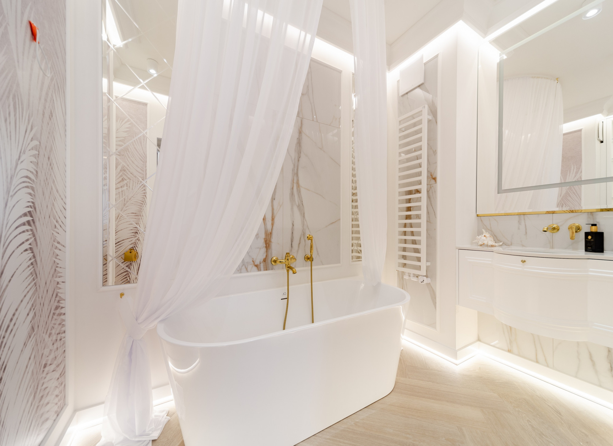 Główna sypialnia z garderobą i prywatną łazienką z wanną
