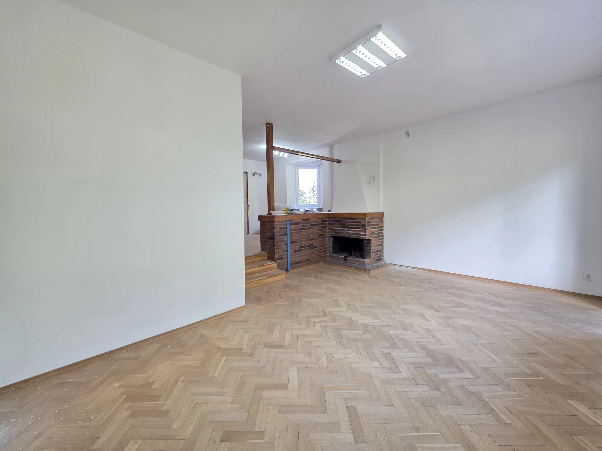 – salon z kominkiem oraz wyjściem na taras i ogród,