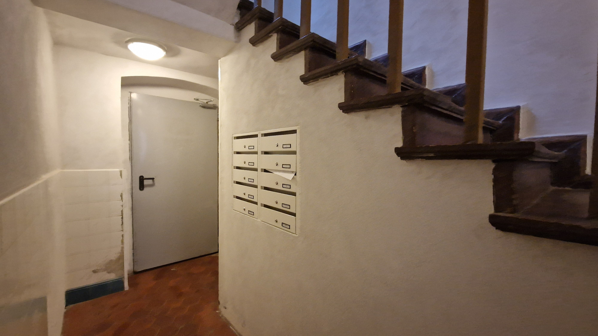Mieszkanie o powierzchni użytkowej 33,26m2, położone na 3 piętrze, z widokiem na wewnętrzne podwórze (wejście z klatki schodowej od podwórza):