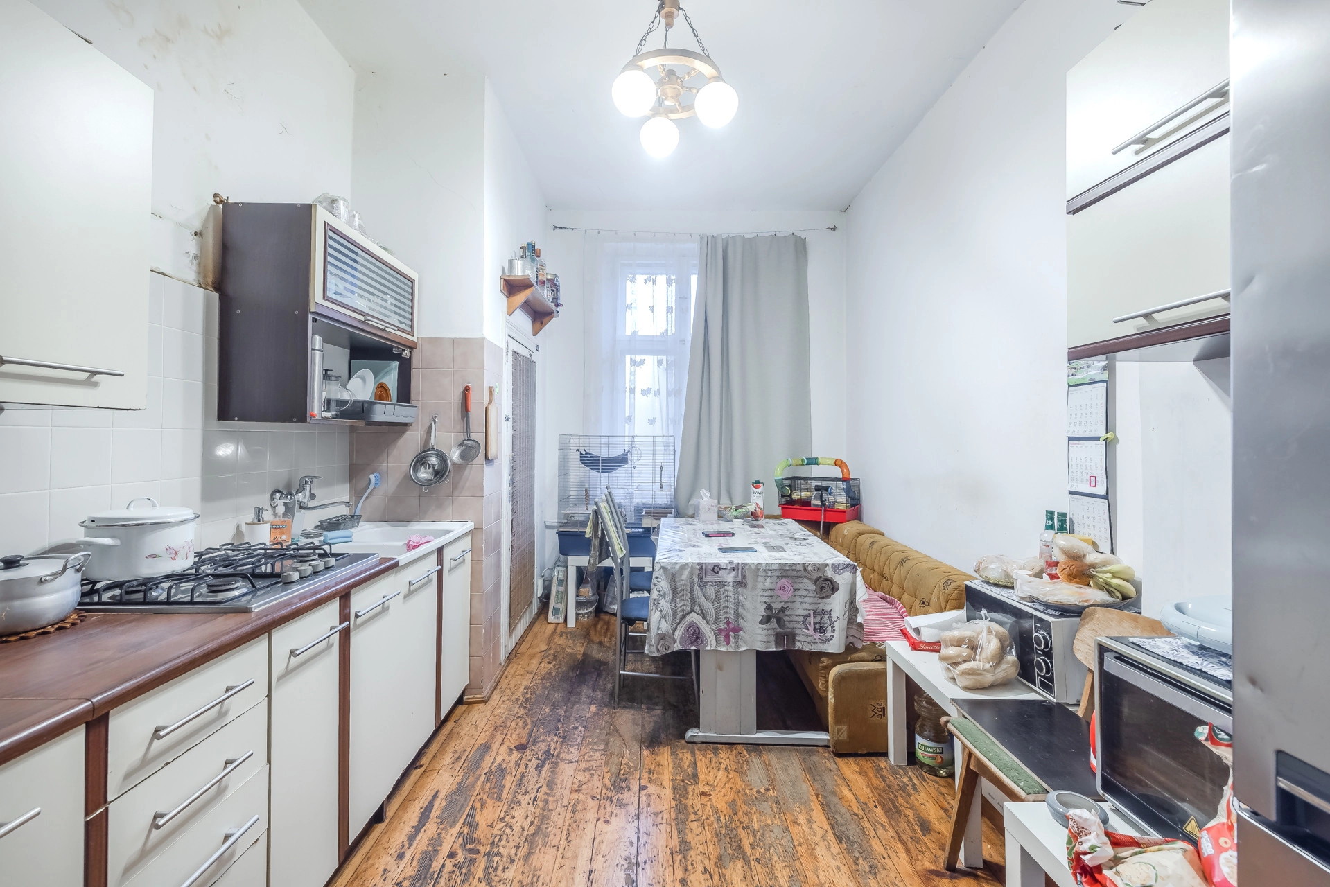 Mieszkanie jest bardzo przestronne, dające spore możliwości aranżacyjne. Istnieje możliwość podziału na mikrokawalerki lub stworzenia pokoi na wynajem.