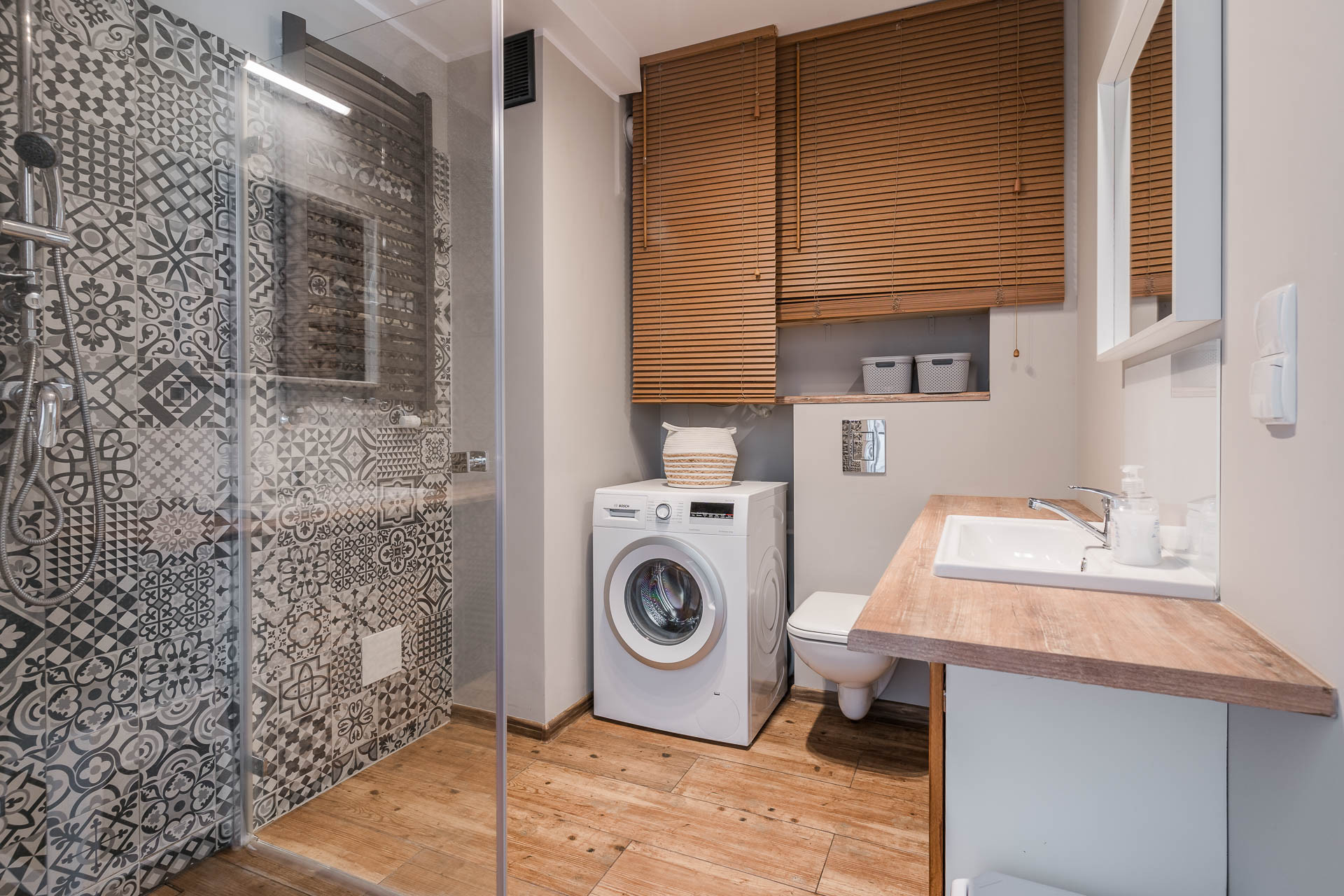 – łazienki z bezprogowym prysznicem i ogrzewaniem podłogowym.