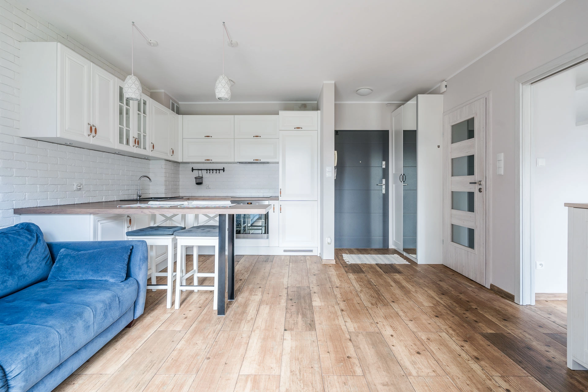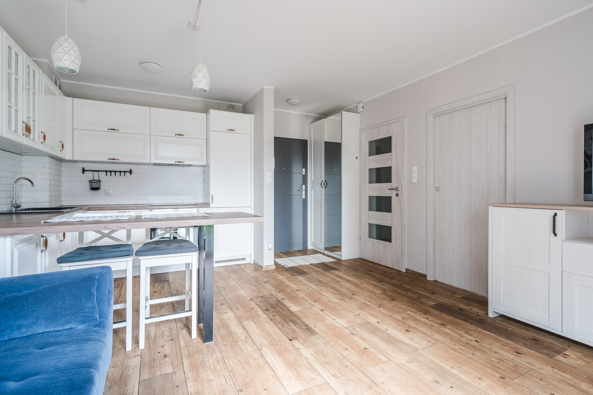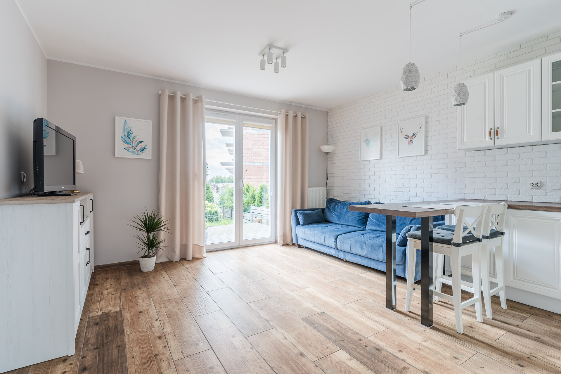 – salonu z aneksem kuchennym i wyjściem do ogródka,