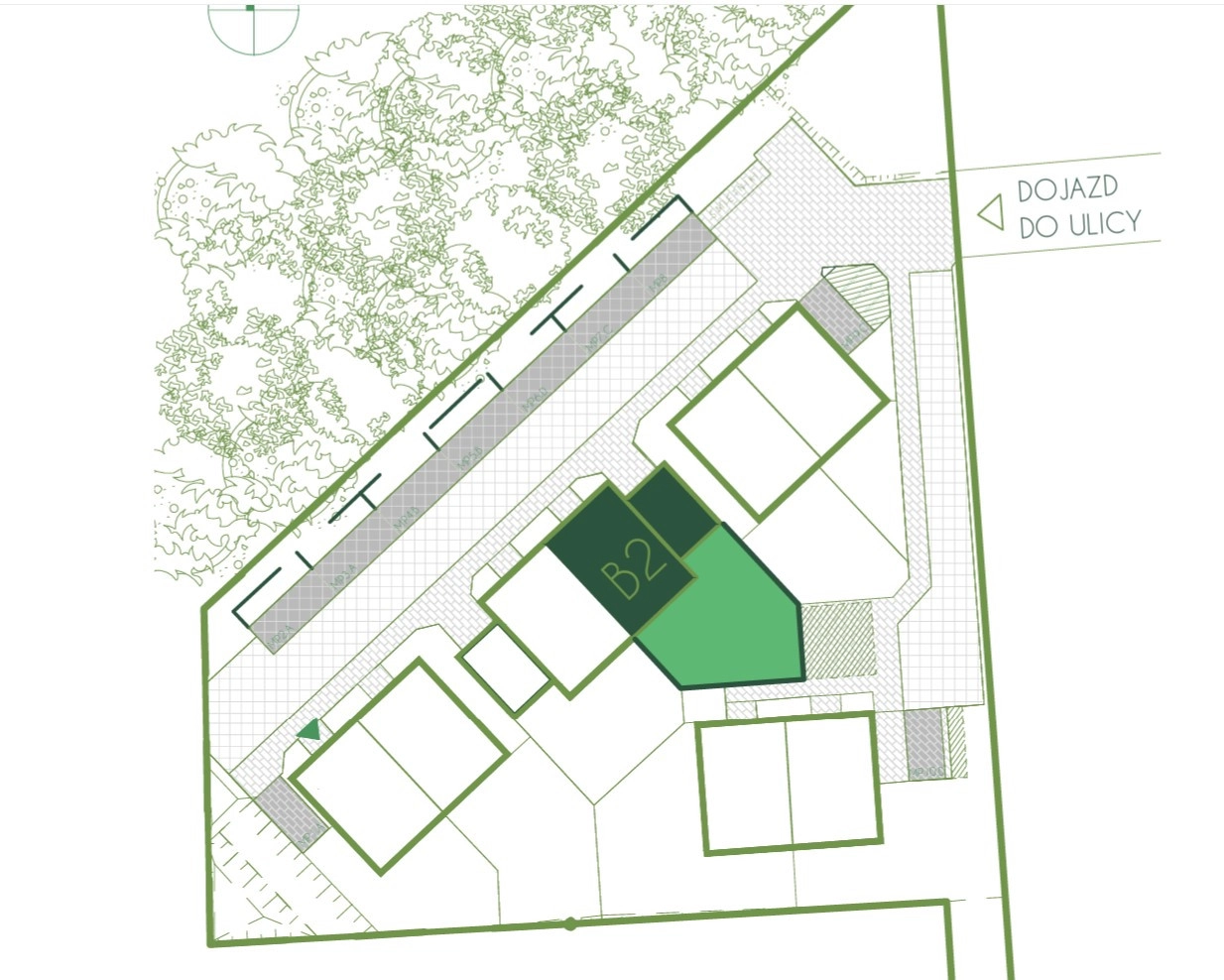 Kameralne osiedle złożone z 4 domów dwulokalowych (łącznie 8 segmentów)