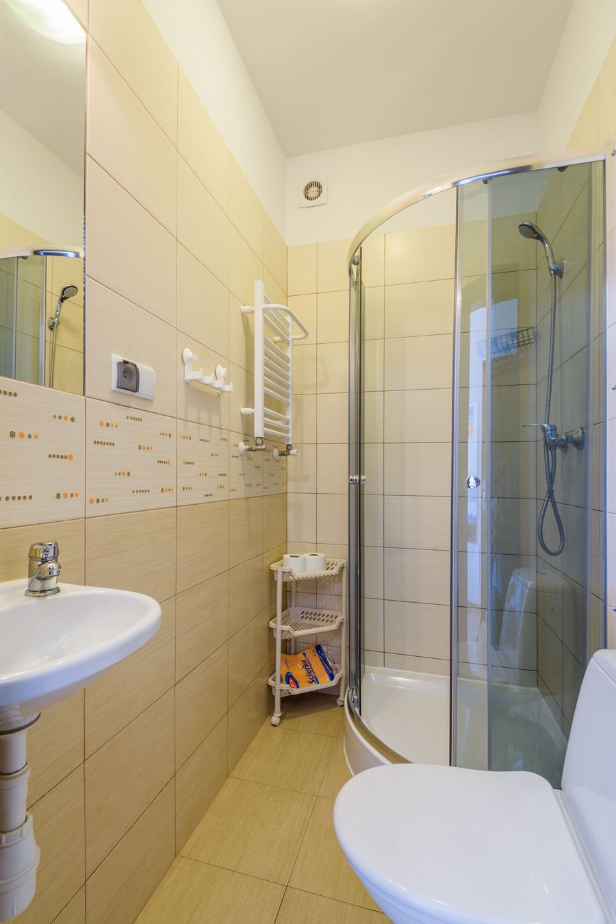 *14 w pełni zagospodarowanych pokoi 2- oraz 4-osobowych, każdy z łazienką i większość z balkonem