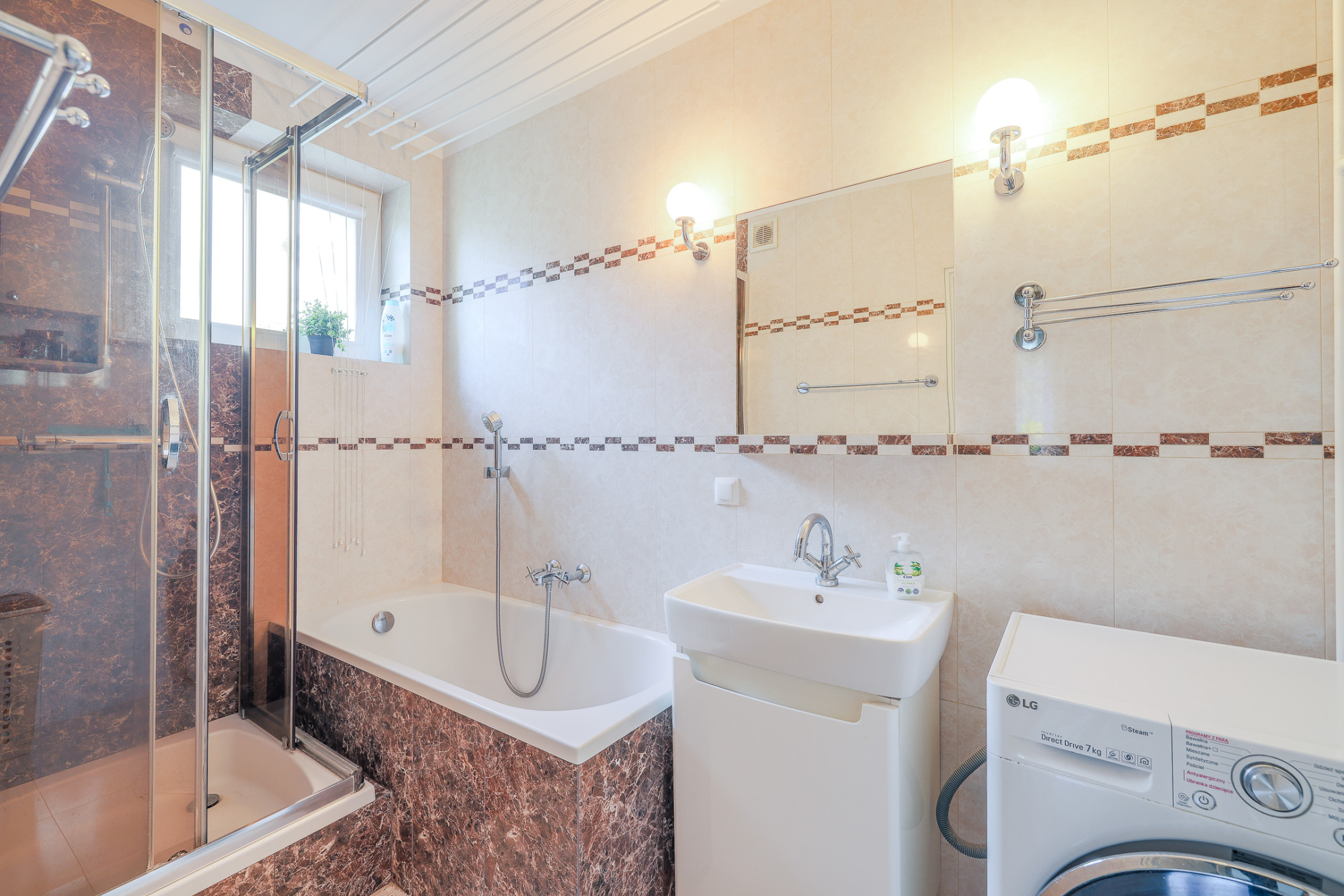Łazienka – wyposażona zarówno w wannę, jak i prysznic, co zapewnia wygodę na co dzień. Dodatkowym atutem jest okno.