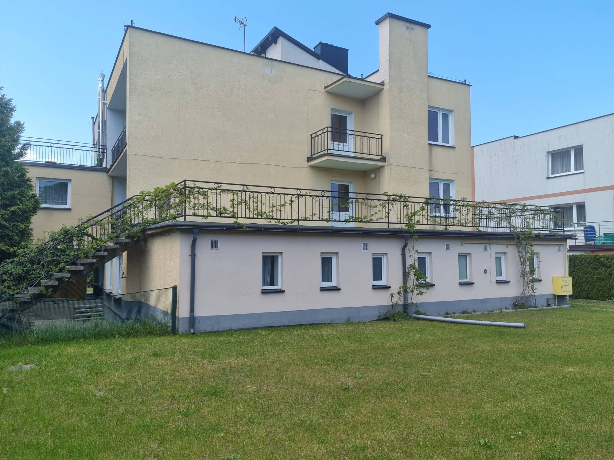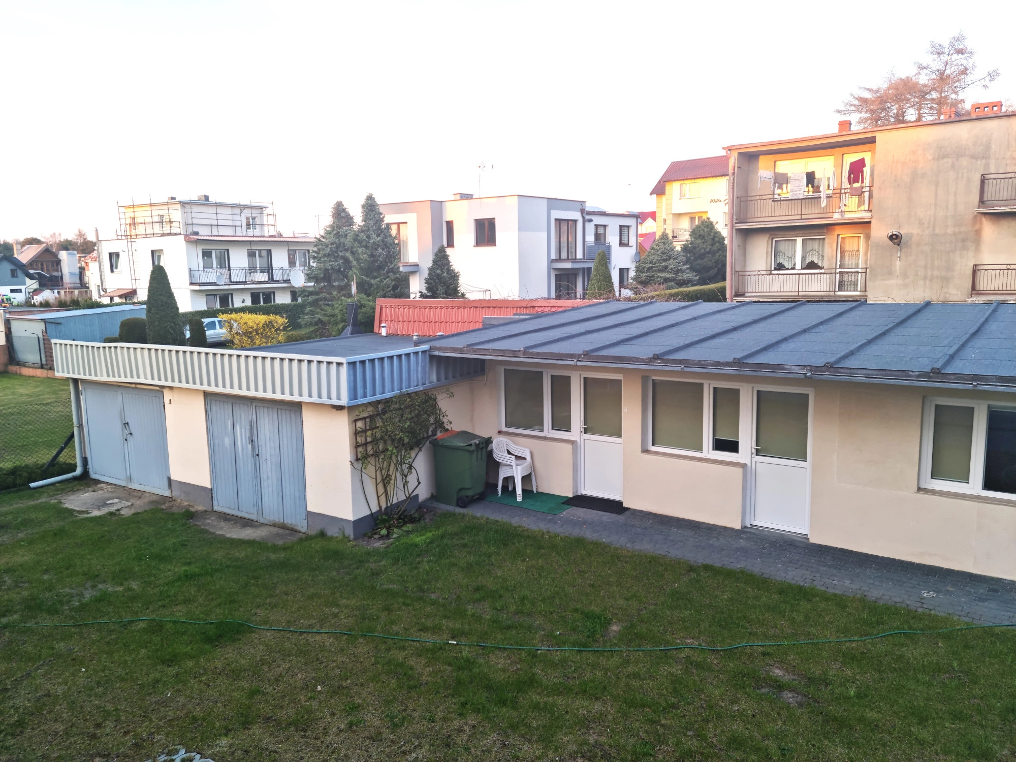 Pensjonat położony na działce o powierzchni 880 m2 składa się z budynku głównego, a także pawilonu z 3 mieszkaniami do wynajęcia i dwóch garaży.