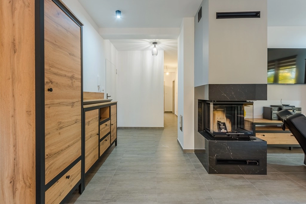 - salon z kominkiem