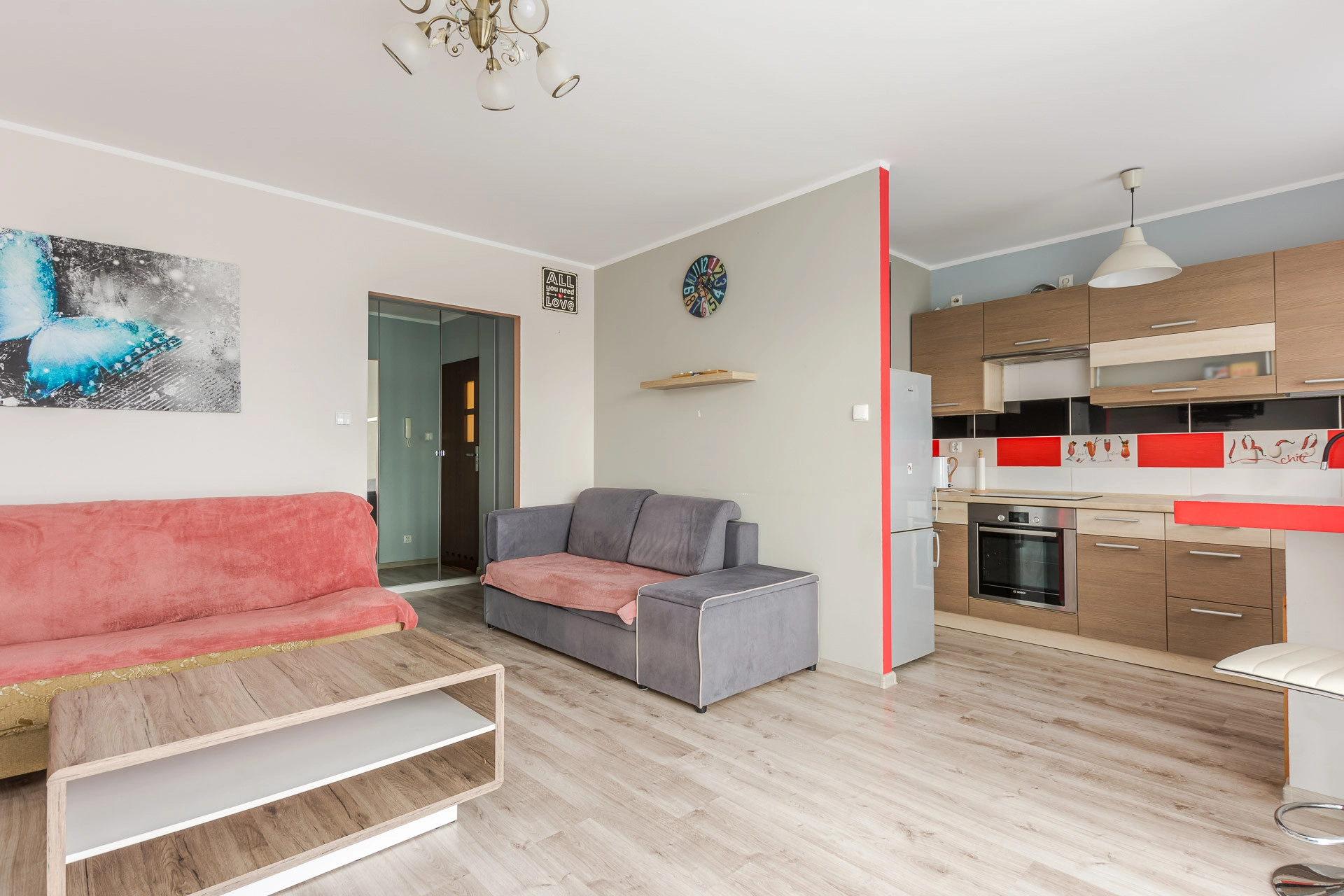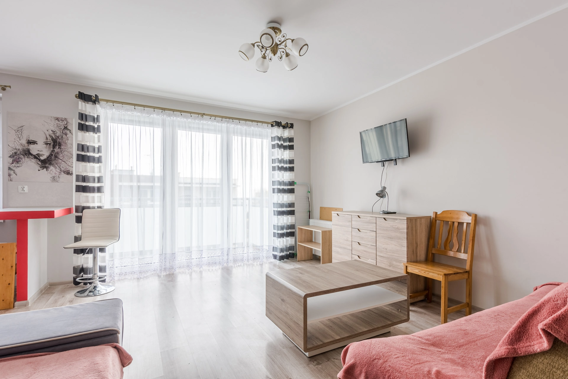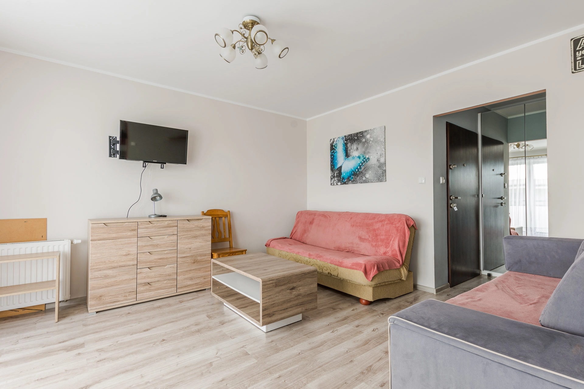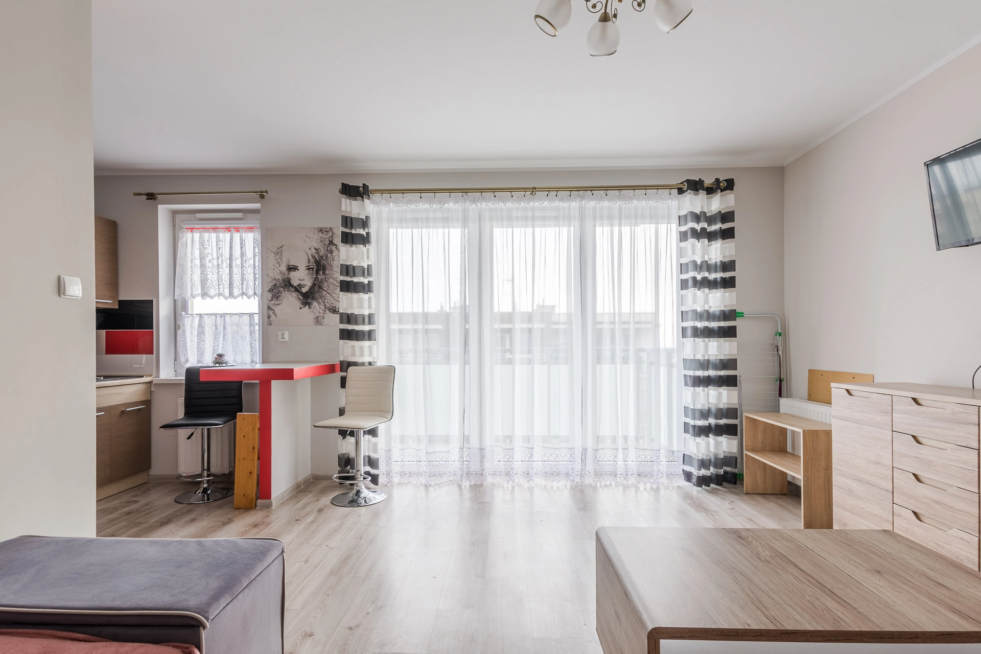 Pokój z aneksem kuchennym, dużą łazienką i przedpokojem z szafą w zabudowie o łacznej powierzchni 34 m2 z wyjściem na duży balkon. Mieszkanie jest w pełni umeblowane i wyposażone, gotowe do wprowadzenia. Ponadto ciepłe i słoneczne.