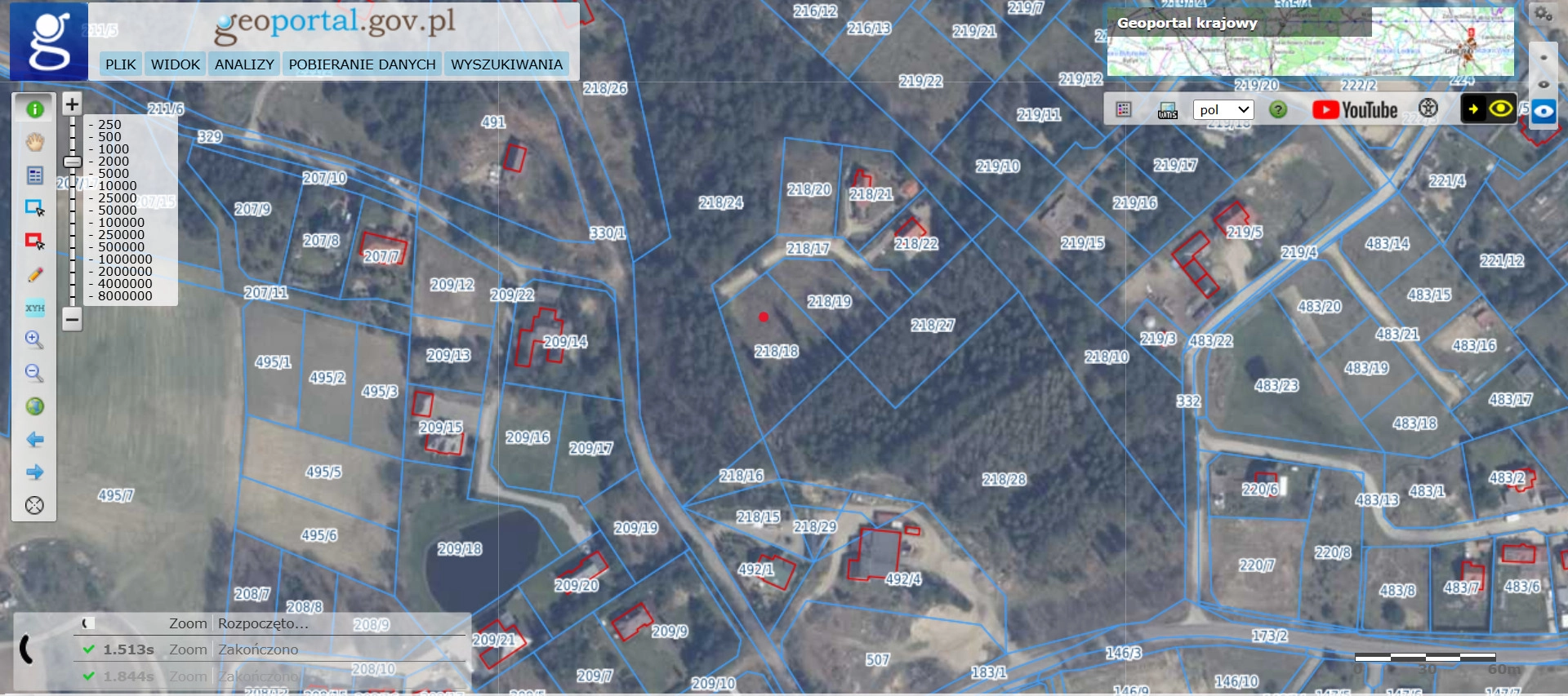 Płaska działka o kształcie trapezu o pow. 2009 m2. Dobrze nasłoneczniona. W otulinie lasu.