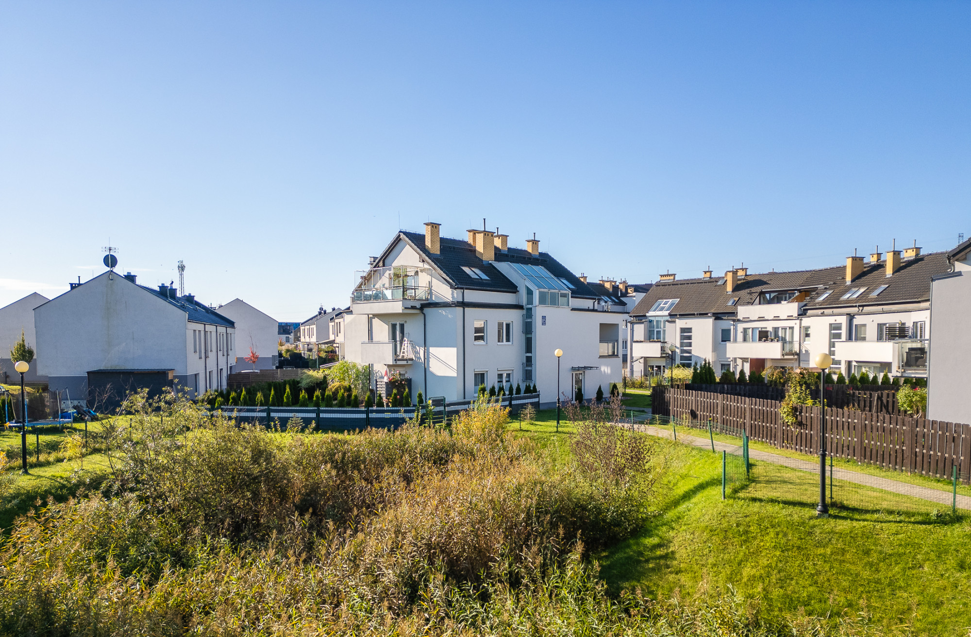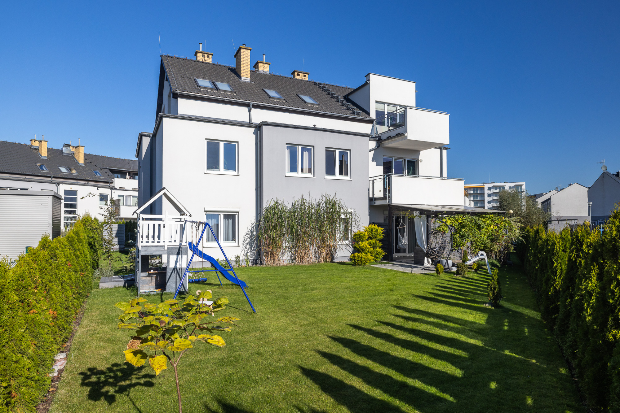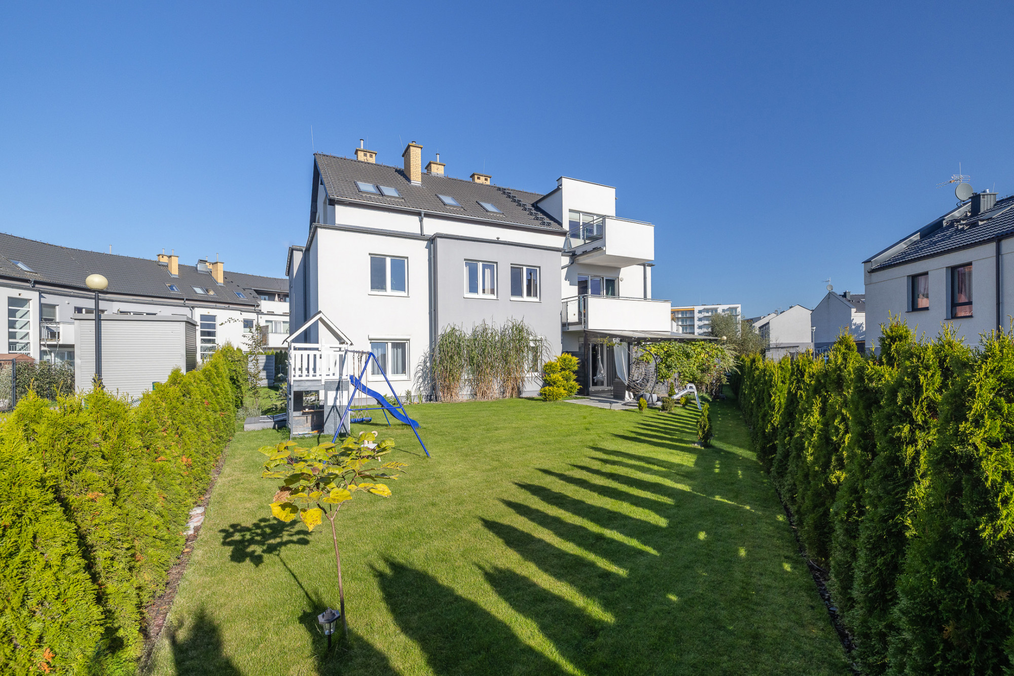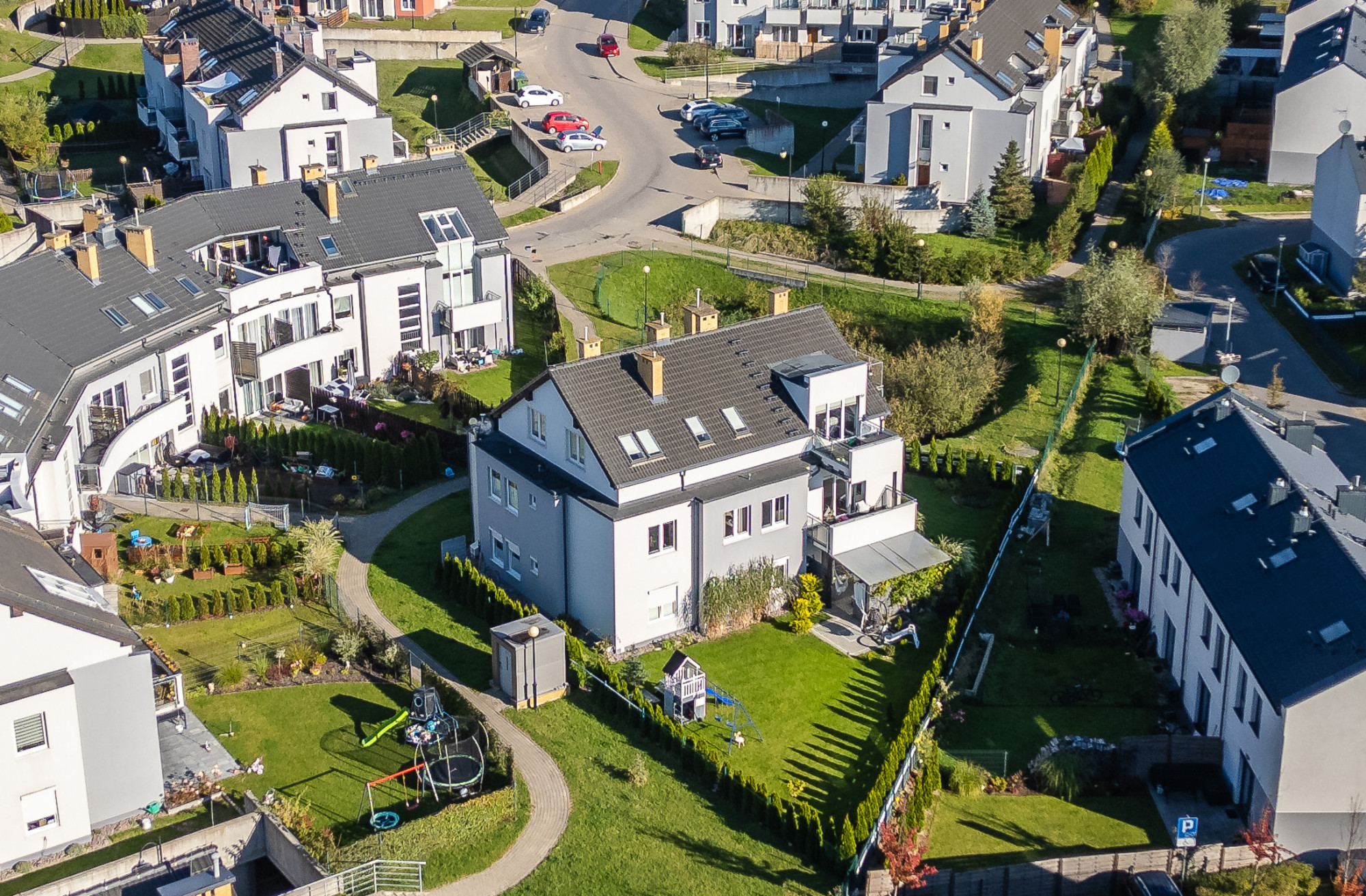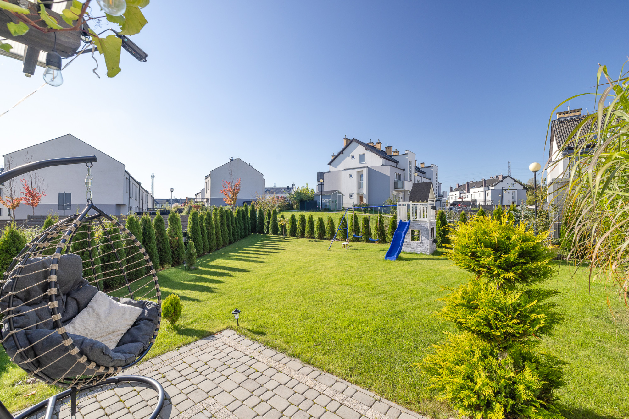– duży, prywatny ogród z nasadzeniami, systemem nawadniania i placem zabaw,