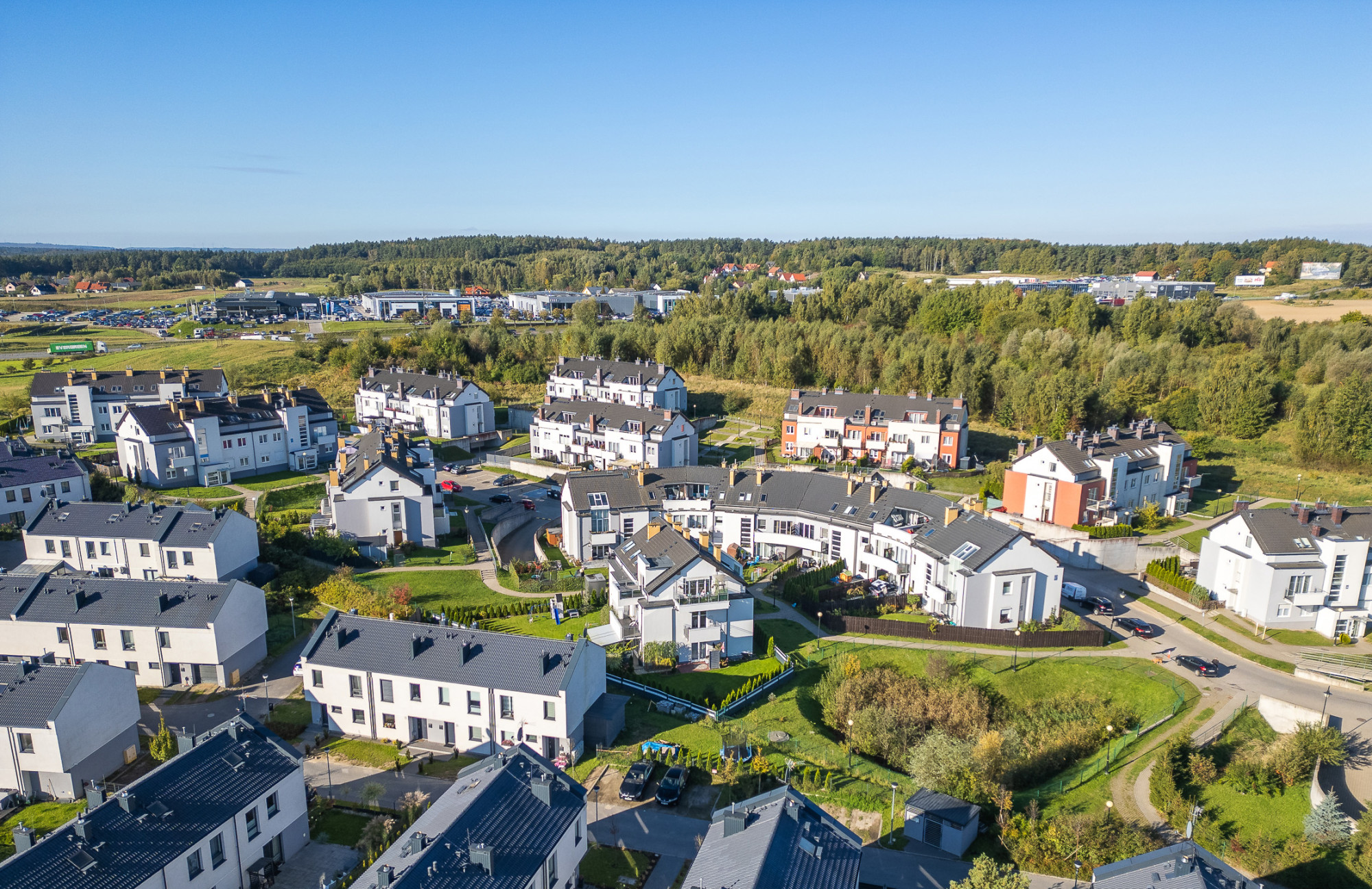 Osiedle na Jasieniu zapewnia ciszę i prywatność, jednocześnie oferując szybki dostęp do centrum Gdańska i obwodnicy Trójmiasta. W najbliższej okolicy znajdują się sklepy, przedszkole, żłobek, punkty usługowe oraz przystanek autobusowy, a wkrótce powstanie tu stacja PKM Jasień Park. Liczne tereny zielone i ścieżki rowerowe sprzyjają aktywnemu wypoczynkowi.