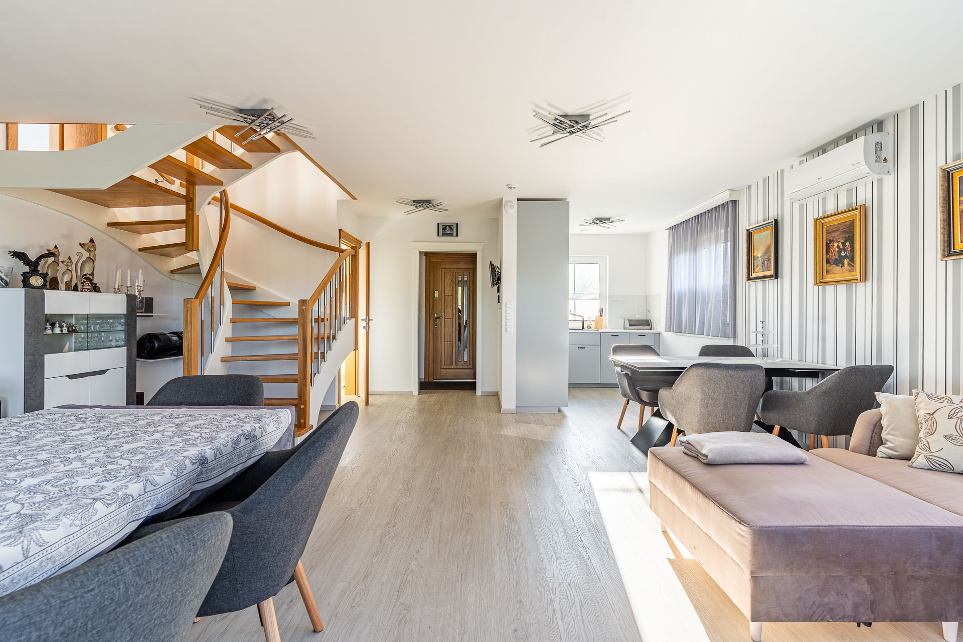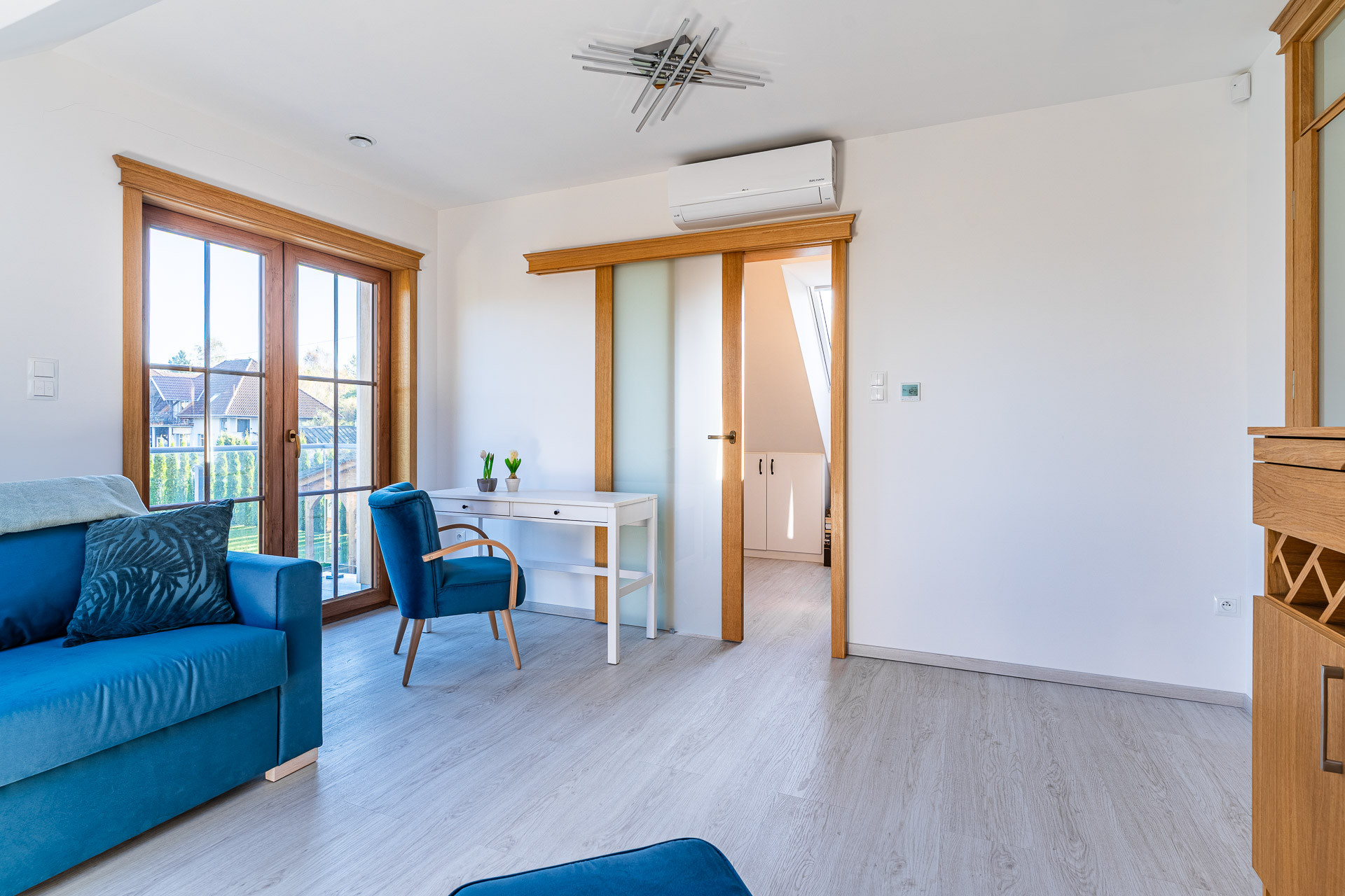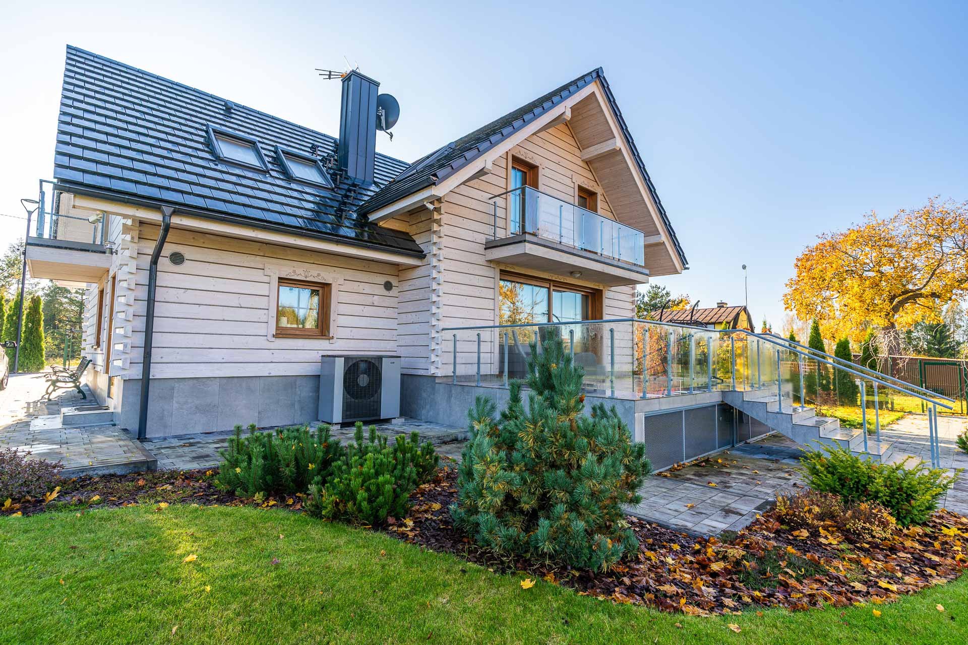 – ogrzewanie: pompa ciepła i ogrzewanie podłogowe, w pokojach dodatkowo klimatyzatory typu split z funkcją grzania, rekuperacja,