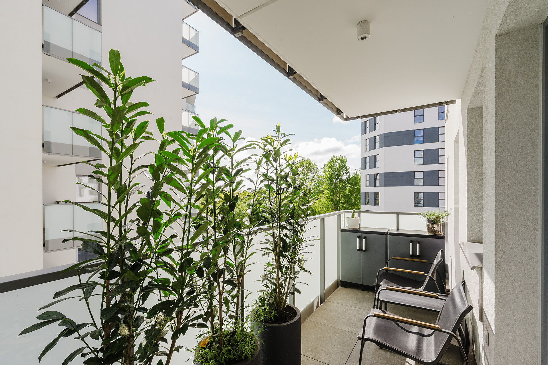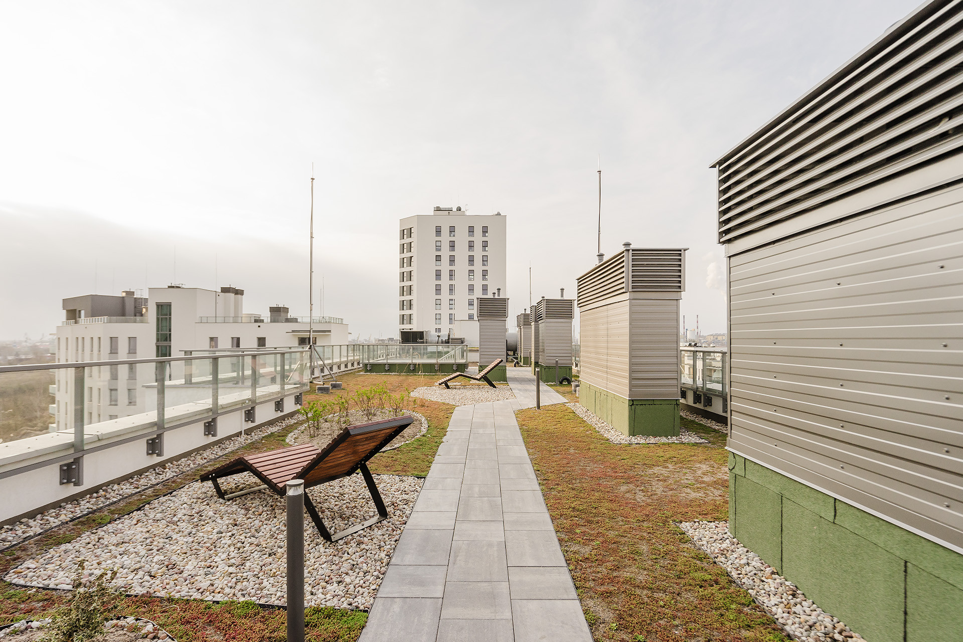 Nowoczesny 6-piętrowy blok mieszkalny, tylko z czterema mieszkaniami na kondygnacji. Rozwiązania, które zastosowali architekci w Osiedlu Horizon powinny spełnić oczekiwania nawet najbardziej wymagających mieszkańców: zielone tarasy na dachach (dwa poziomy) z małą architekturą umożliwiającą spędzanie wolnego czasu, platformy widokowe, lokale usługowe na parterze, stojaki rowerowe, plac zabaw, ledowe oświetlenie klatek schodowych, wideofony, miejsca garażowe w hali podziemnej i inne. Cichobieżna winda pozwala na szybki dostęp z hali garażowej.