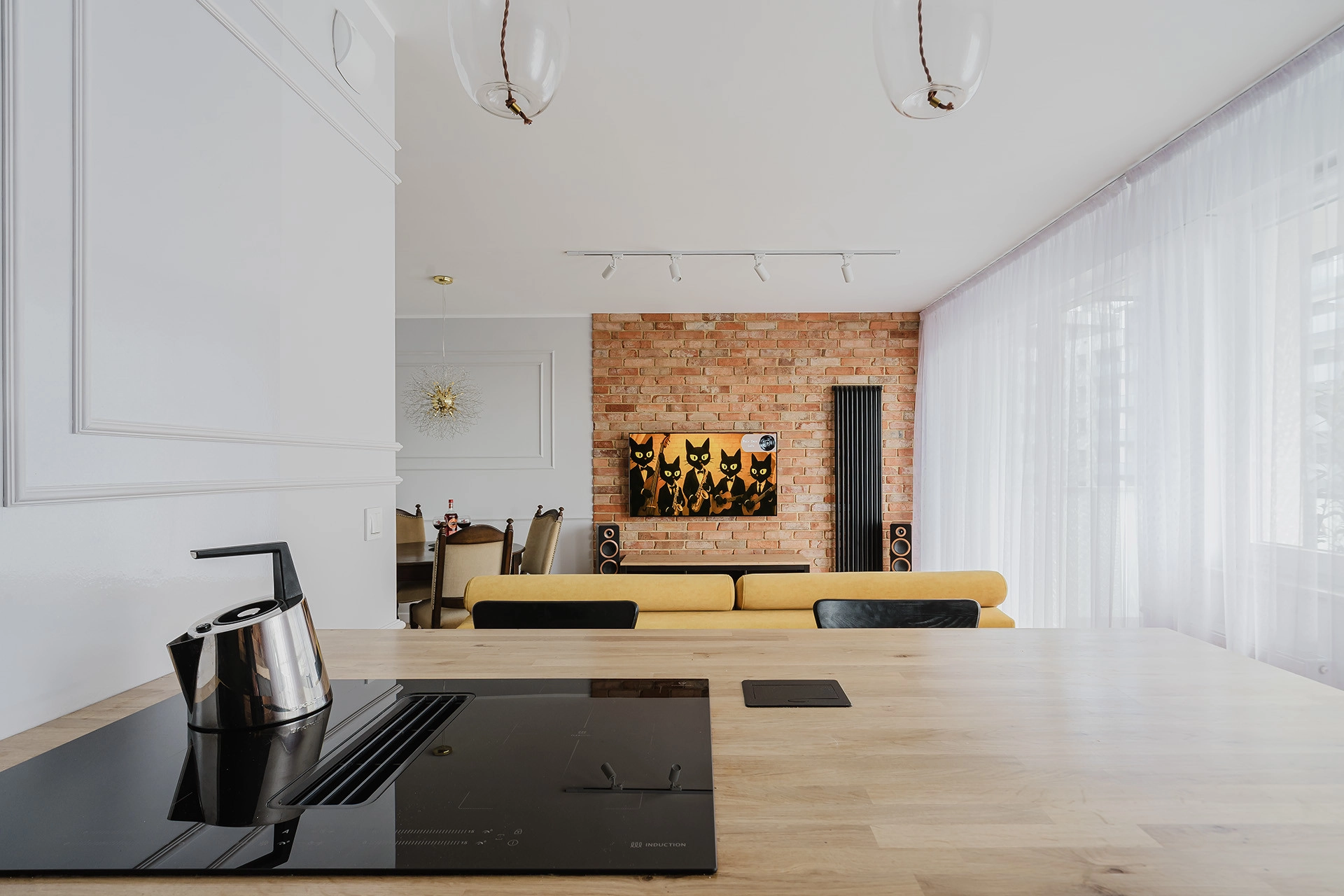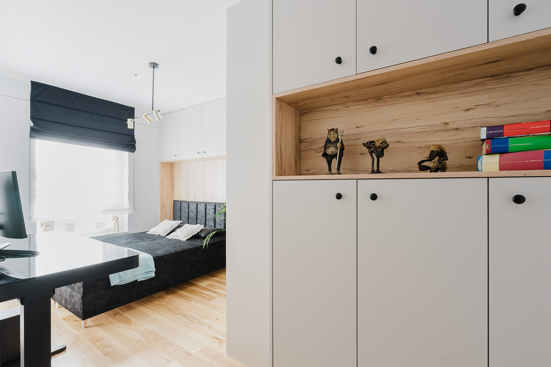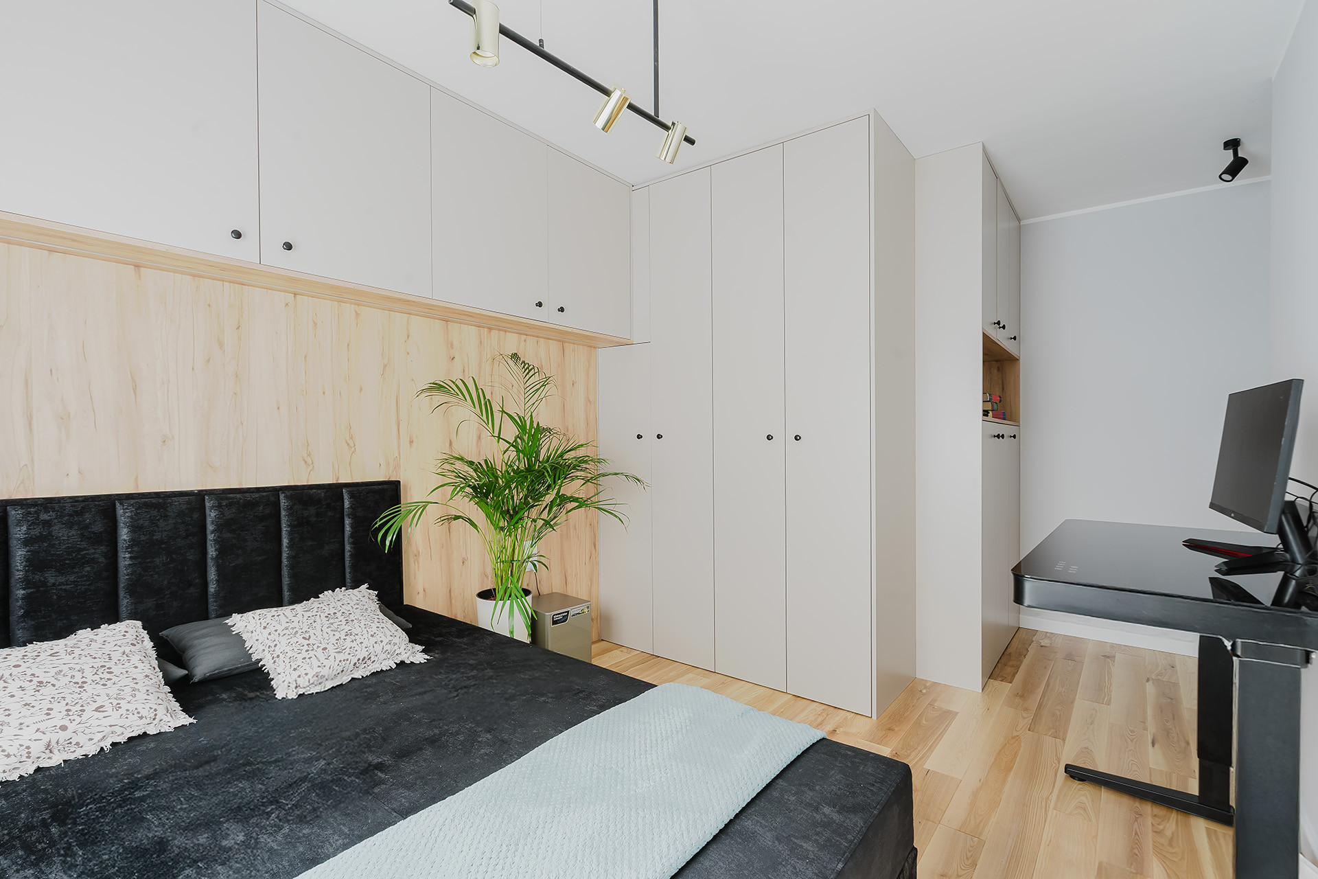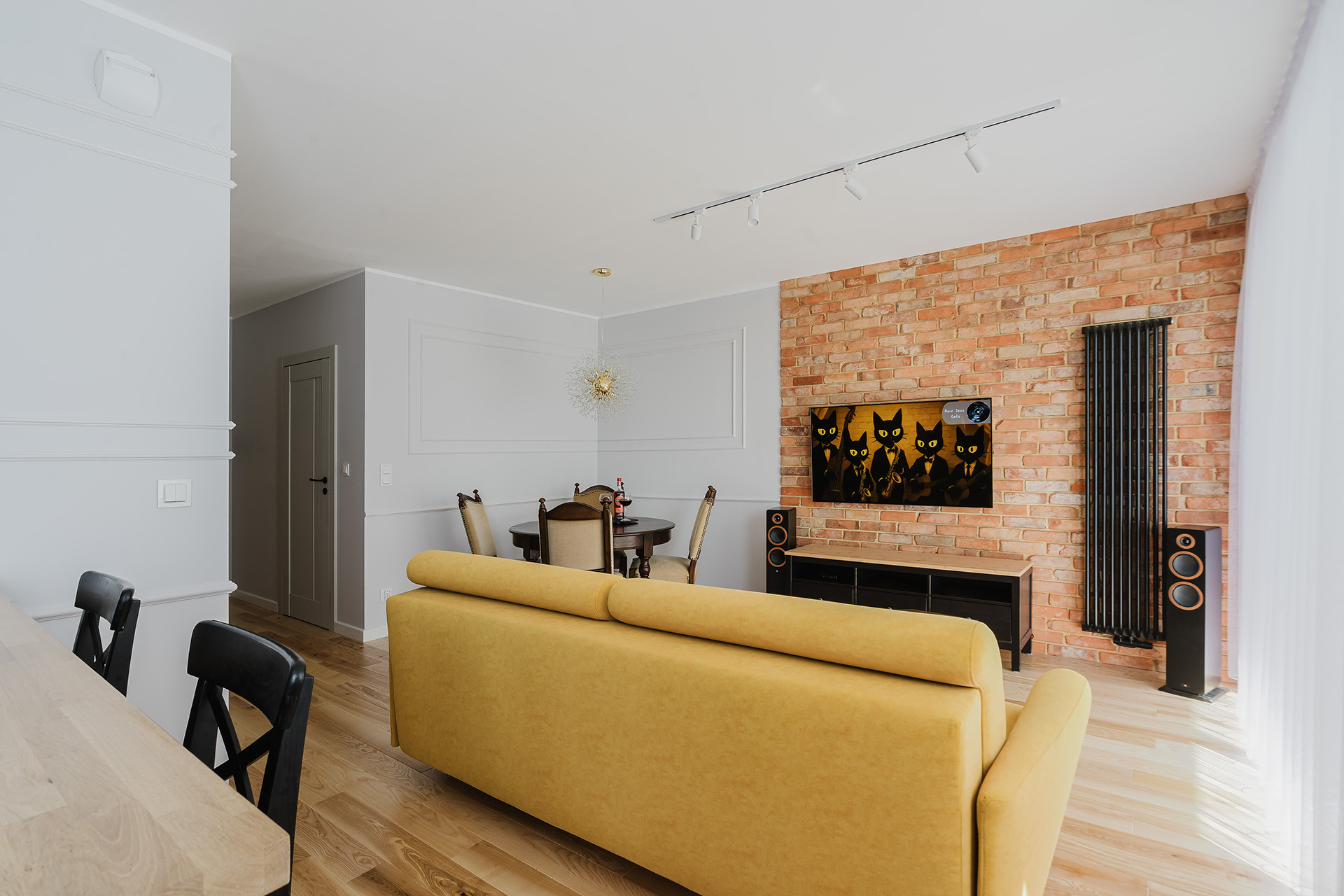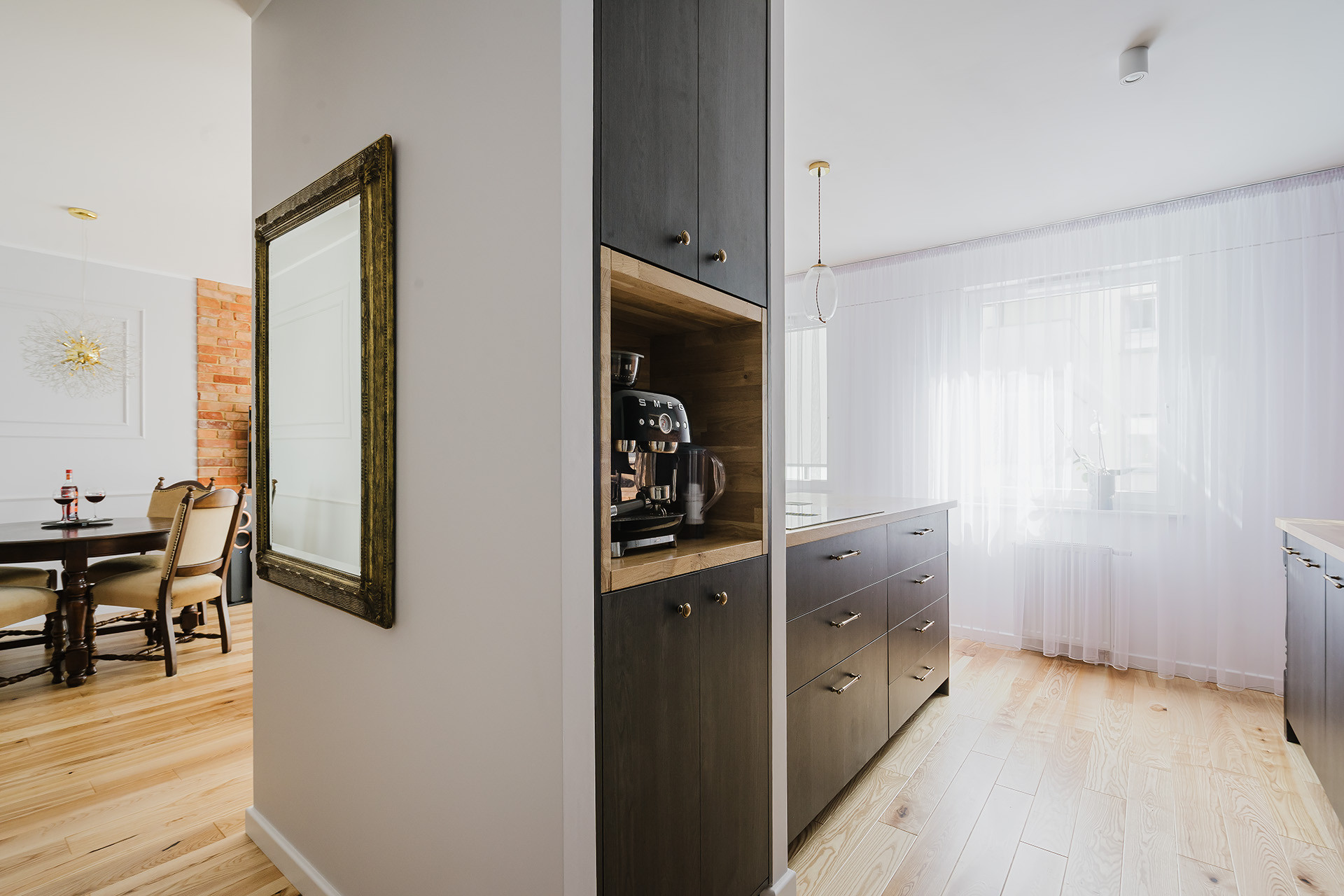 Mieszkanie, którego pierwotny układ został zmieniony po to, aby stworzyć wygodną dużą strefę dzienną połączoną z kuchnią oraz jedną przestronną sypialnię. Utworzono także dodatkowe pomieszczenie, które może być gabinetem do pracy albo drugą łazienką, sauną, garderobą … Zdjęcia nie oddają całego uroku mieszkania, zapraszamy na PREZENTACJĘ!