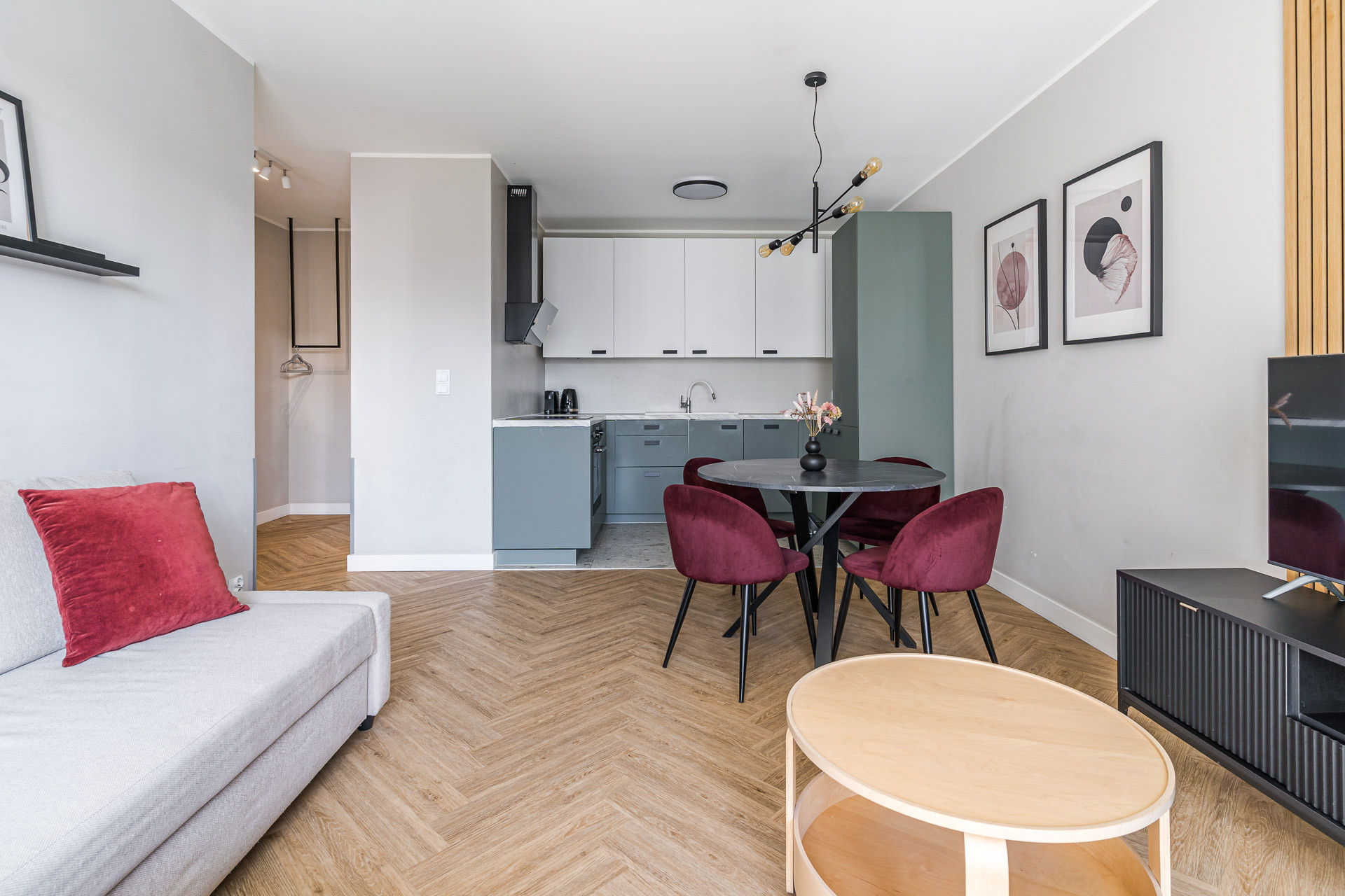 Apartament urządzony w nowoczesnym, eleganckim stylu z wyrazistymi akcentami, które nadają wnętrzu charakter. Meble wykonane na wymiar, kuchnia w pełni wyposażona, a salon i sypialnia zaprojektowane z myślą o komforcie. W cenie pełne wyposażenie, w tym sprzęt AGD (pralka, lodówka, płyta indukcyjna, piekarnik, okap, zmywarka). Gotowy do wprowadzenia od zaraz.