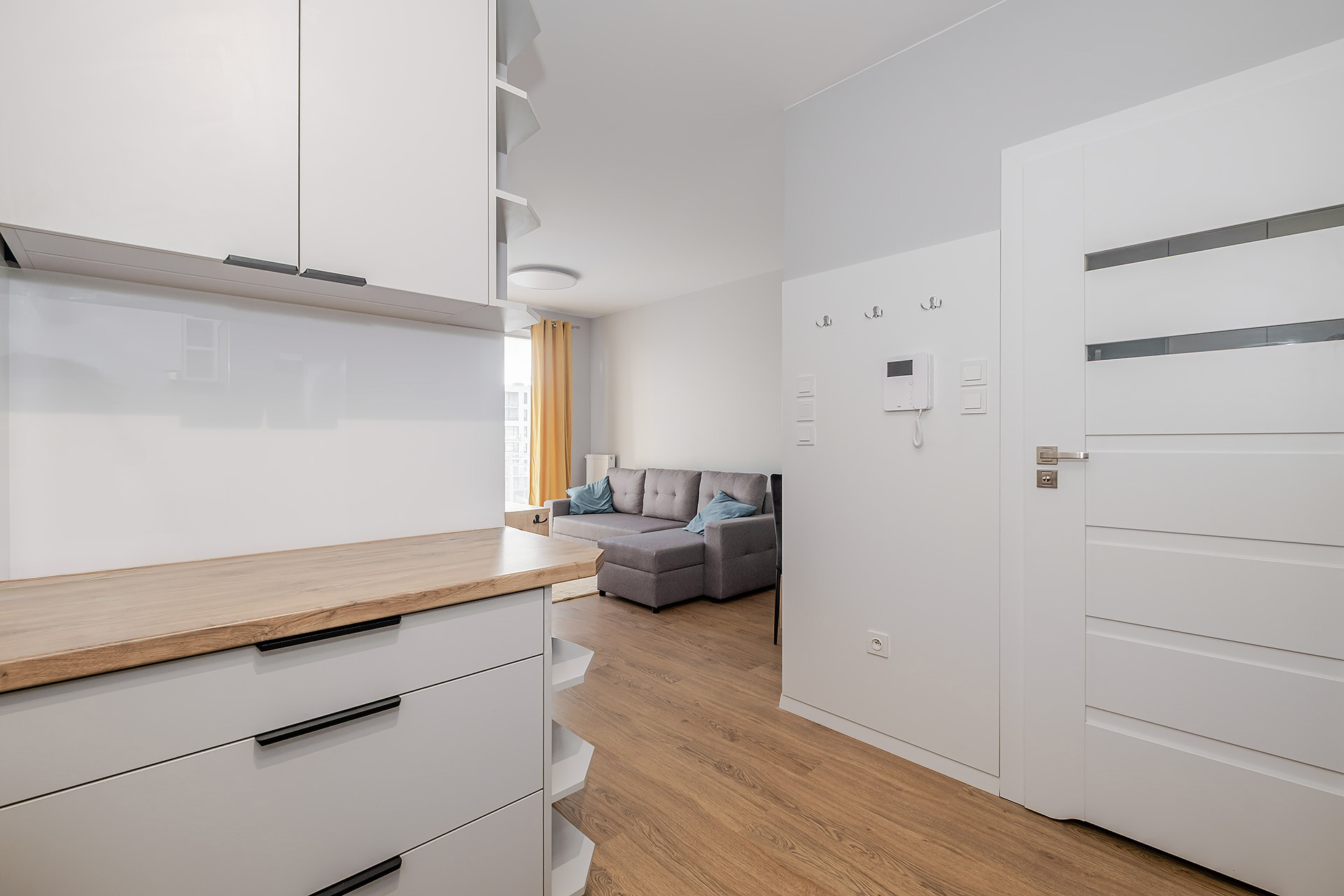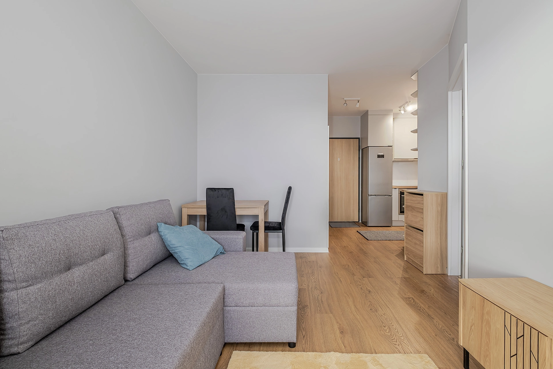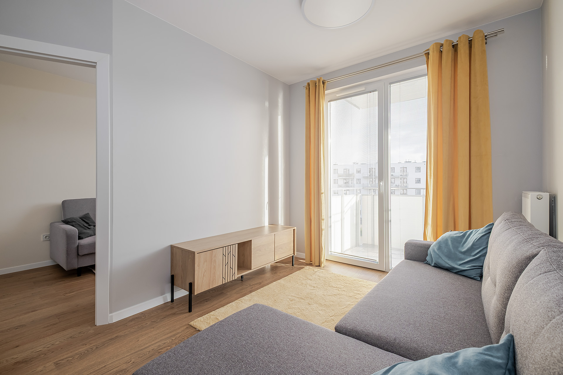 – salonu z aneksem kuchennym z wyjściem na duży balkon;