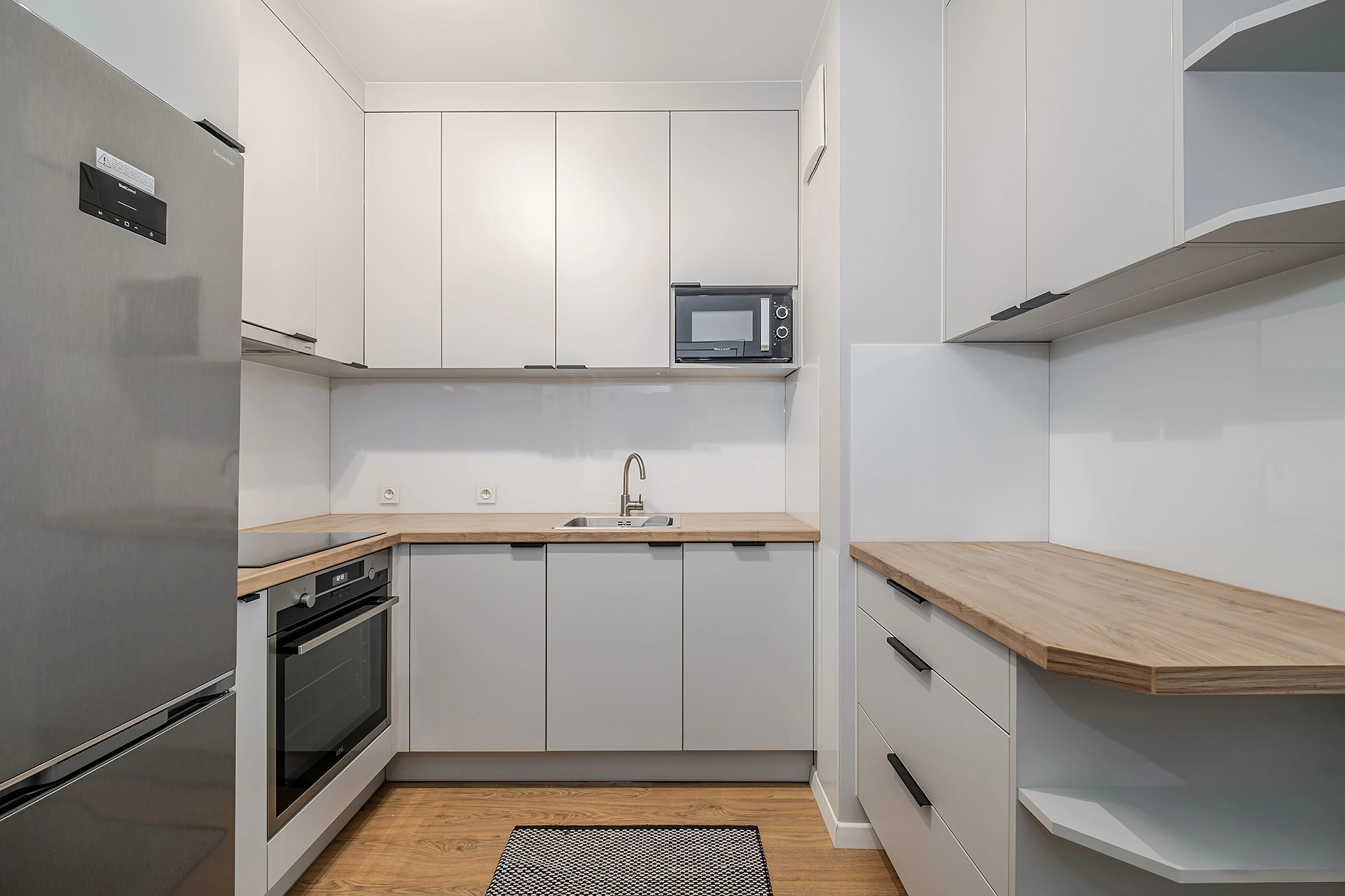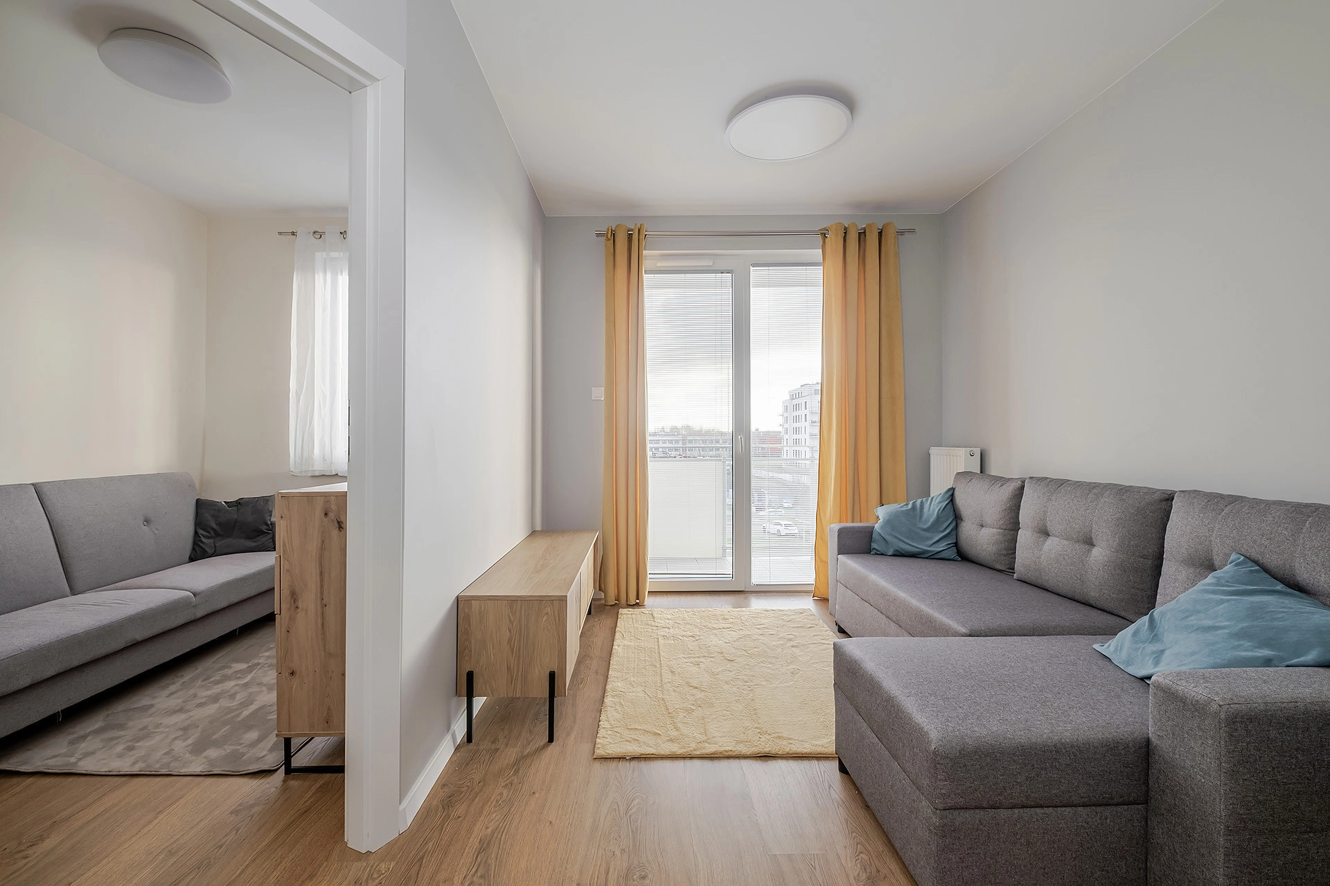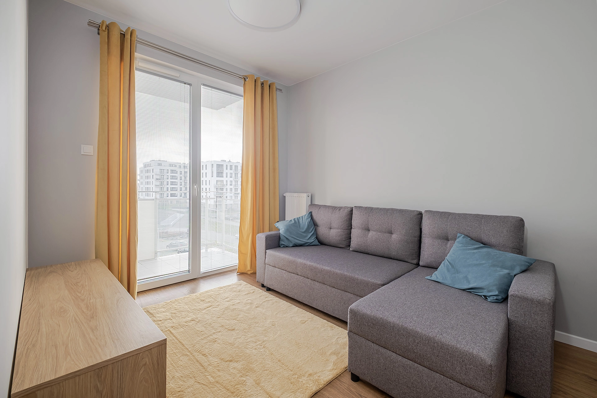 – salonu z aneksem kuchennym z wyjściem na duży balkon;