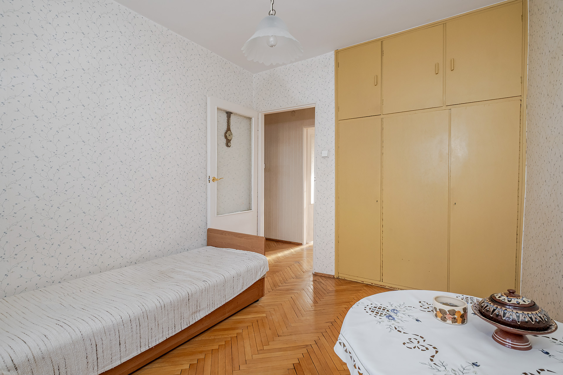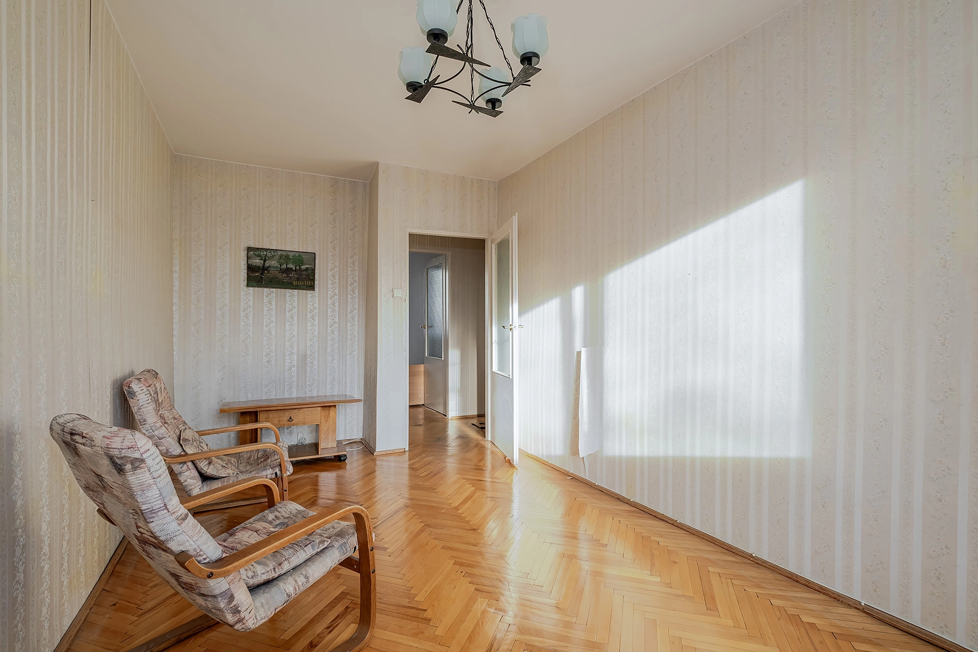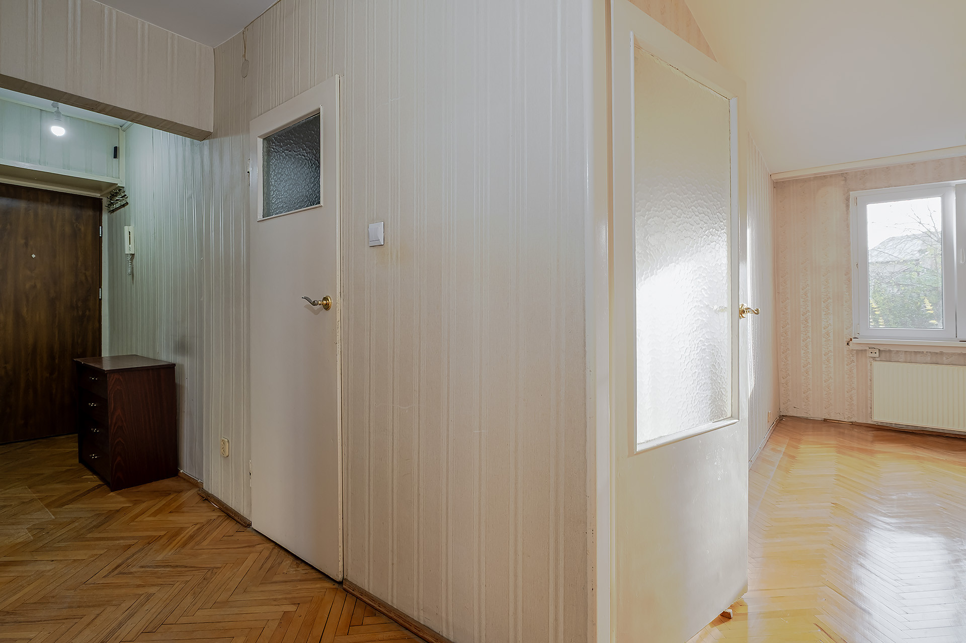 Trzy pokojowe mieszkanie o powierzchni ok 46,5m2. Jest dwustronne a salon ma wystawę południową.