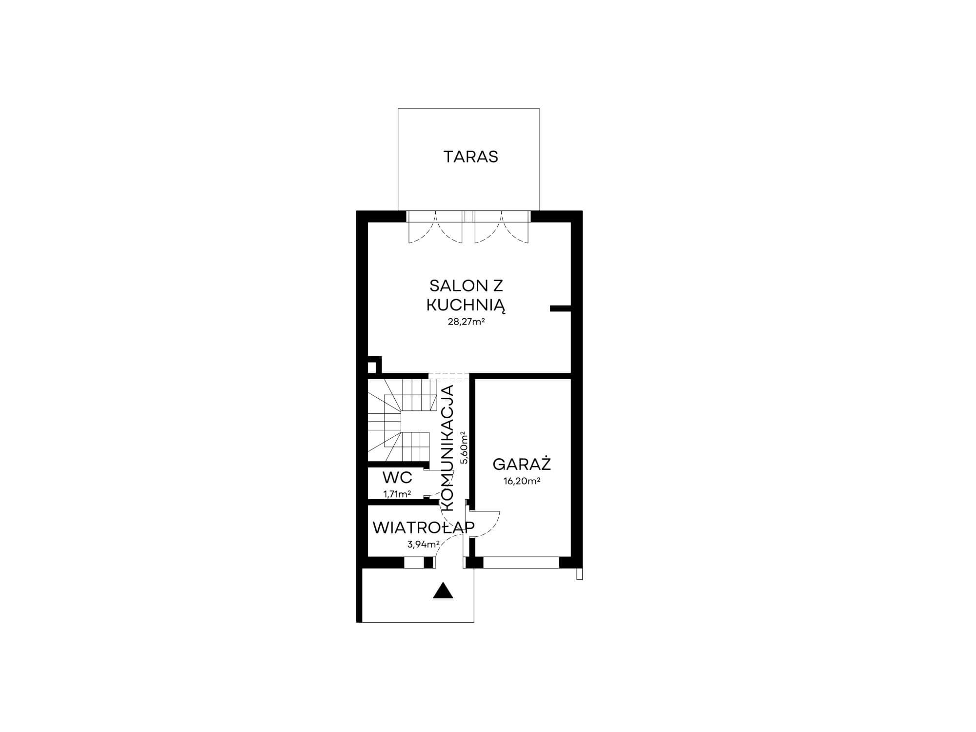Przed garażem jest miejsce na 2 auta