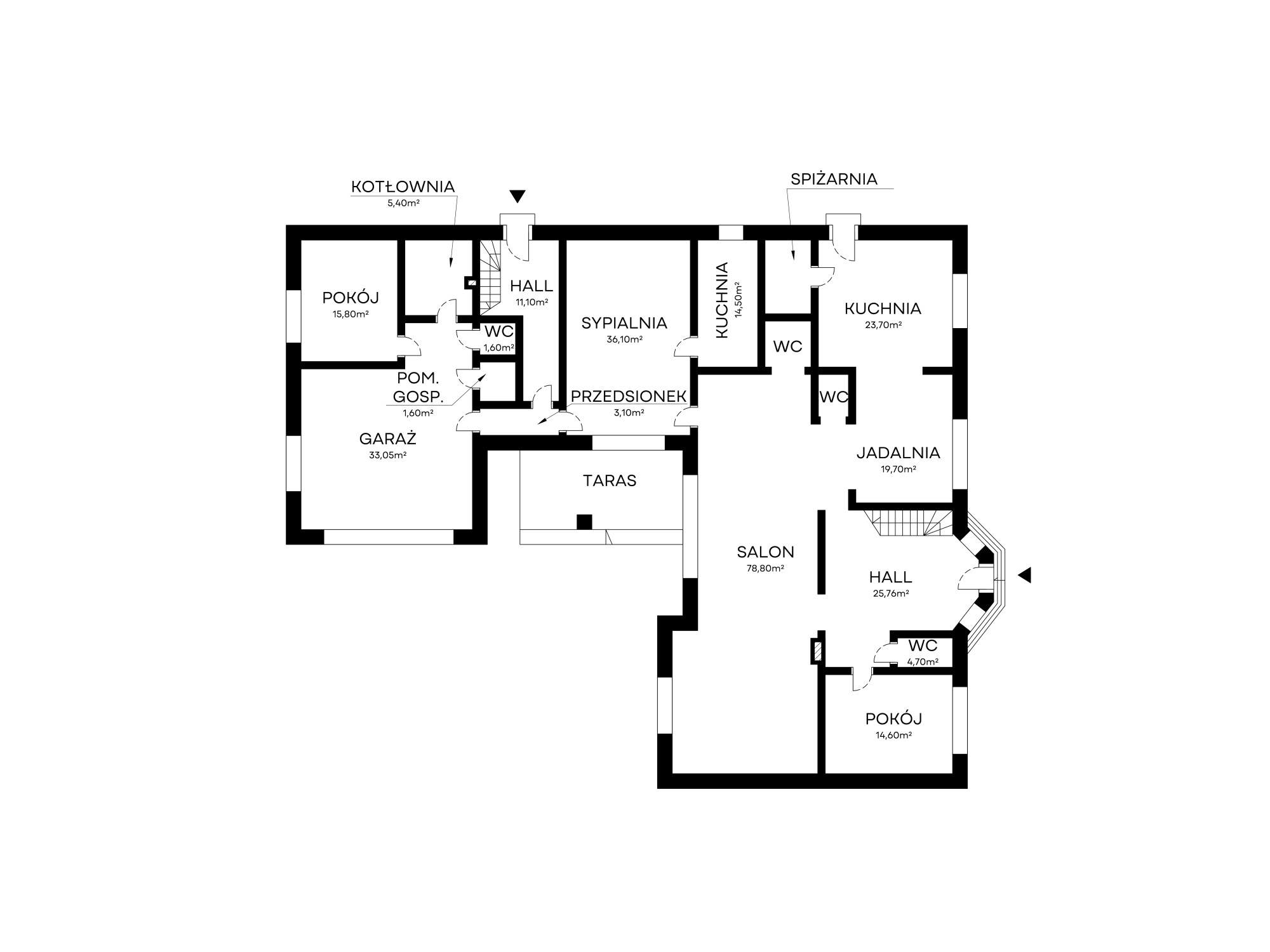 Do domu są aż 4 wejścia. Główne, dwa boczne oraz przez garaż.