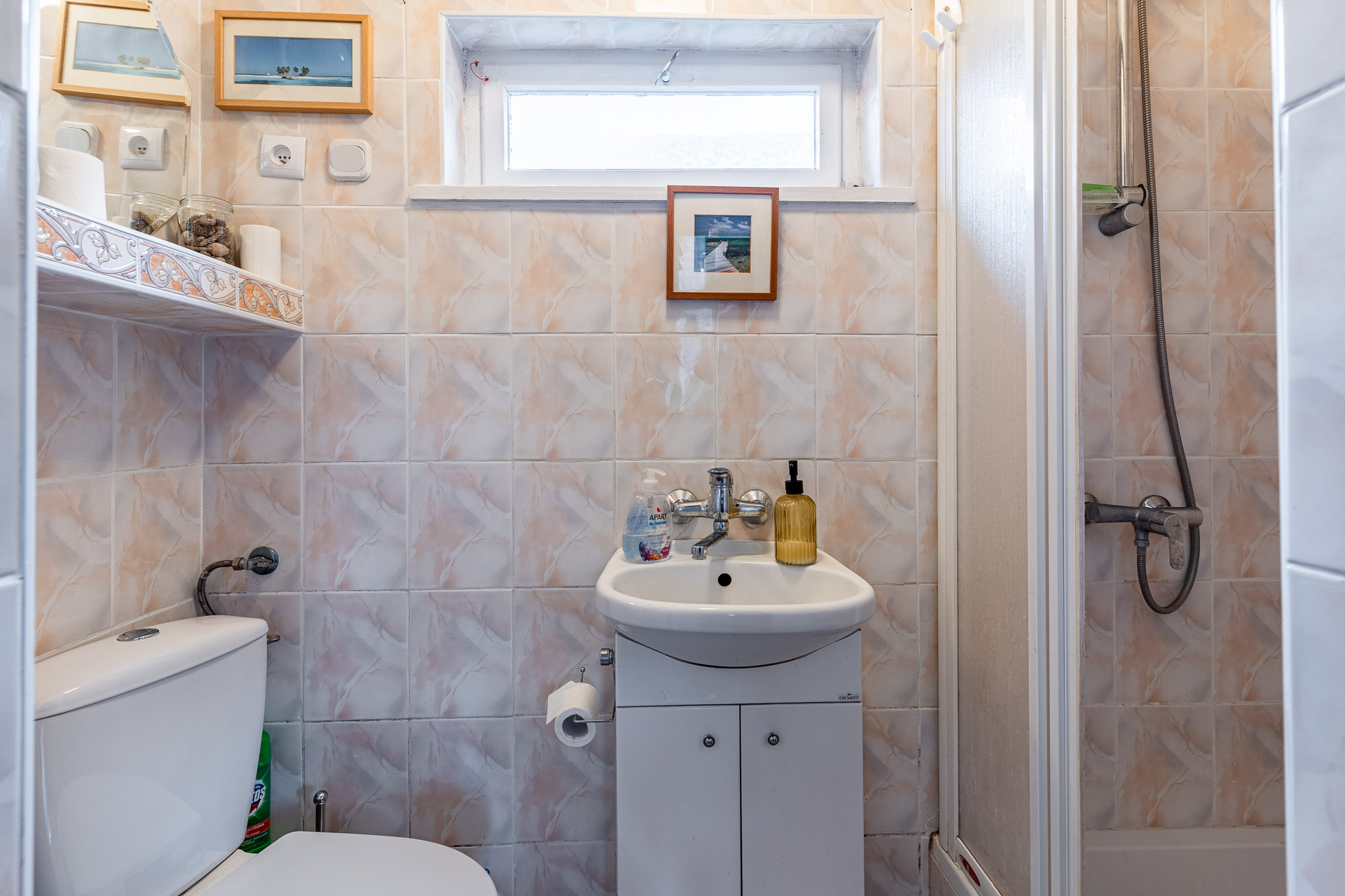 -łazienka z kabiną prysznicową.