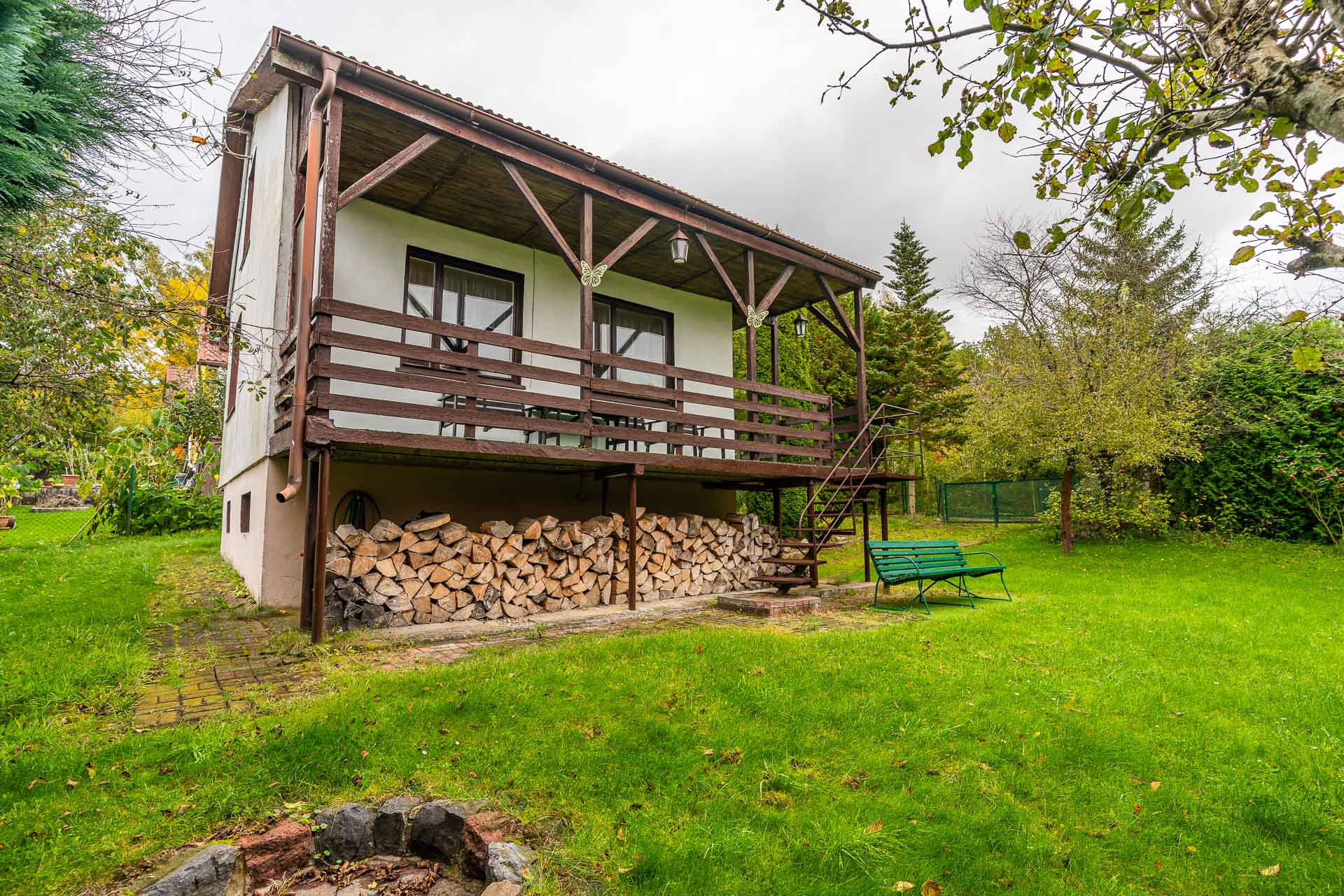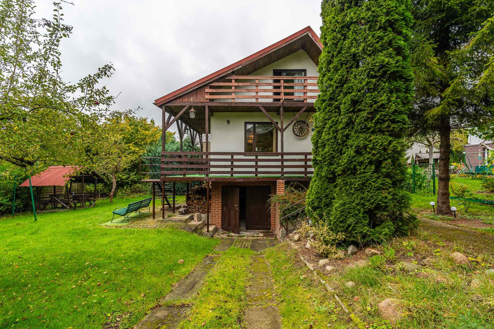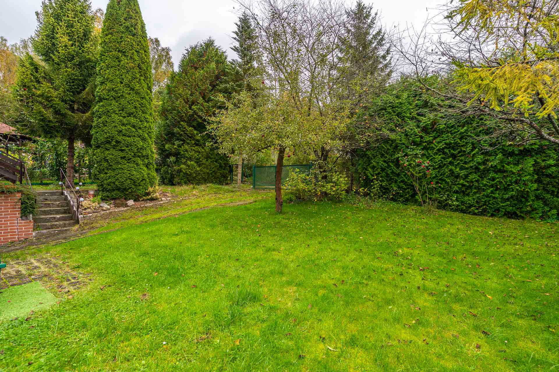 Świetnie utrzymana działka budowlana o powierzchni 475 m2, ogrodzona płotem. Na terenie ogrodu miejsce na grilla z altaną.