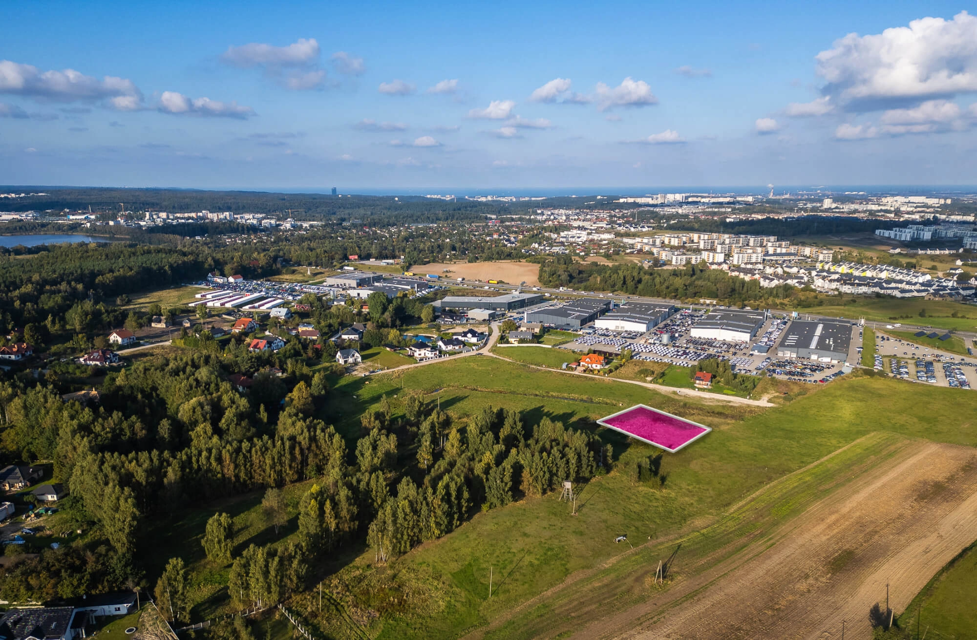 Działka znajduje się w miejscowości Otomin (powiat gdański, gmina Kolbudy) tuż przy granicy z Gdańskiem. Towarzysząca zabudowa to domy wolnostojące oraz autoryzowane salony samochodowe (np. Skoda, Audi, Volkswagen). W pobliżu dużo terenów zielonych oraz akwenów. Nieruchomość zlokalizowana jest w niedalekiej odległości od Obwodnicy Trójmiasta, co umożliwia łatwy, szybki i bezproblemowy dojazd do każdej części Trójmiasta.
