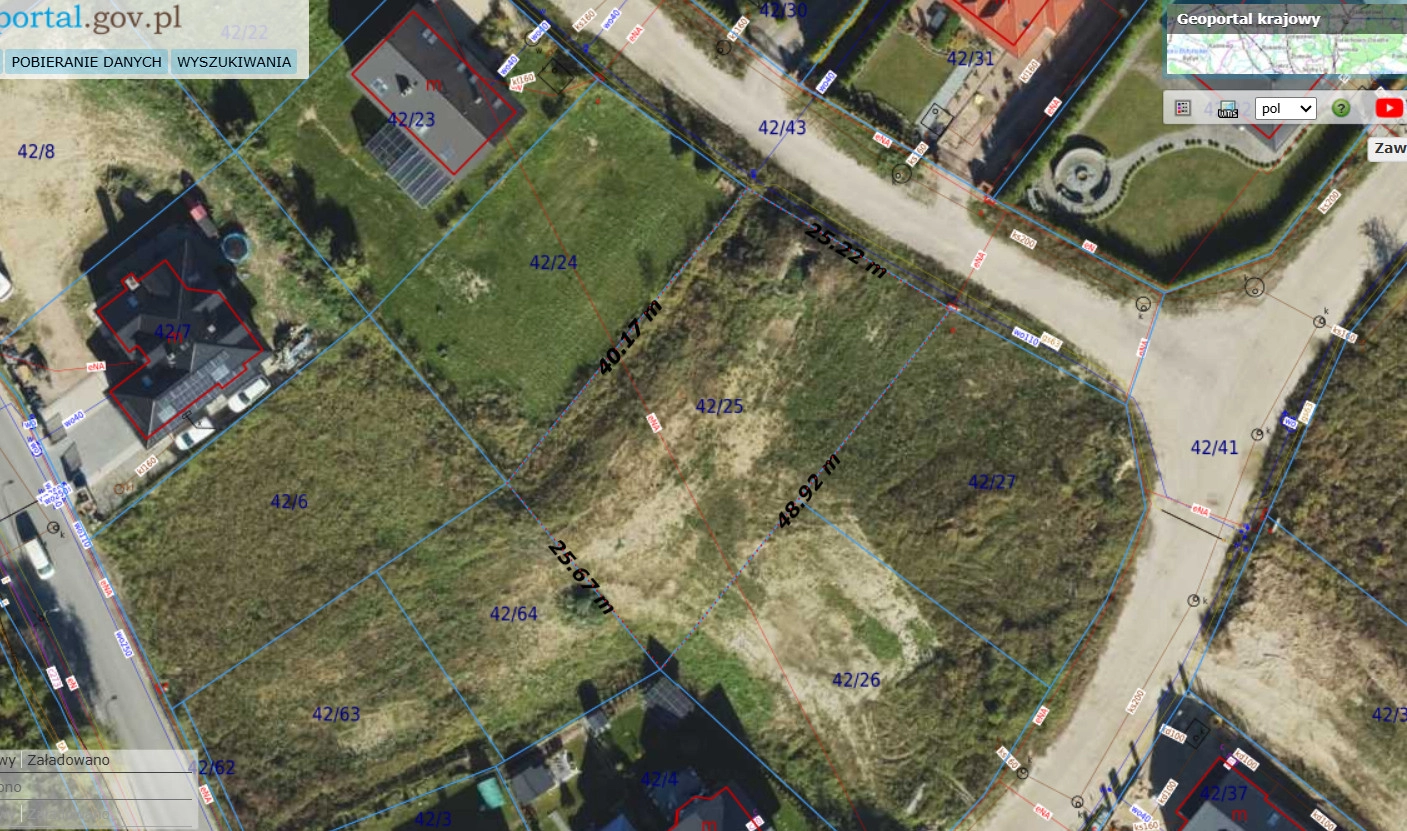 Działka budowlana  o powierzchni 1114m2 i wymiarach: