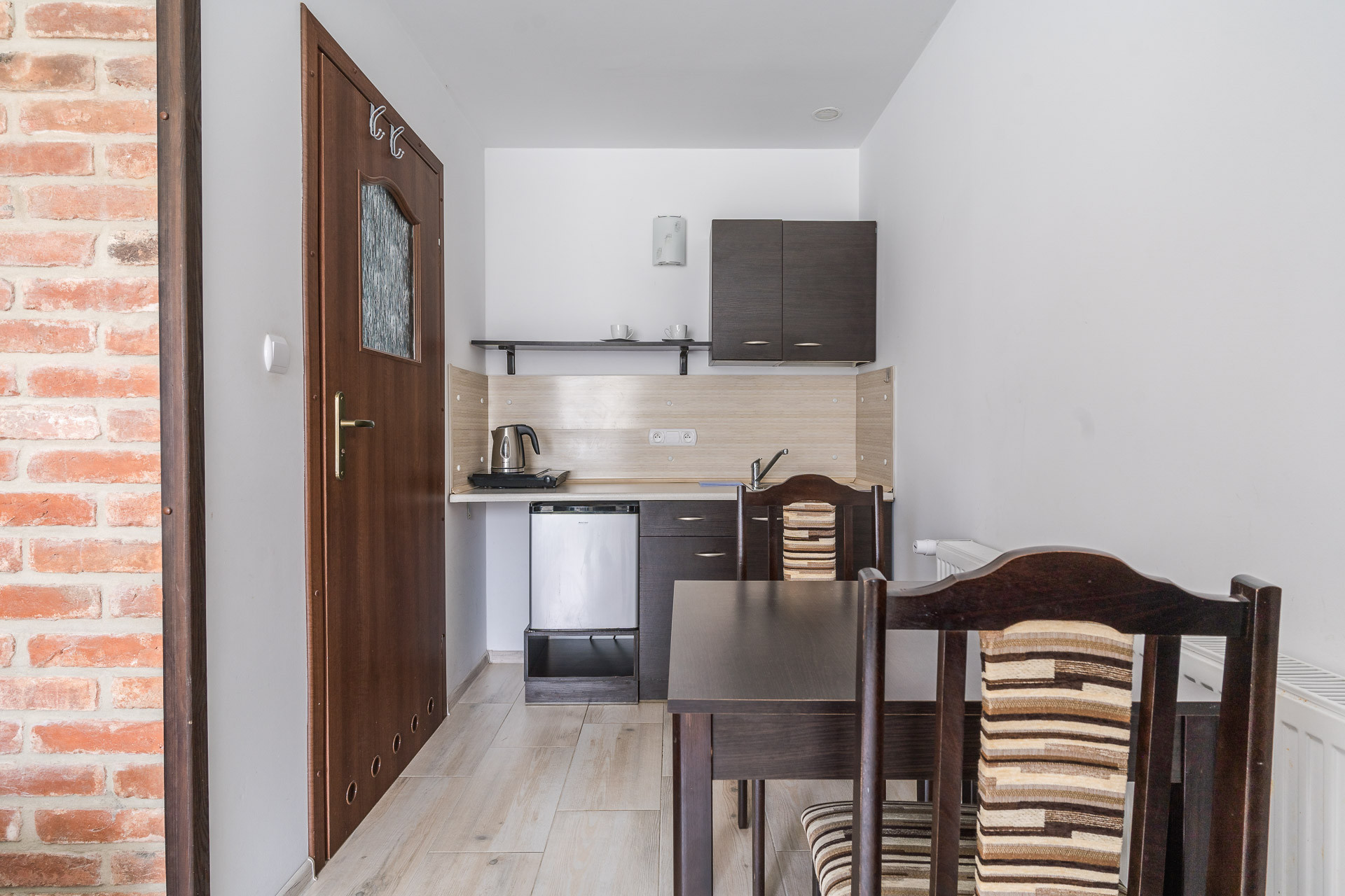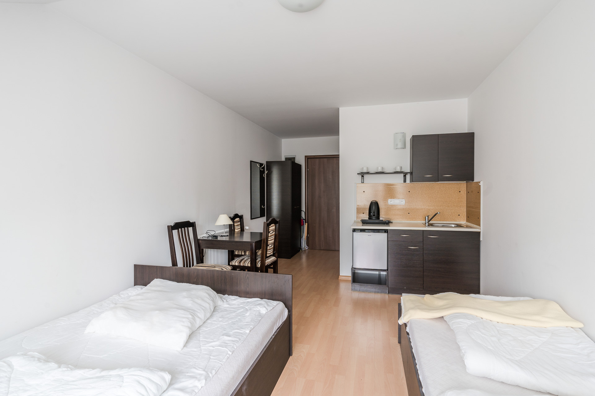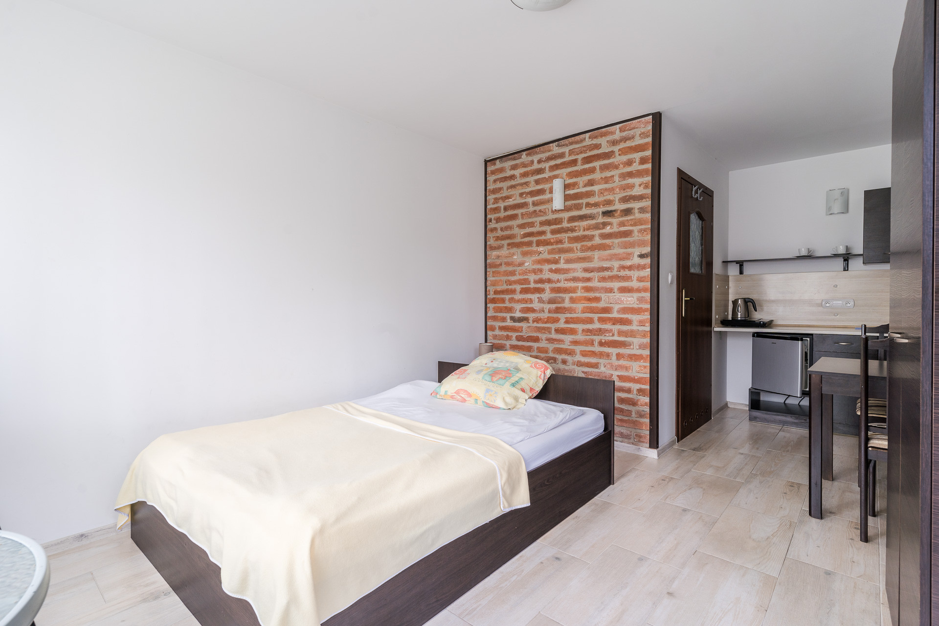 Każdy pokój jest wyposażony łazienkę, aneks kuchenny, wygodne łóżko sypialniane, szafę.