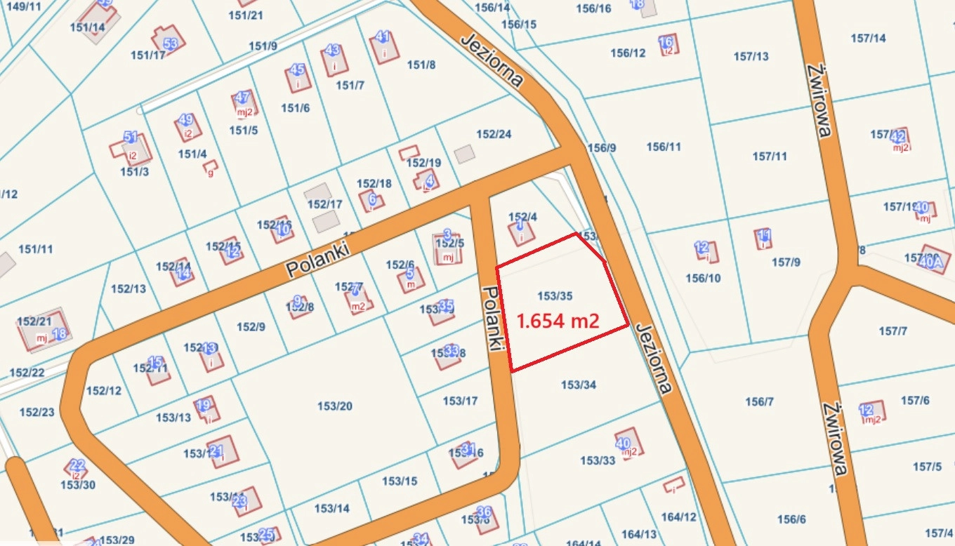 Działka budowlana o powierzchni 1.654 m2  z Miejscowym planem zagospodarowania przestrzennego dla obrębu geodezyjnego Perlino